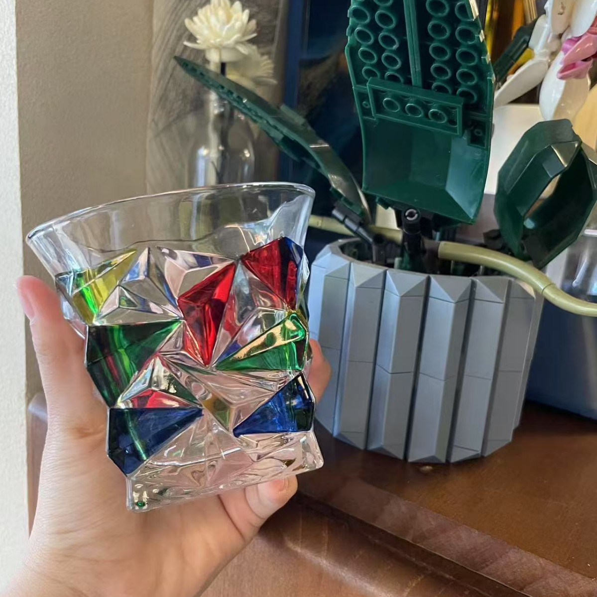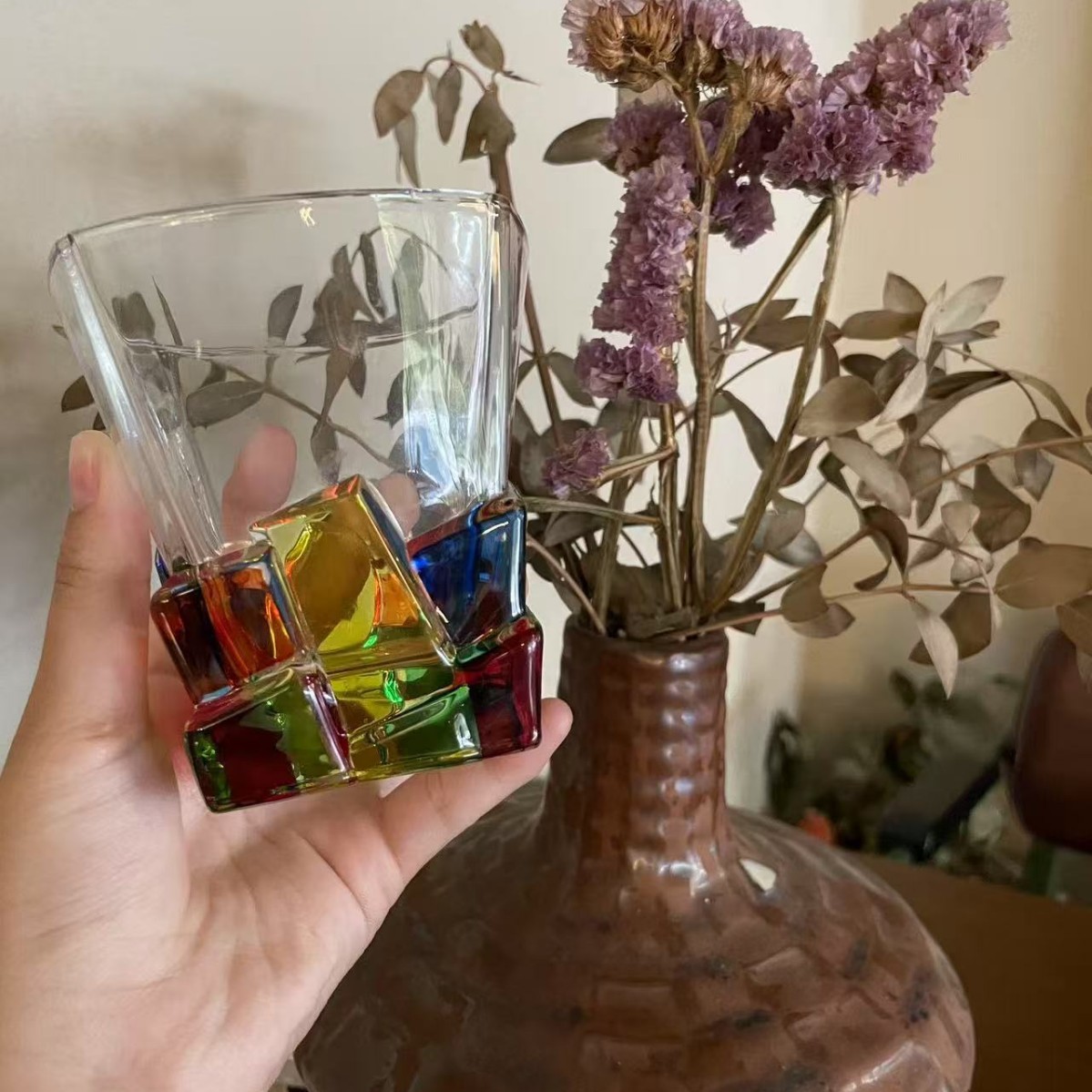 레트로 레드 아이스 와인 잔, 고급 여성용 개인 고가 유리 디자인 틈새 물컵