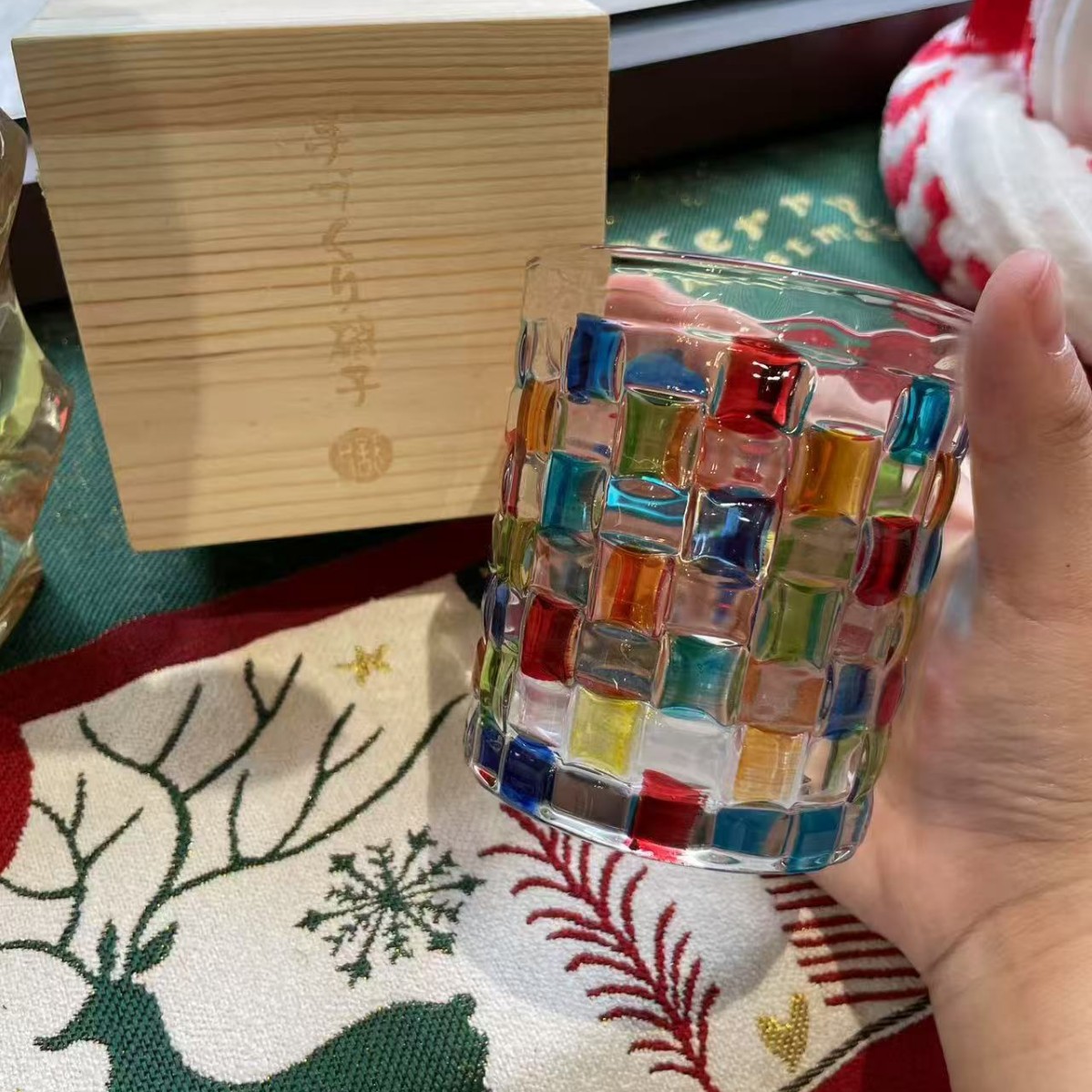 • 채색된 직조 + 통나무 선물 상자