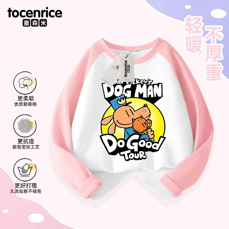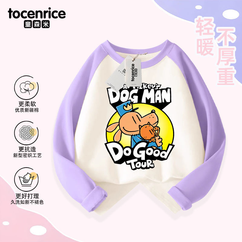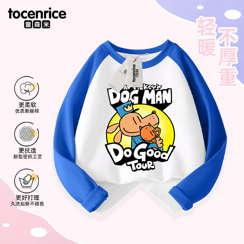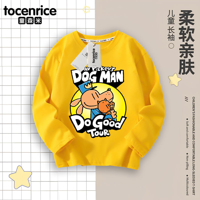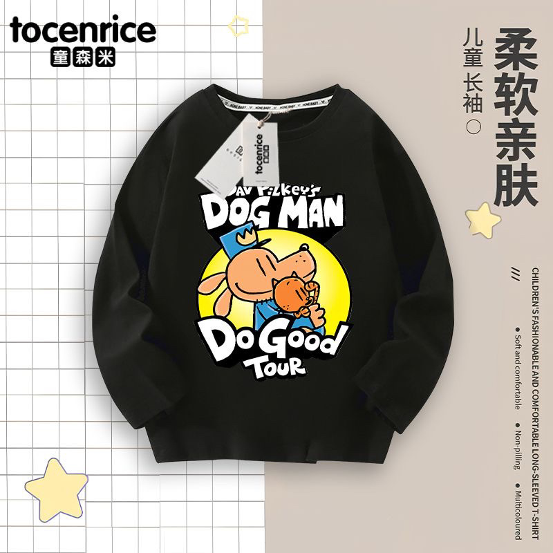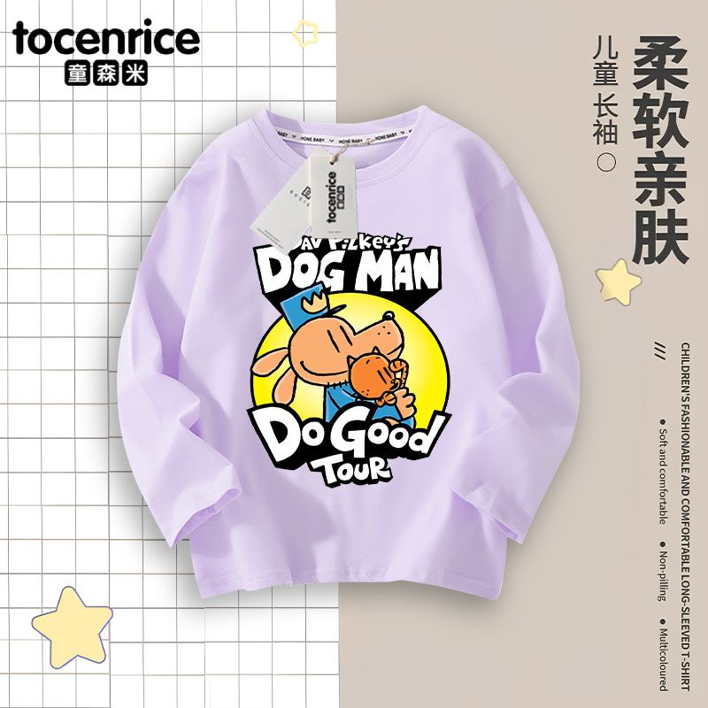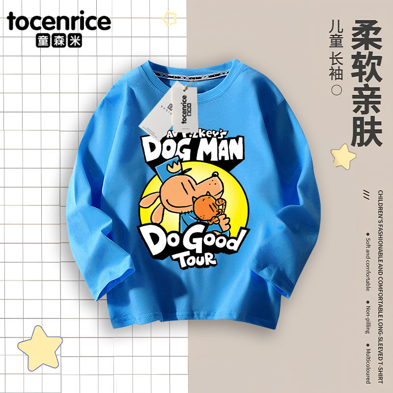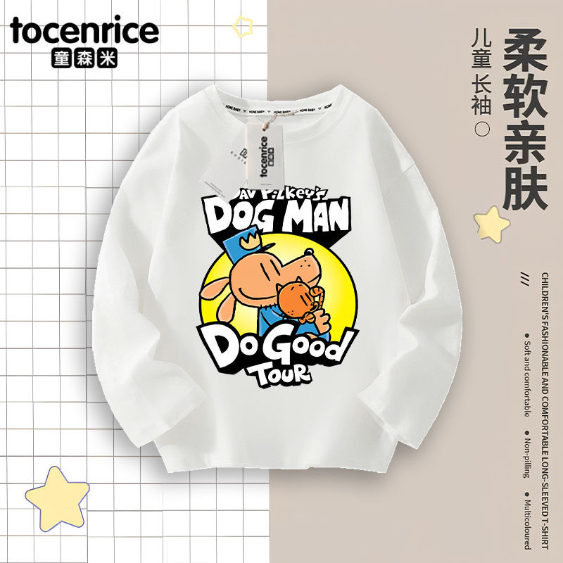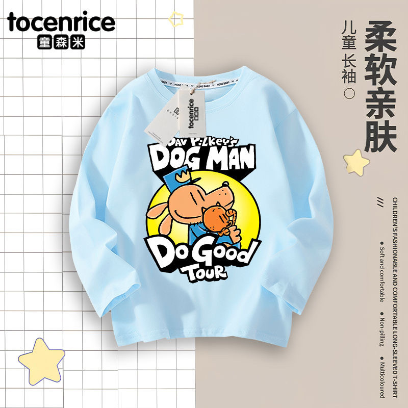 Detective Dog DOG MAN 아동복 소년 긴팔 티셔츠 봄 소년 봄, 가을 탑 아동용 순면 바닥 셔츠스토어 가기