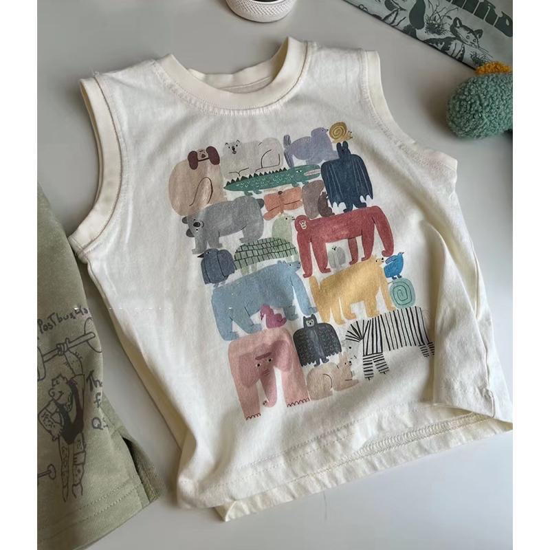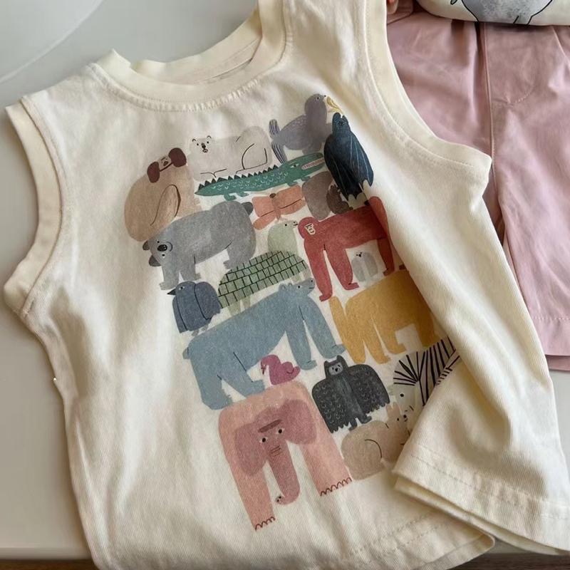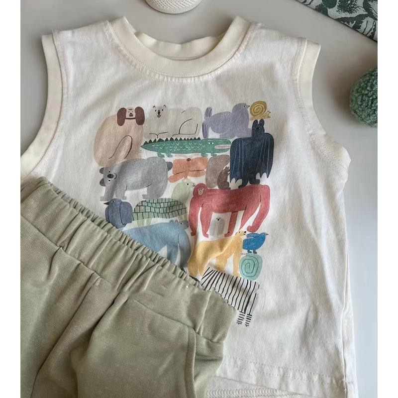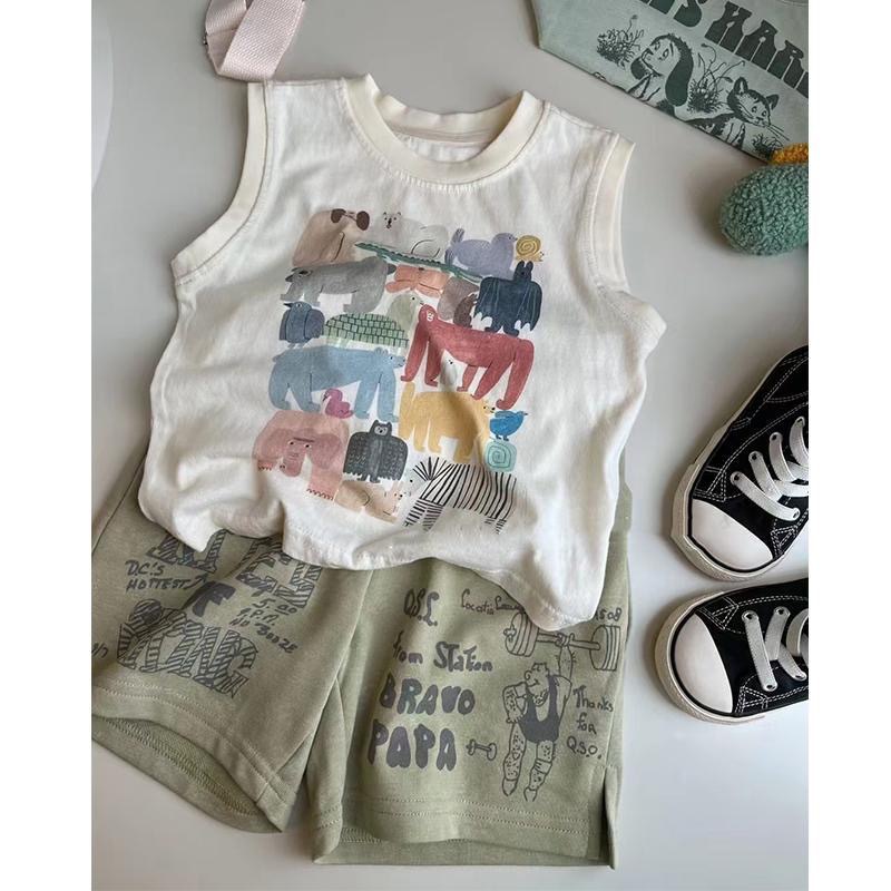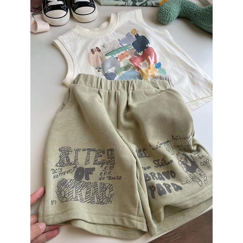한국 스타일 아동 의류 소년 여름 정장 새로운 스타일 아동 유행 순수 코튼 조끼 아기 느슨한 캐주얼 반바지