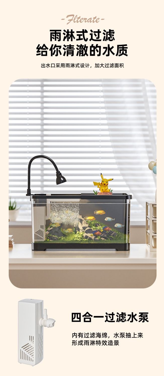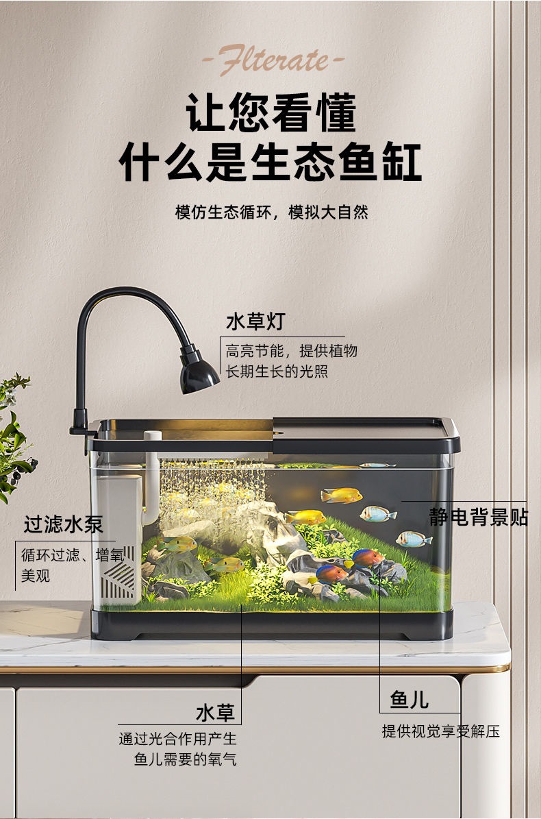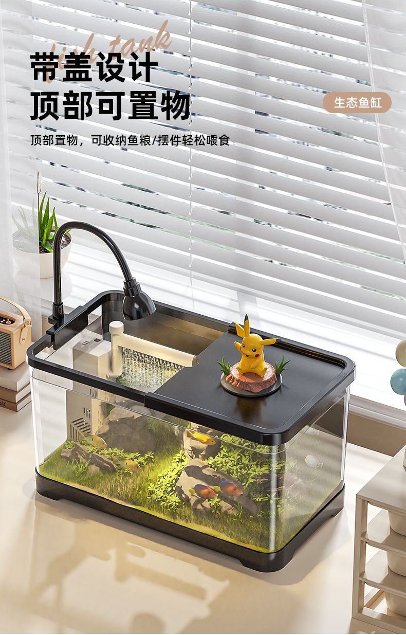 수조 수족관 생태 데스크탑 금붕어 탱크 플라스틱 투명 작은 거실 산소 필터 물 교체가 없는 가정용 탱크스토어 가기