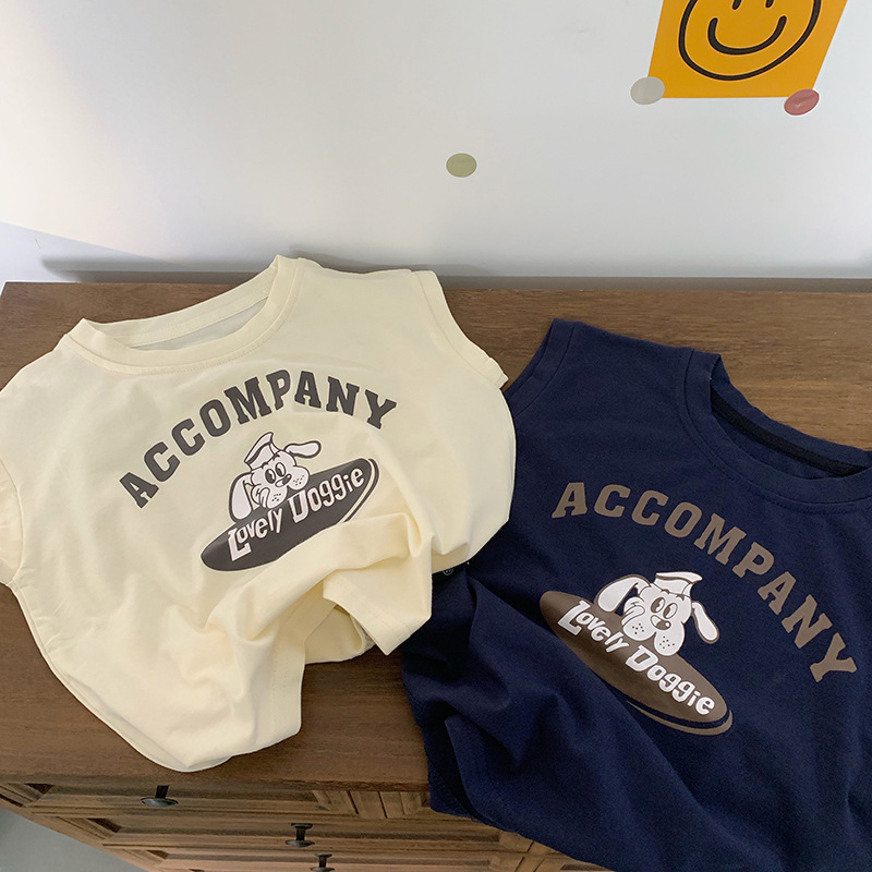 어린이 착용 소년 조끼 여름 얇은 어린이 코튼 만화 통기성 매니큐어 민소매 티셔츠 모든 경기 부드럽고 세련된스토어 가기