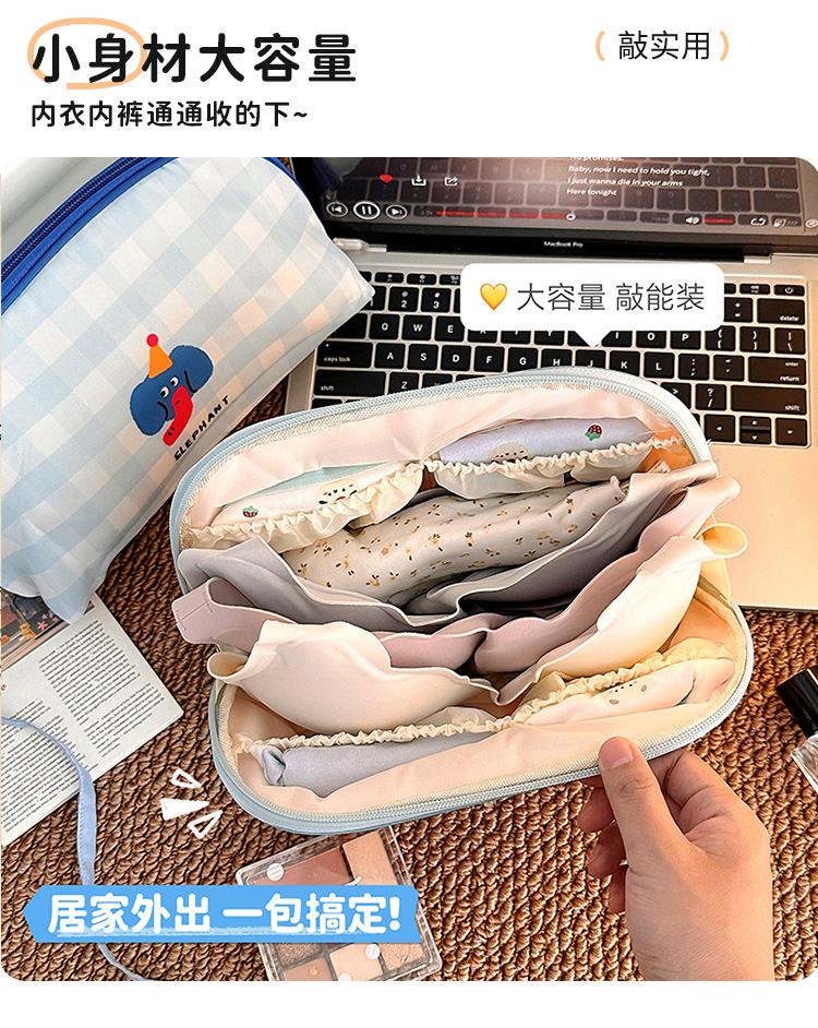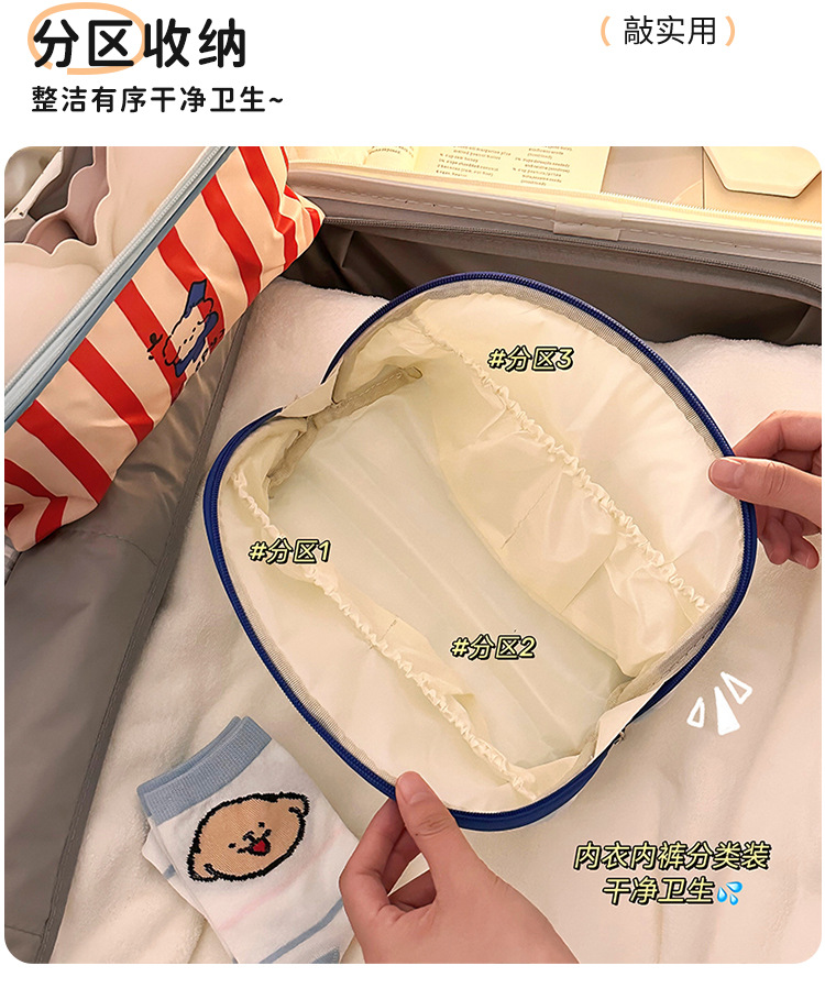 귀여운 화장품 가방, 소녀들을 위한 휴대용 메이크업 가방, 여행용 속옷 보관 가방, 양말 및 속옷 분리 보관 방수 가방