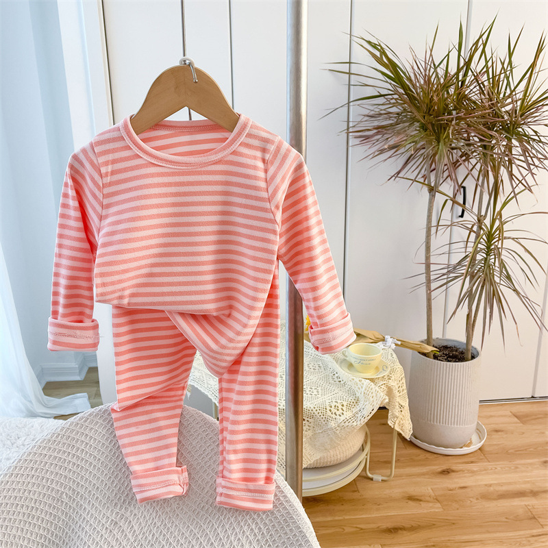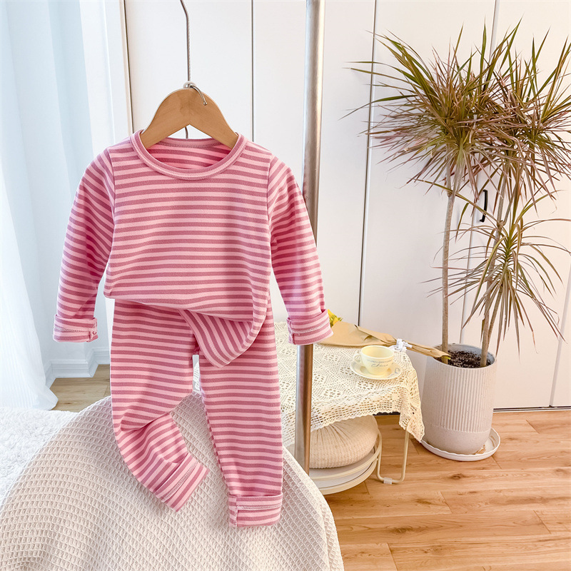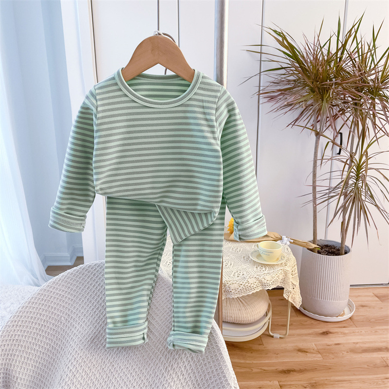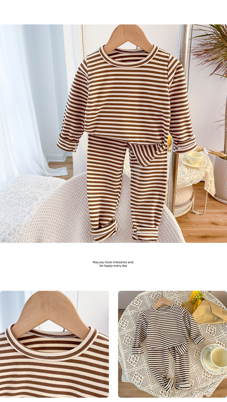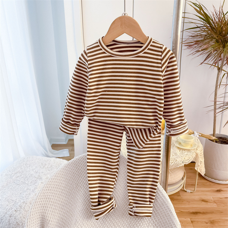 아동용 스트라이프 벨벳 가정복, 남아용 속옷 세트, 여아용 가을 옷과 긴 바지, 유아 및 아동복, 따뜻하고 트렌디함스토어 가기
