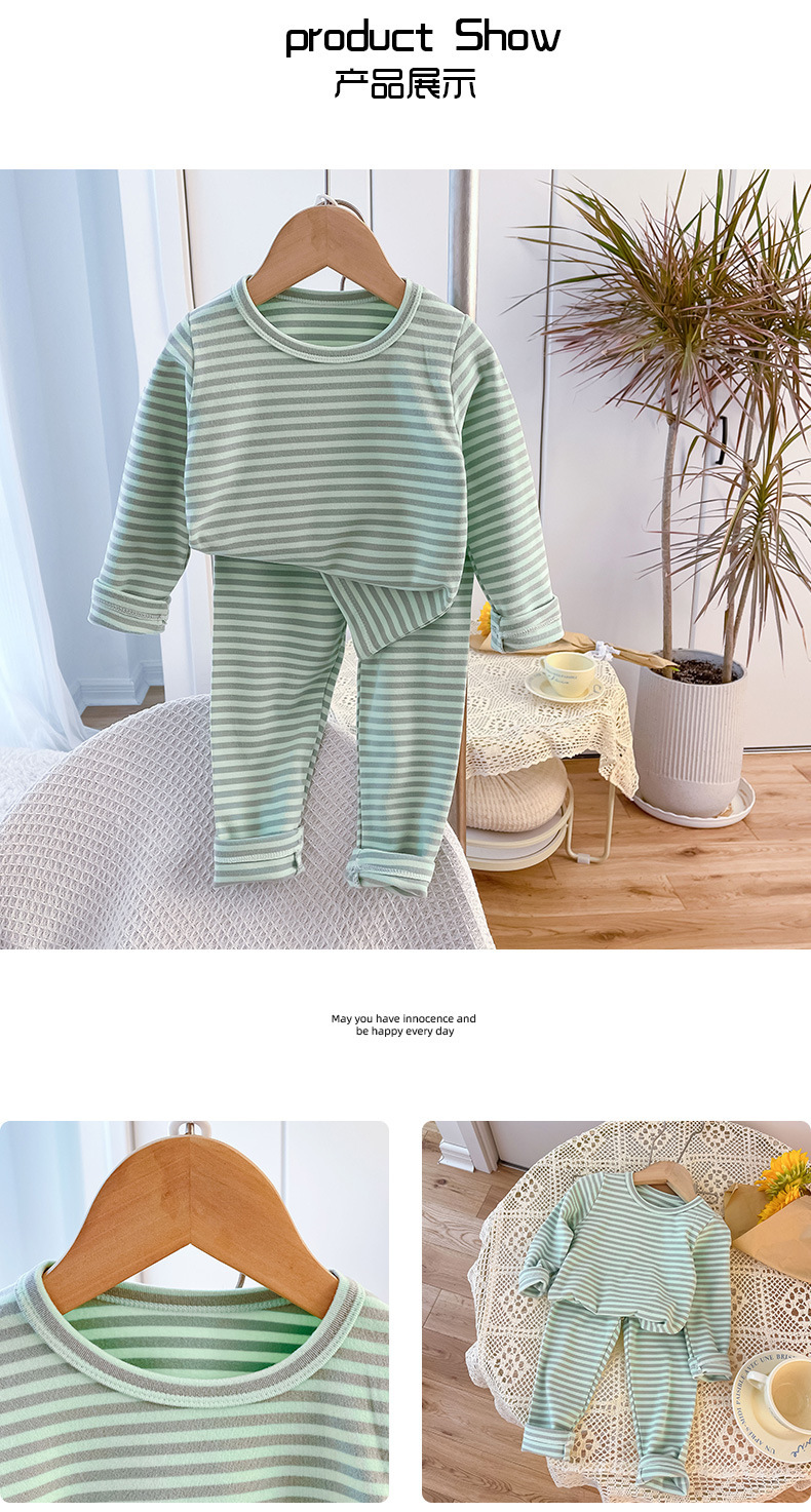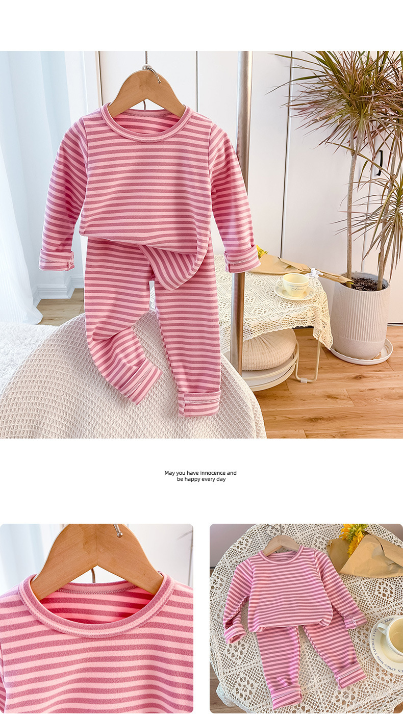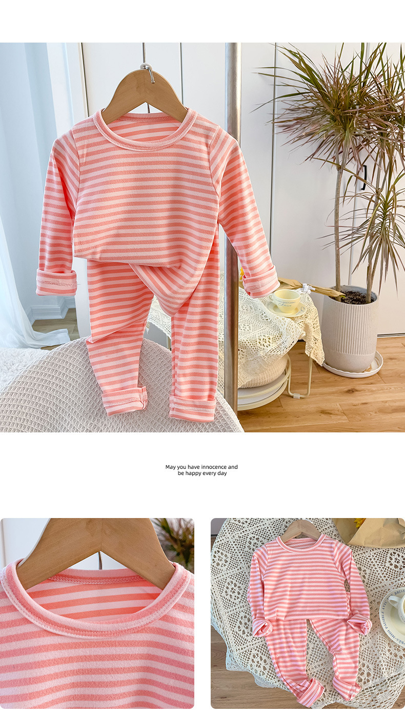 아동용 스트라이프 벨벳 가정복, 남아용 속옷 세트, 여아용 가을 옷과 긴 바지, 유아 및 아동복, 따뜻하고 트렌디함스토어 가기