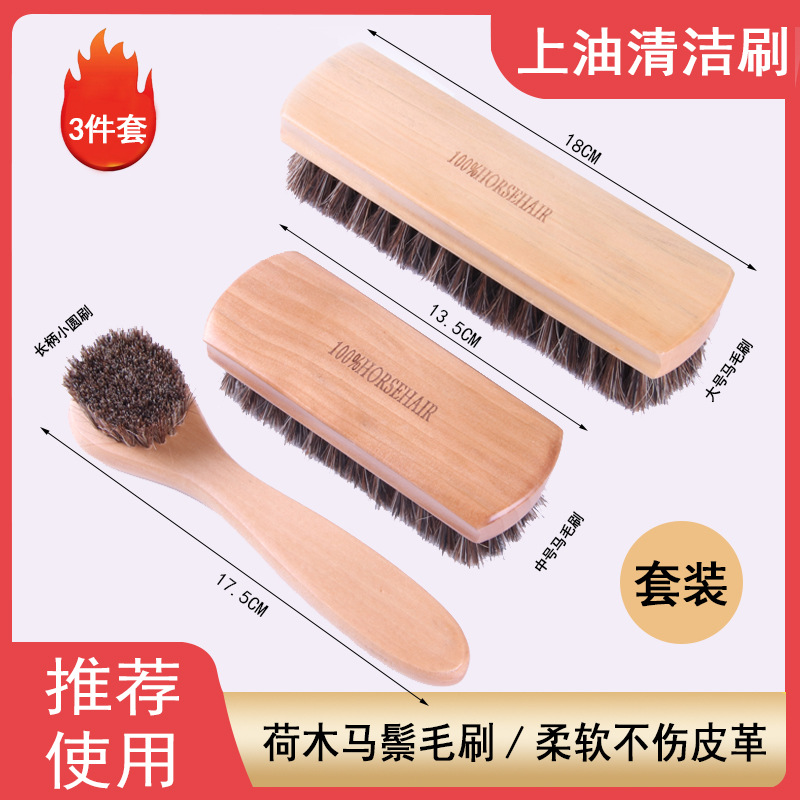 马鬃毛皮鞋刷组合软毛不伤鞋家用实木抛光护理鞋油刷专业鞋刷套装
