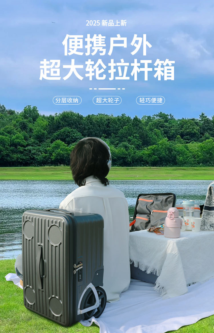 2025 새로운 야외 PC 가방 초대형 휠 측면 개방형 통합 트롤리 케이스 20inch 대용량 캠핑 가방스토어 가기