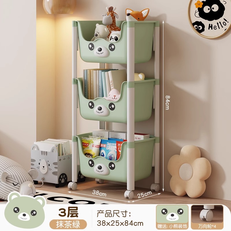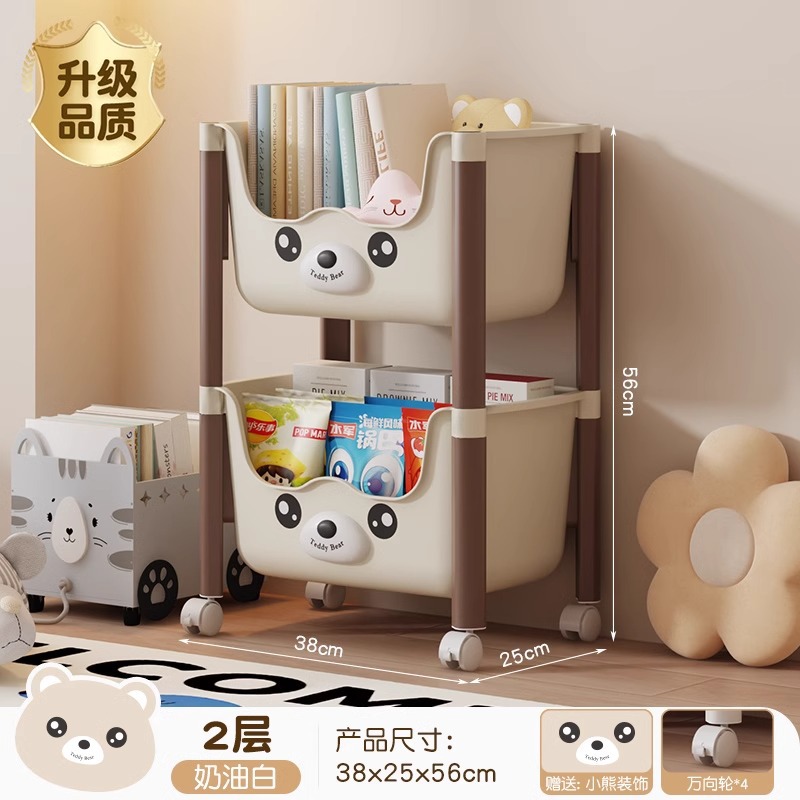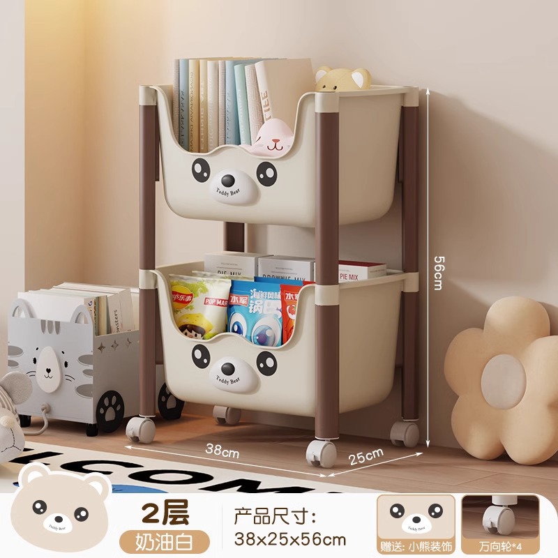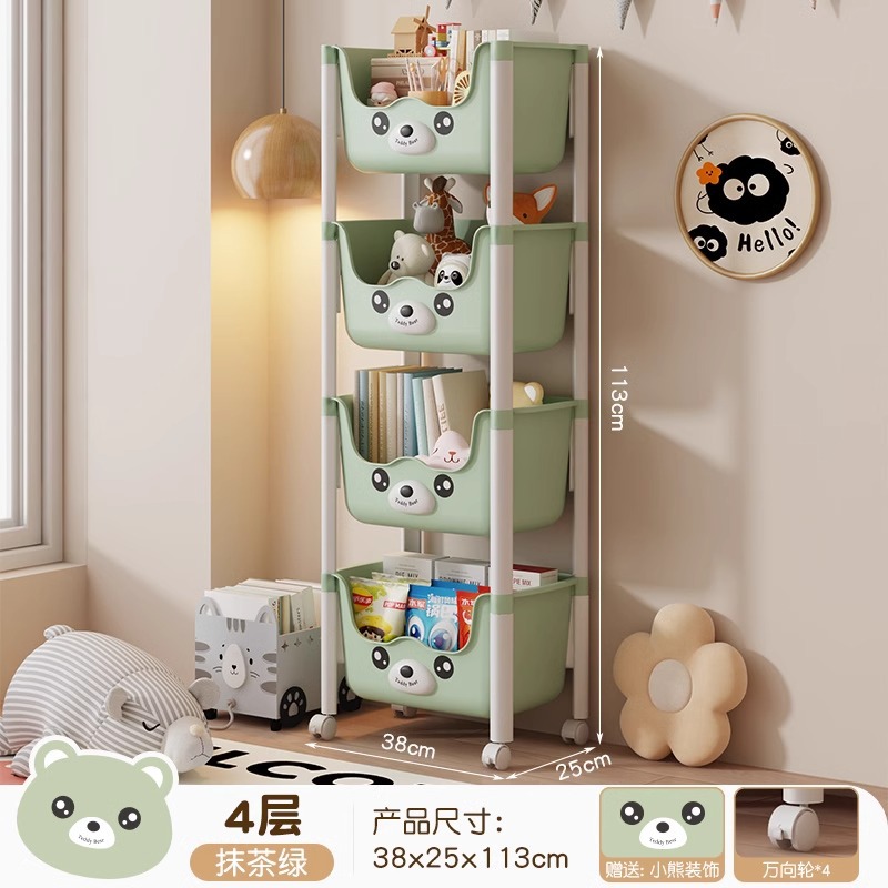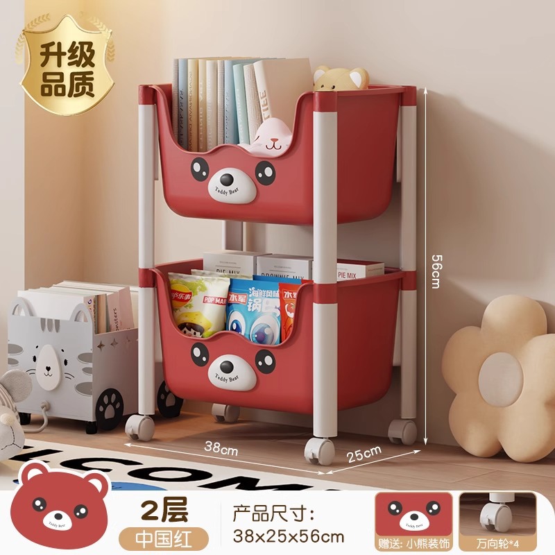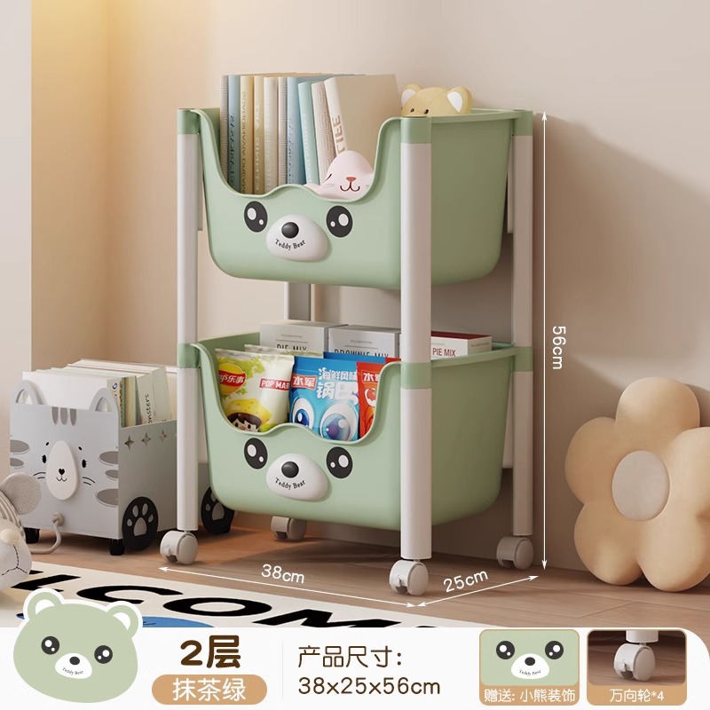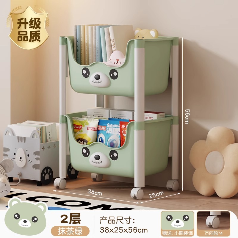 트롤리 선반 바닥에 서있는 다층 가정용 거실 간식 아기 제품 보관 랙 이동식 어린이 책장스토어 가기