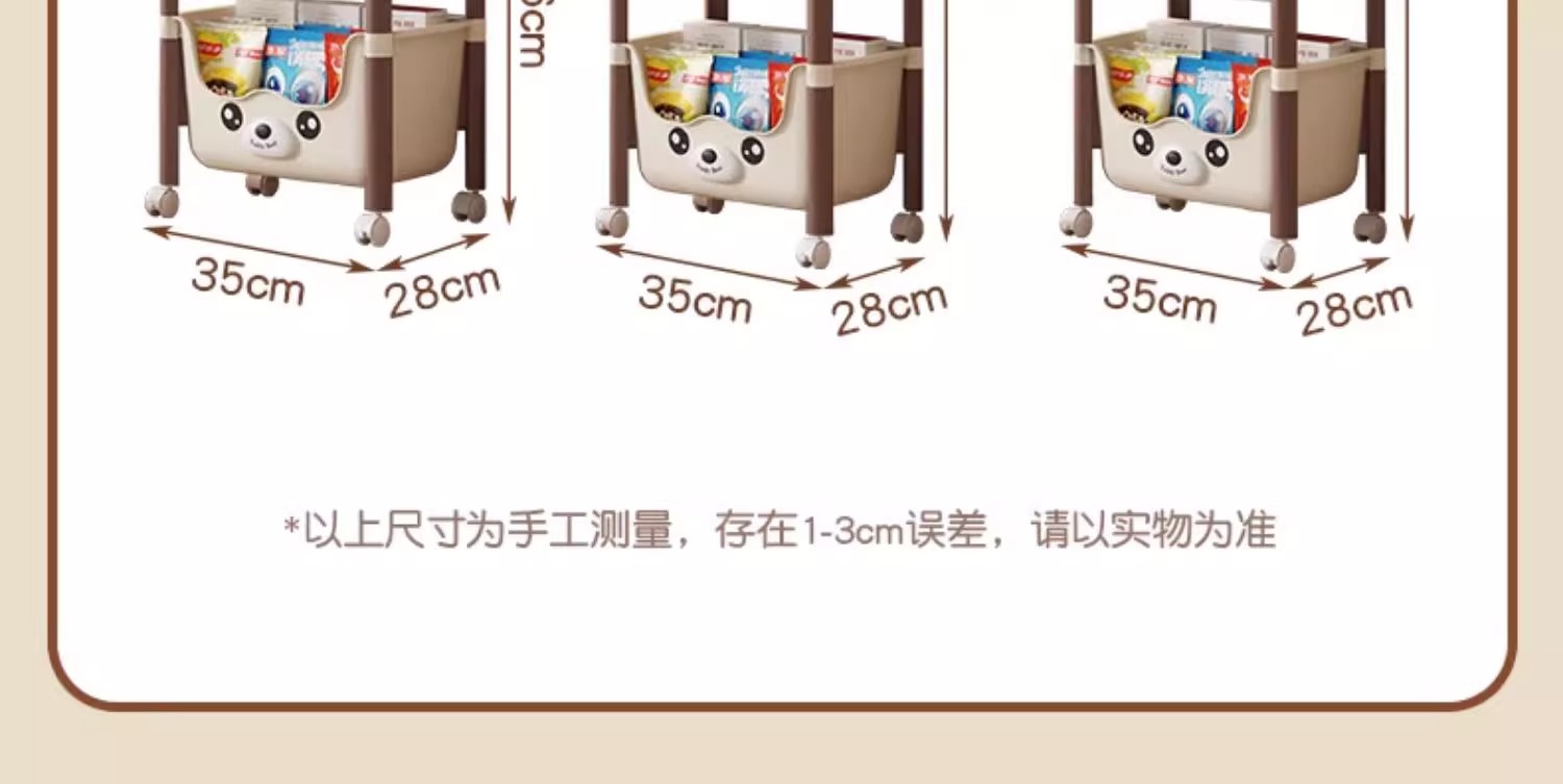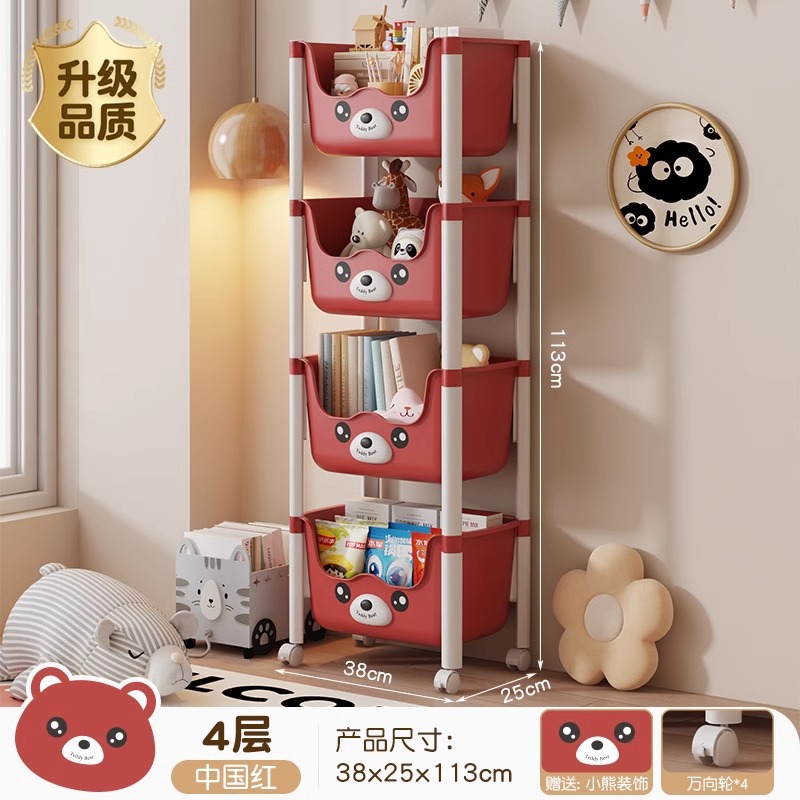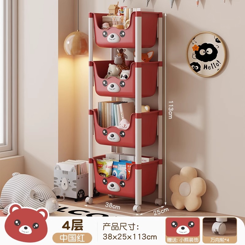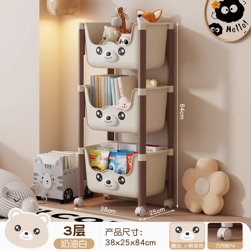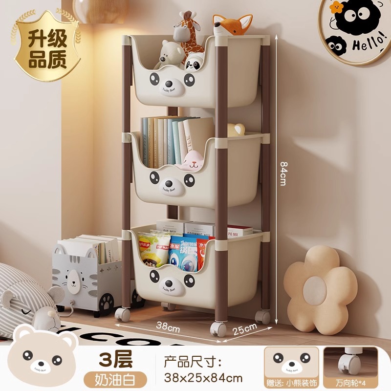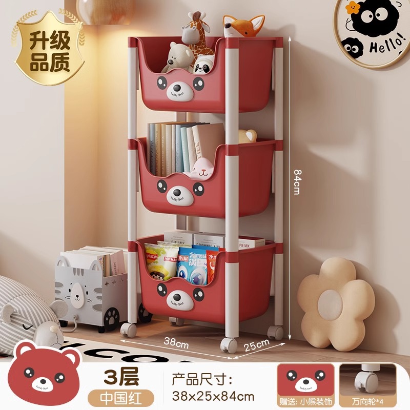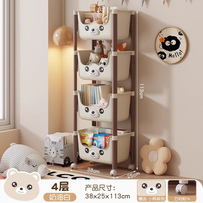트롤리 선반 바닥에 서있는 다층 가정용 거실 간식 아기 제품 보관 랙 이동식 어린이 책장스토어 가기