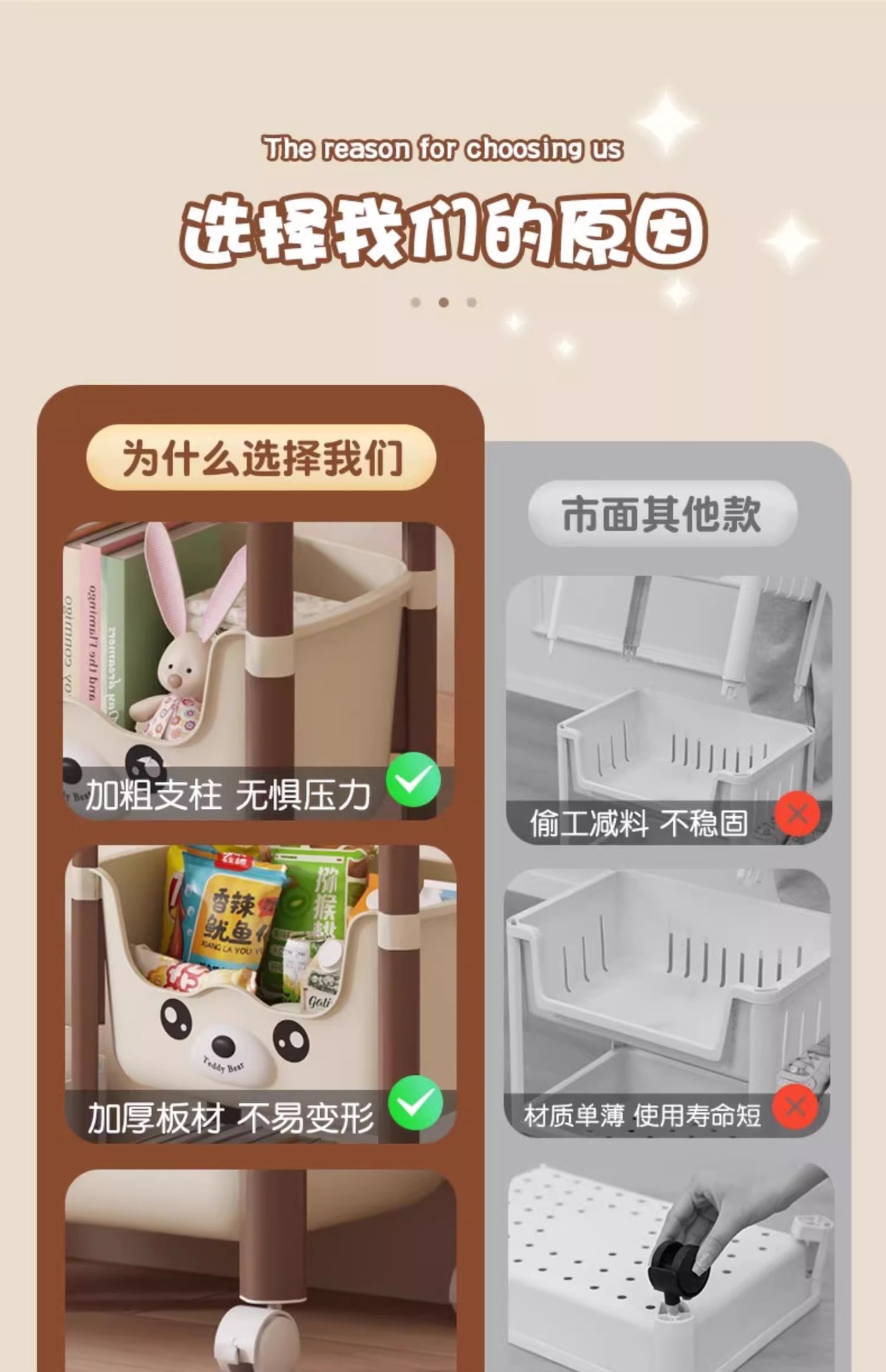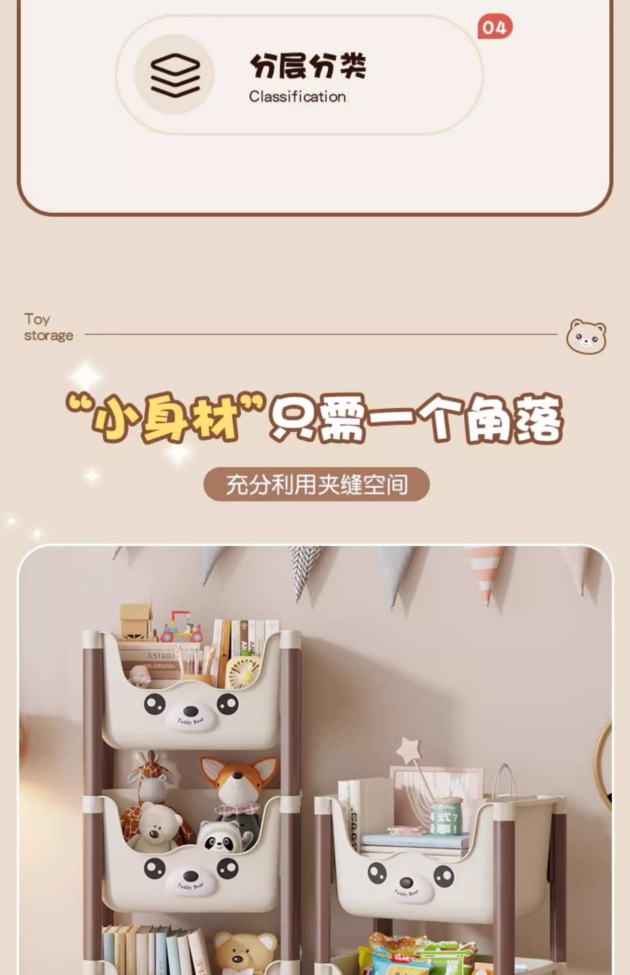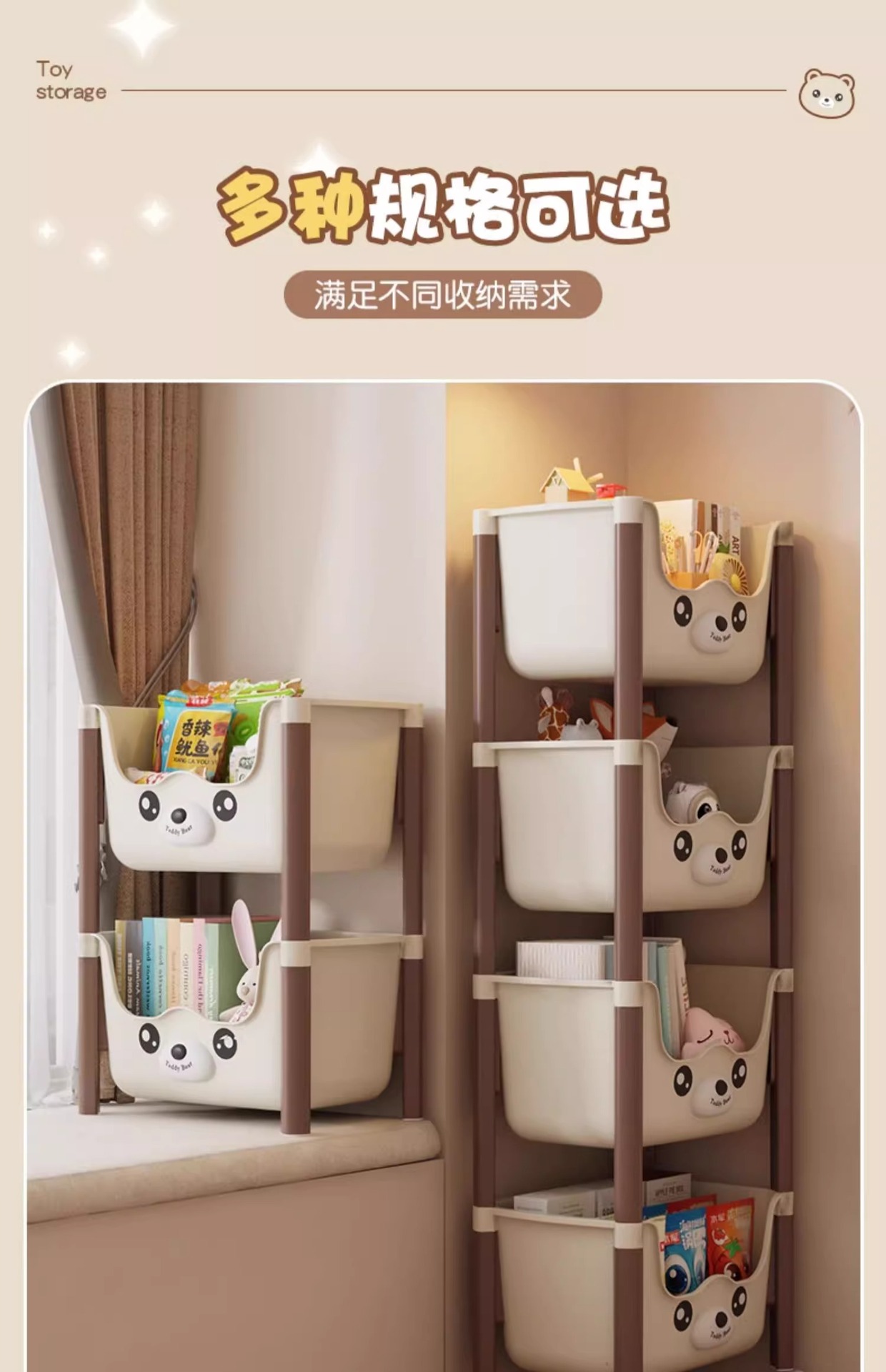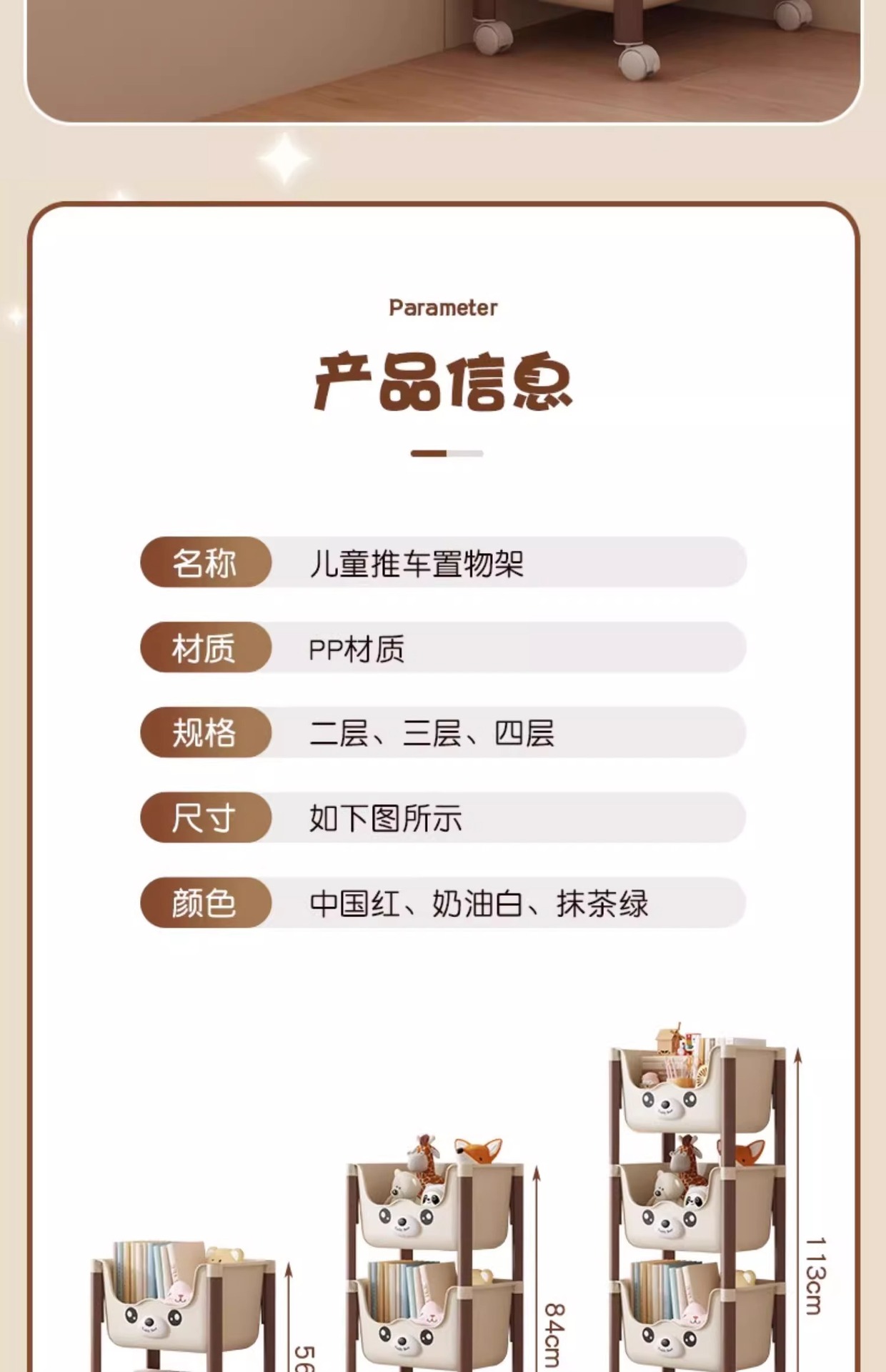 트롤리 선반 바닥에 서있는 다층 가정용 거실 간식 아기 제품 보관 랙 이동식 어린이 책장