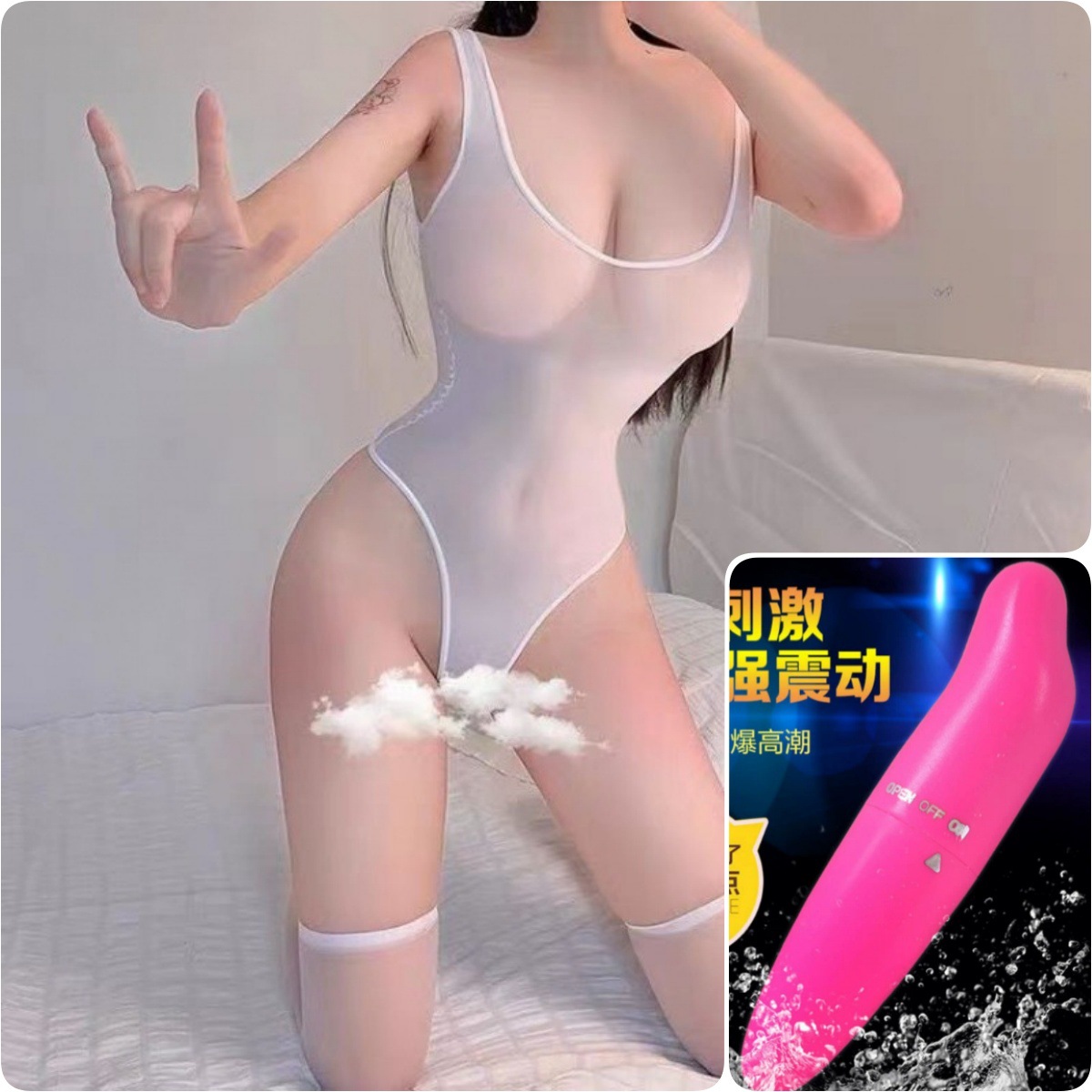 • 흰색 오픈 점프수트 + 장난감 스틱