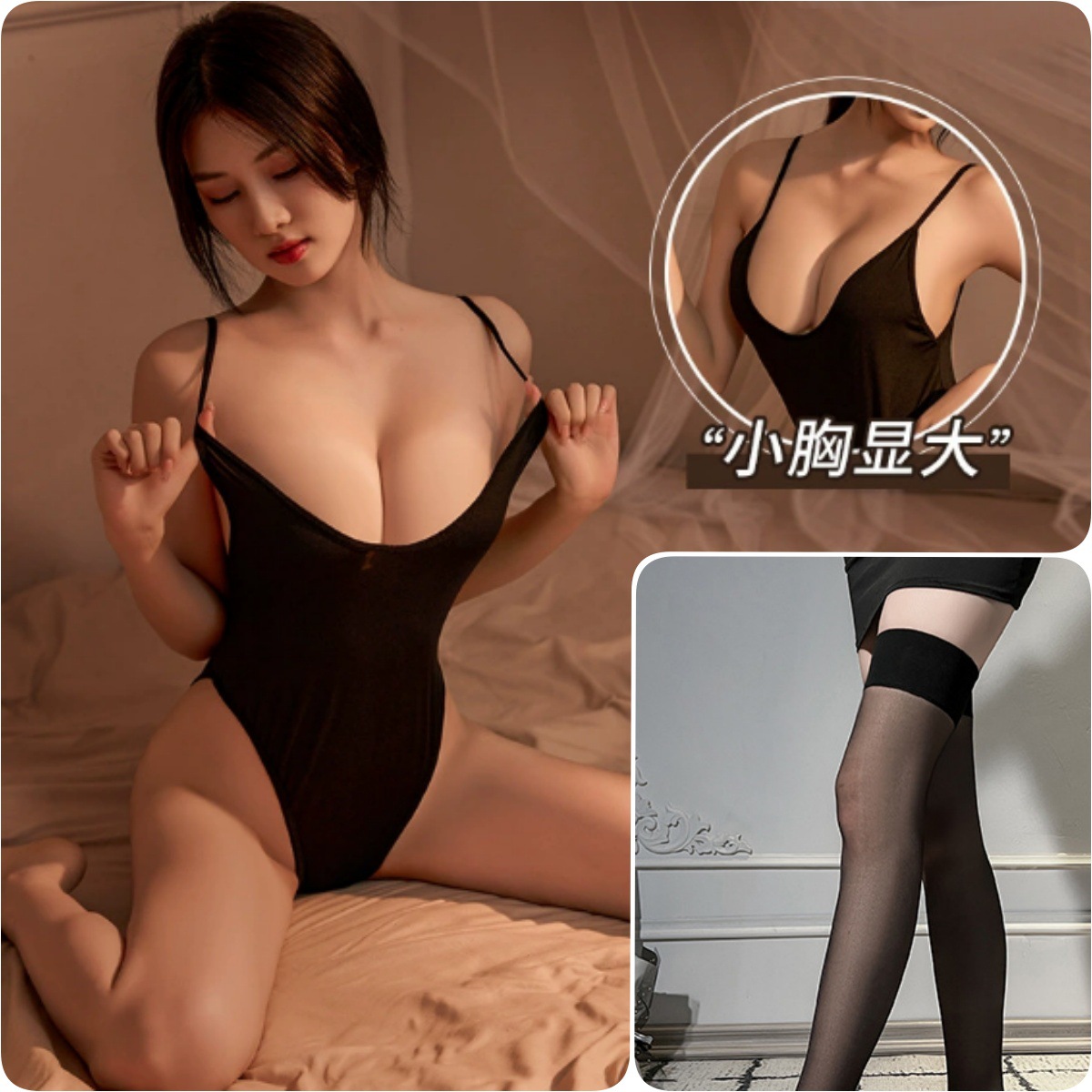 • 블랙 오픈 점프수트 + 블랙 스타킹
