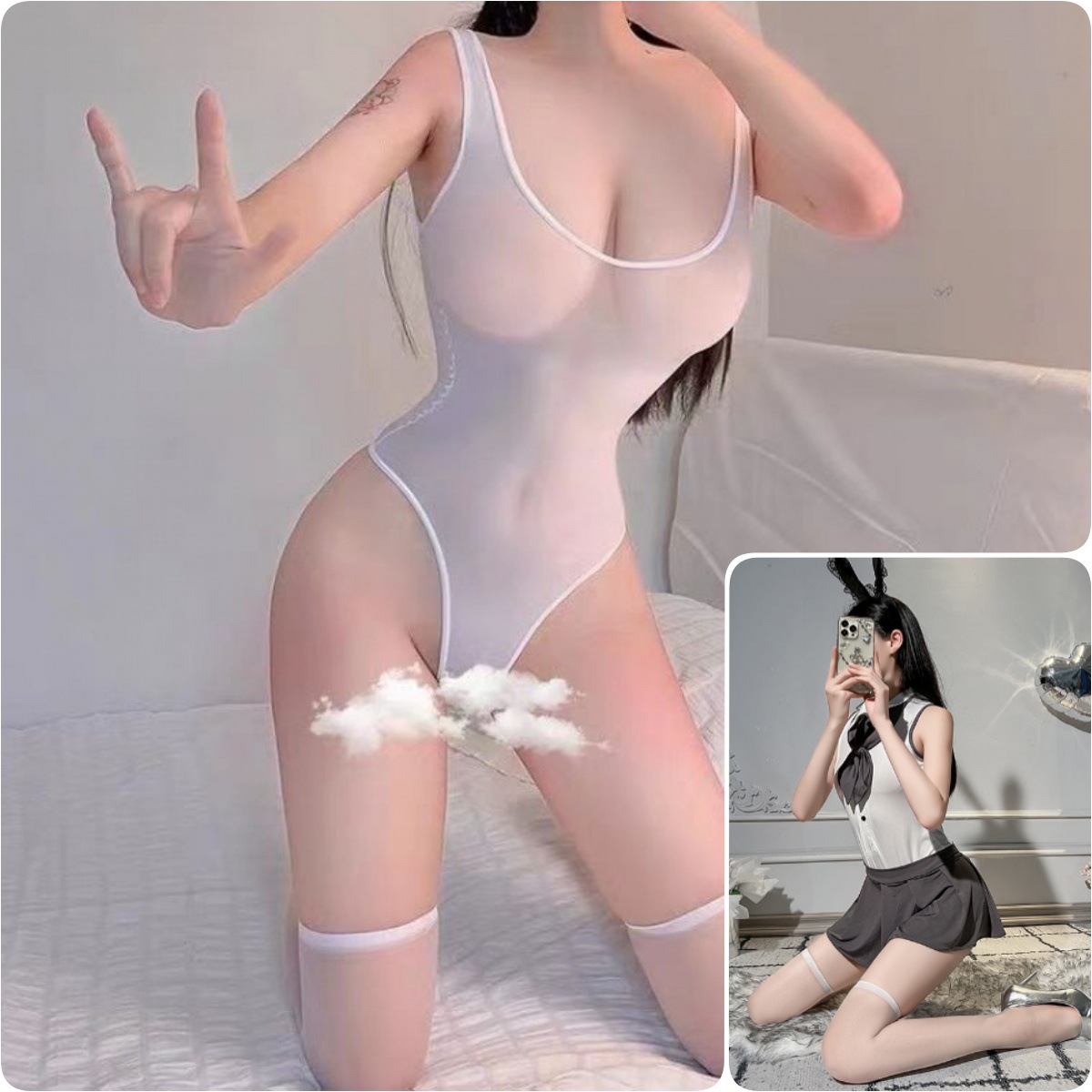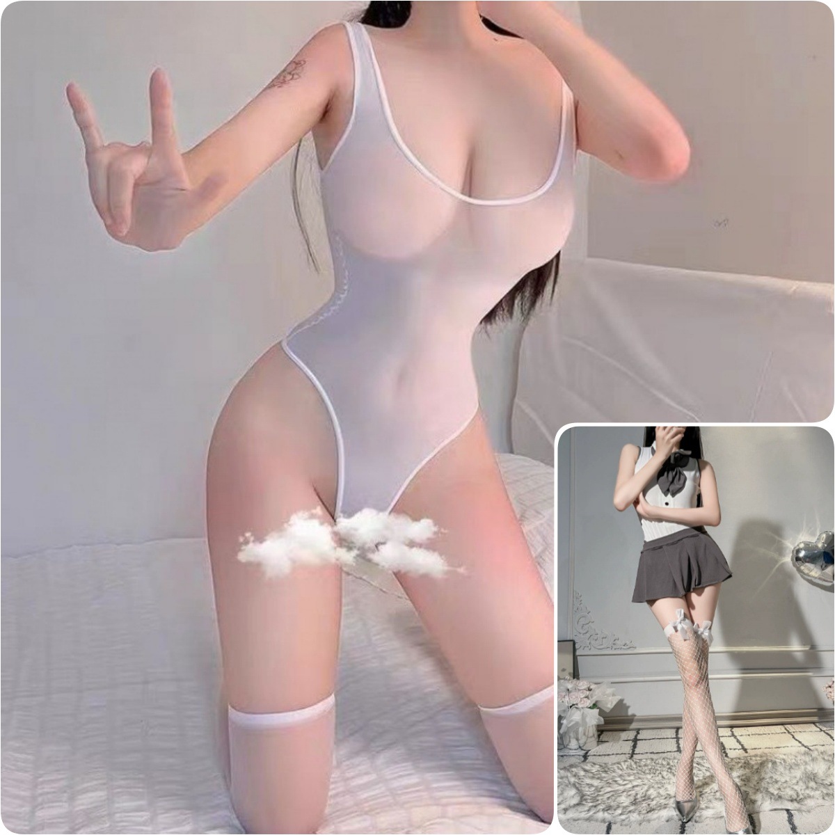 섹시 란제리 일본 2차원 시스루 섹시 유혹 귀여운 서스펜더 데스쿠 수영복 가랑이 없는 여성용 점프수트