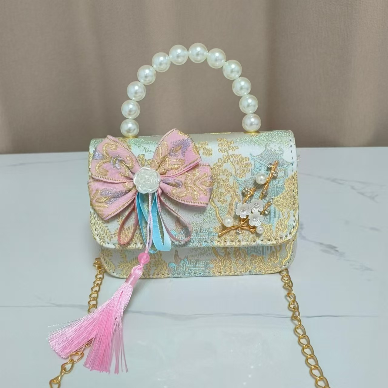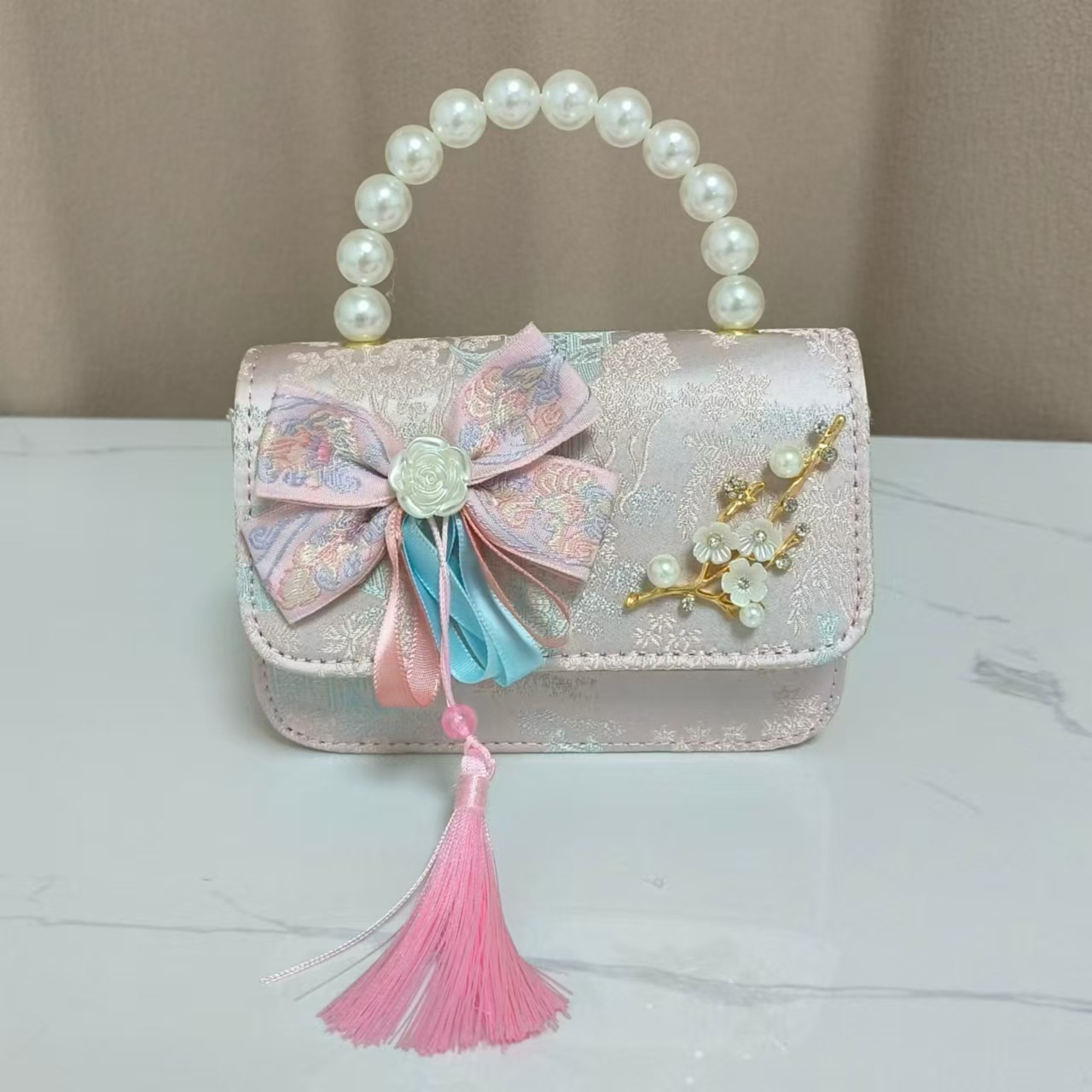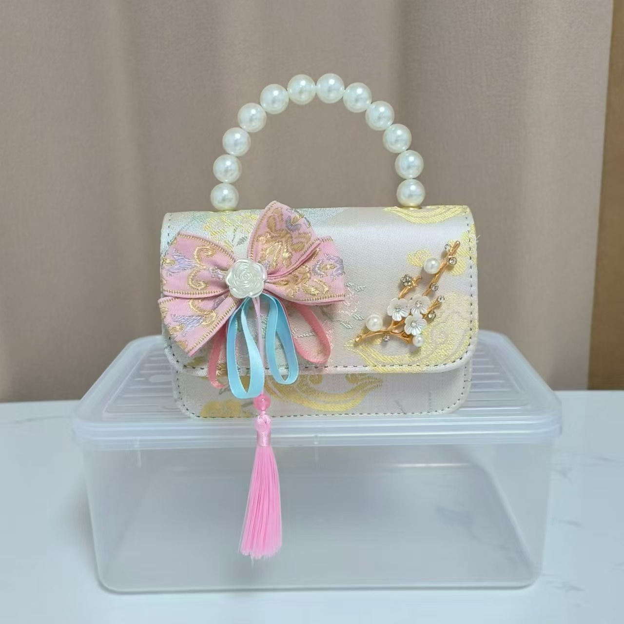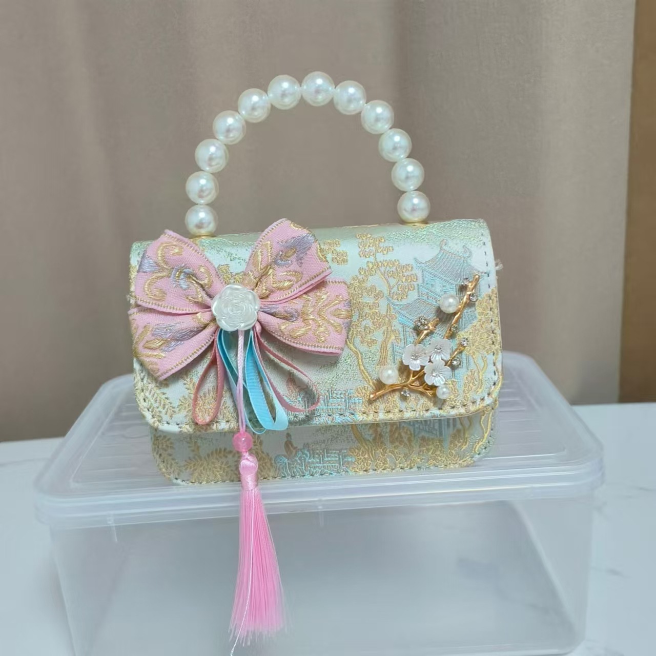 蝴蝶结国风公主包唐装配饰包链条珍珠手提包六一儿童节斜挎包方包