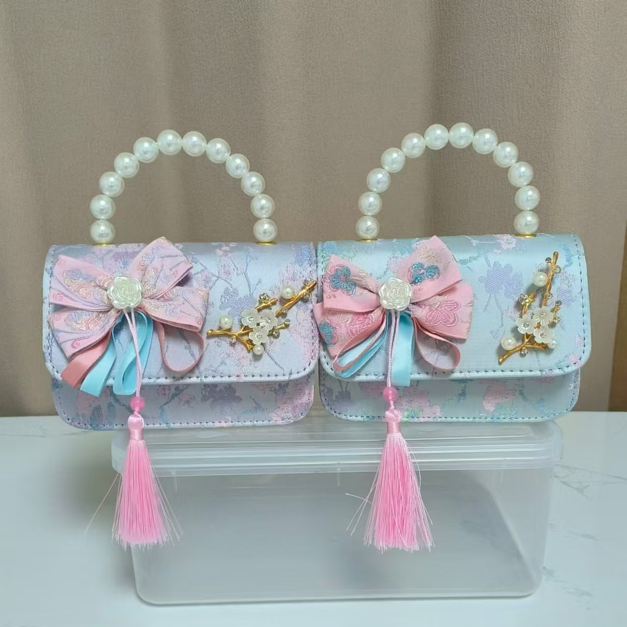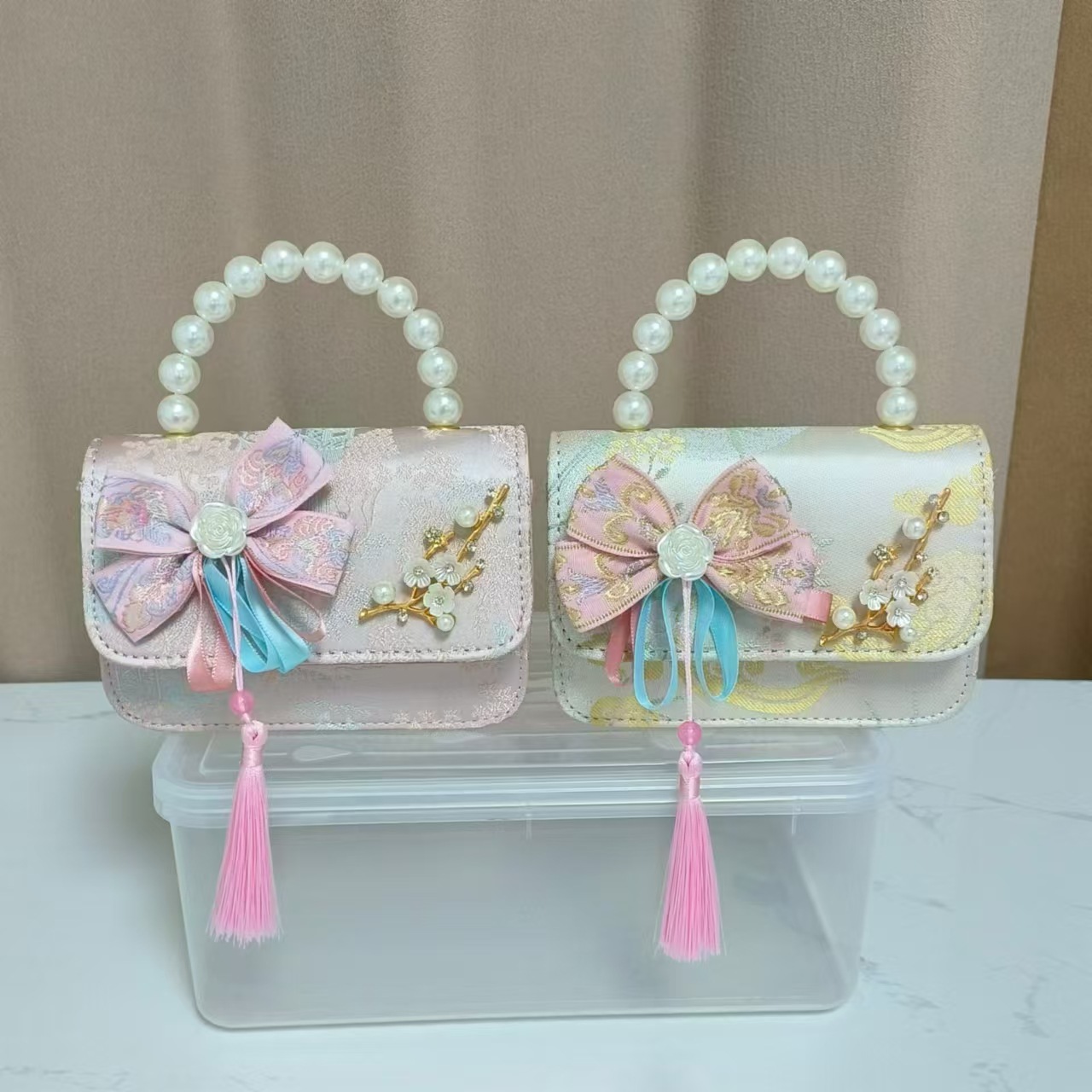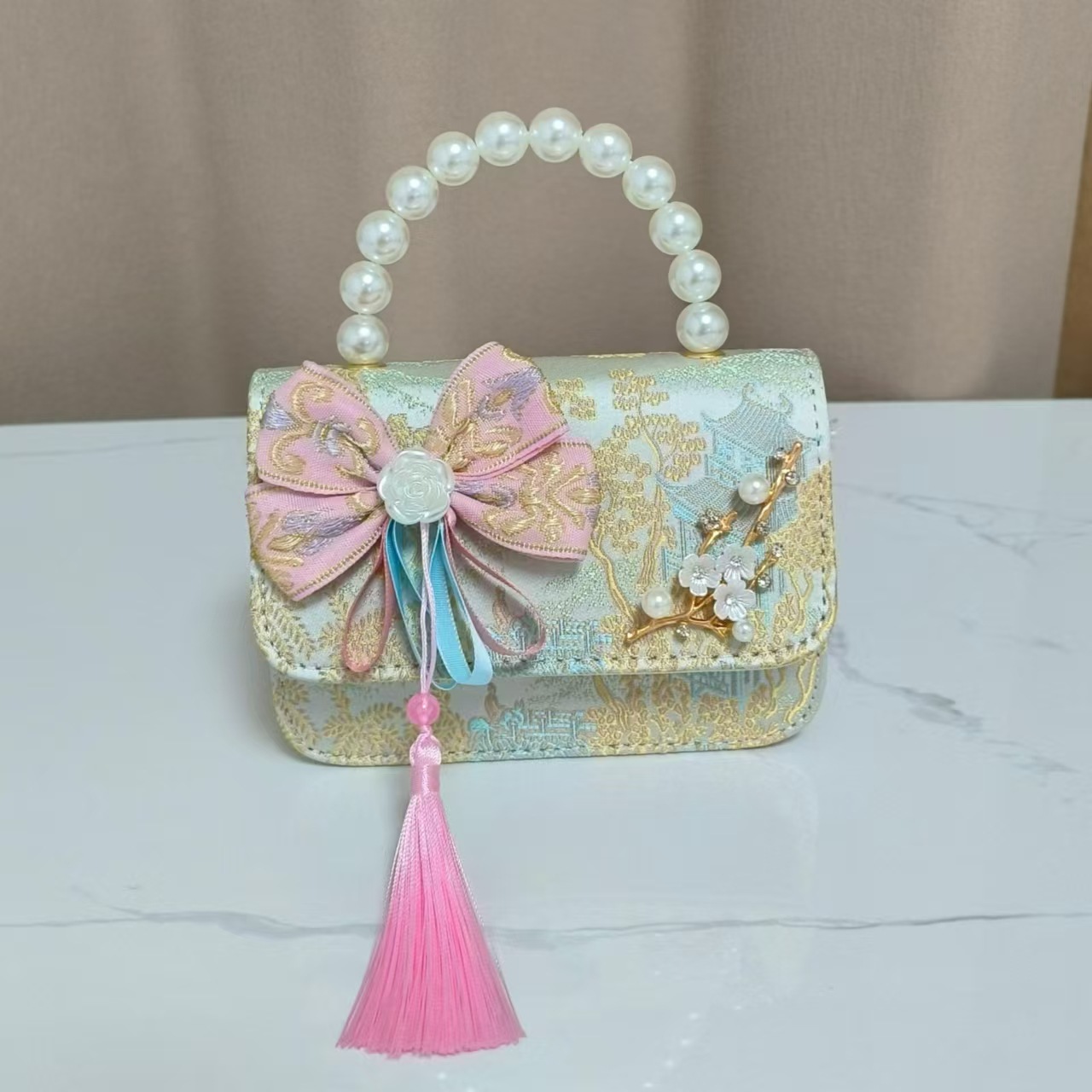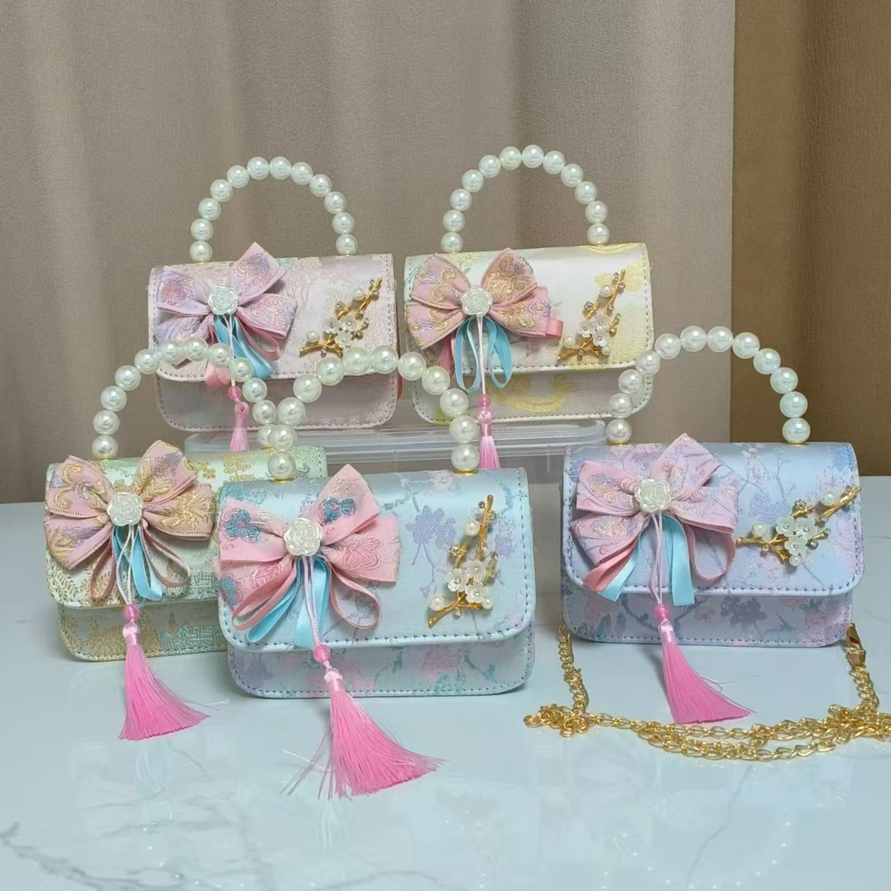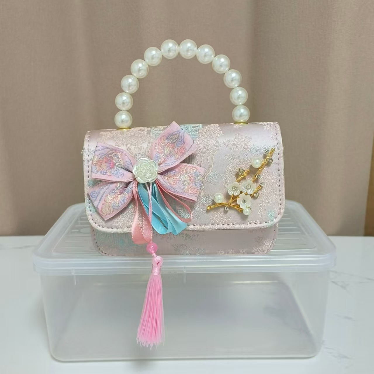 蝴蝶结国风公主包唐装配饰包链条珍珠手提包六一儿童节斜挎包方包