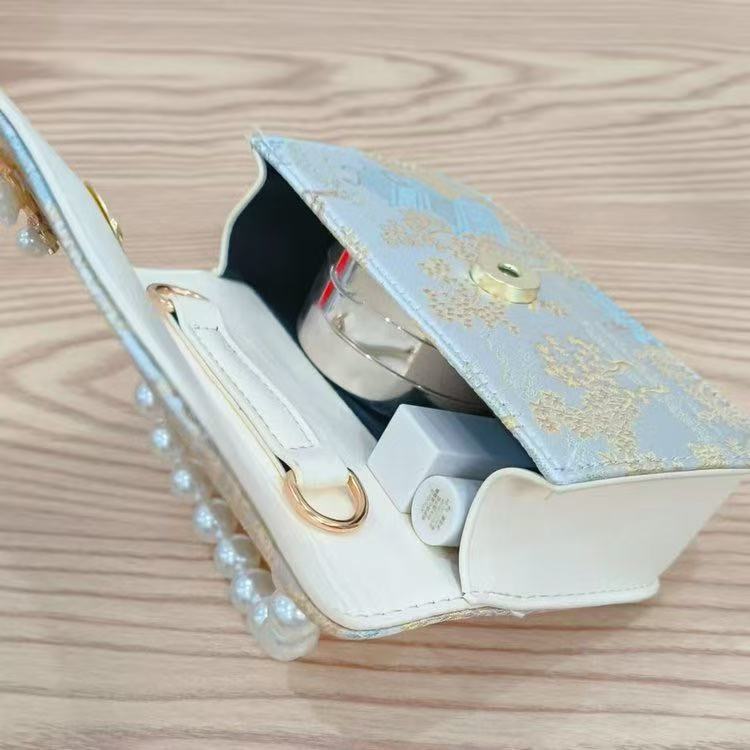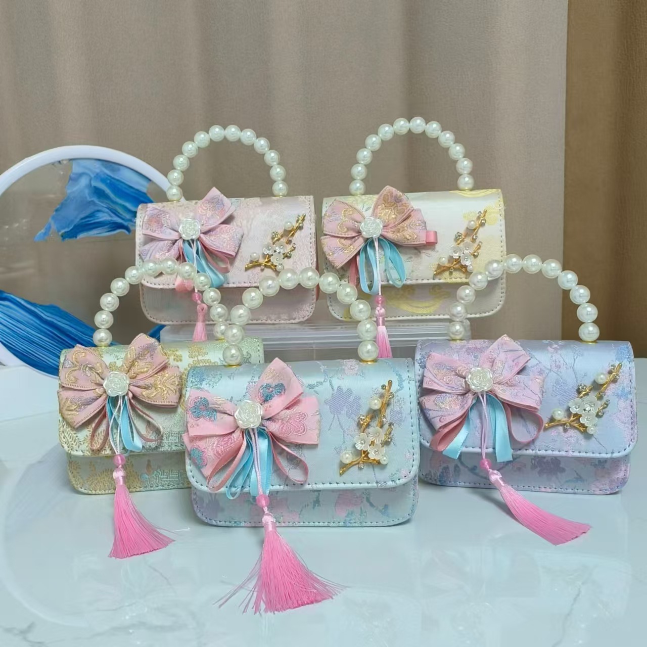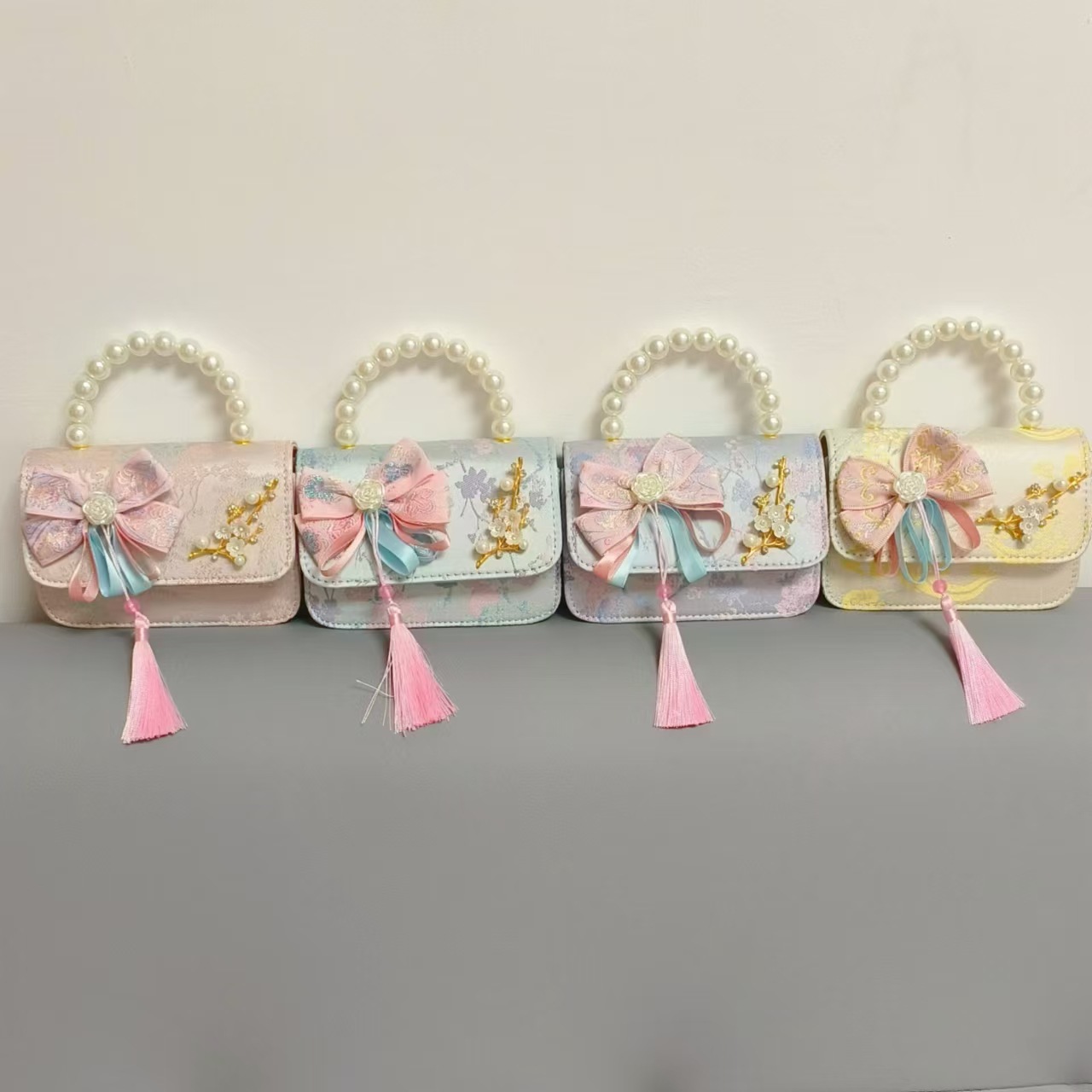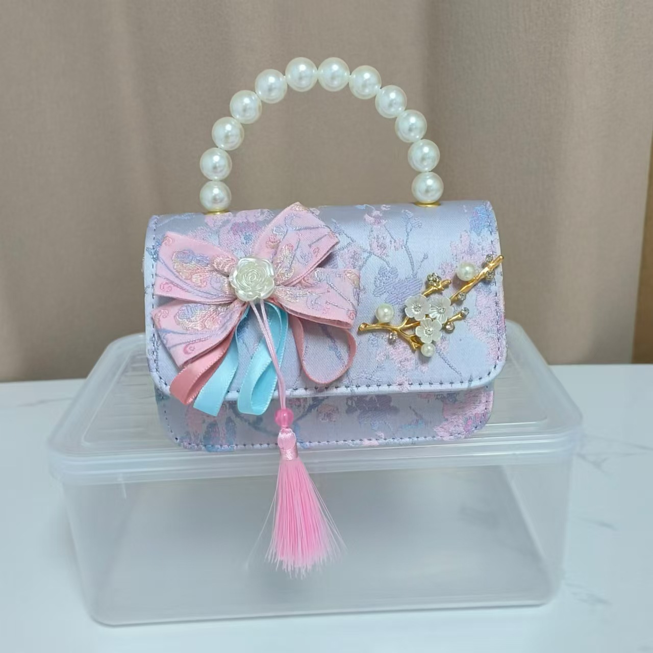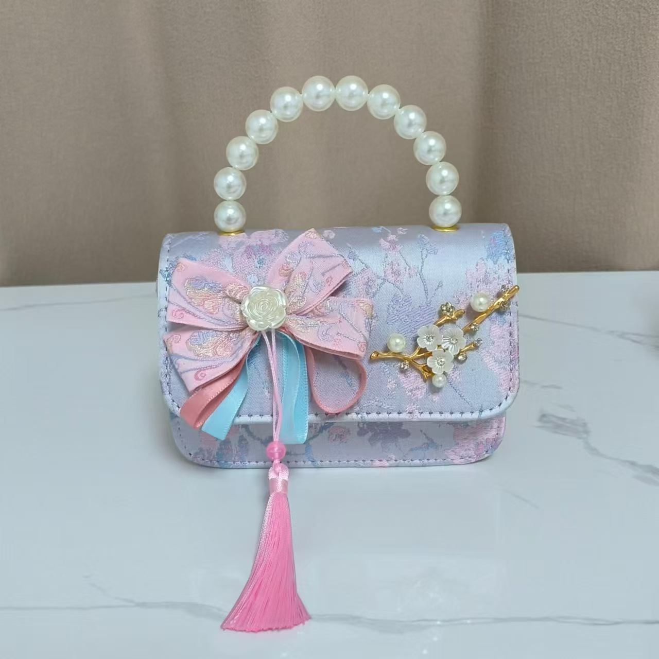 蝴蝶结国风公主包唐装配饰包链条珍珠手提包六一儿童节斜挎包方包