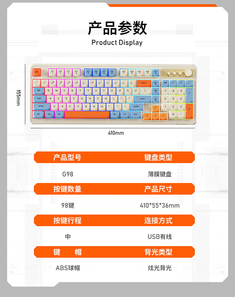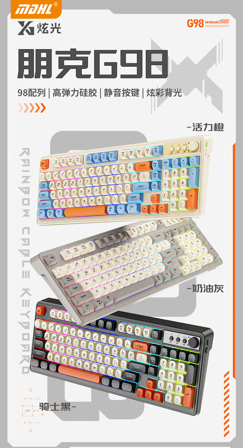 • R720 Vibrant Orange-[무선 3모드] 백색광 단일 키보드