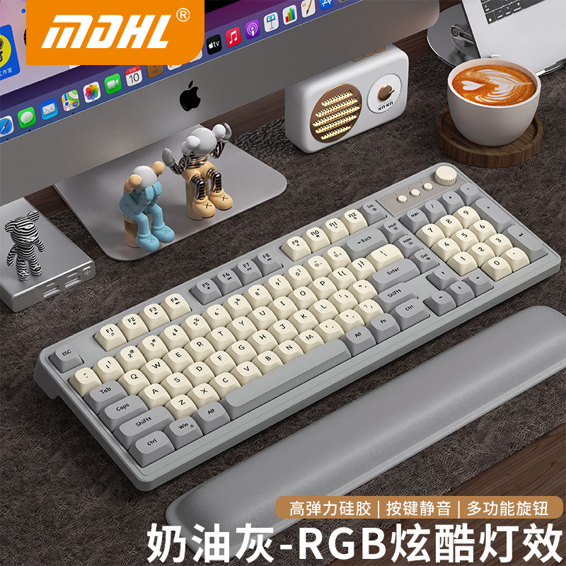 MDHL 무선 키보드 3 모드 오피스 블루투스 무음 고가치 눈부심 노트북 기계적 느낌 게임용 키보드