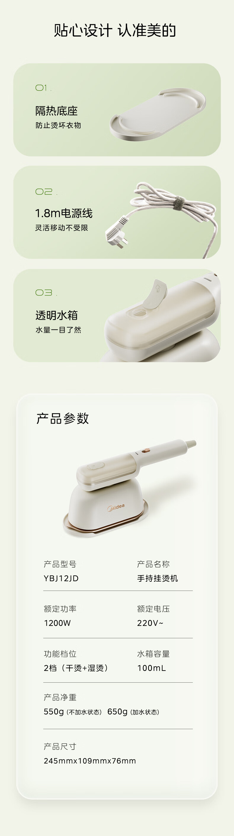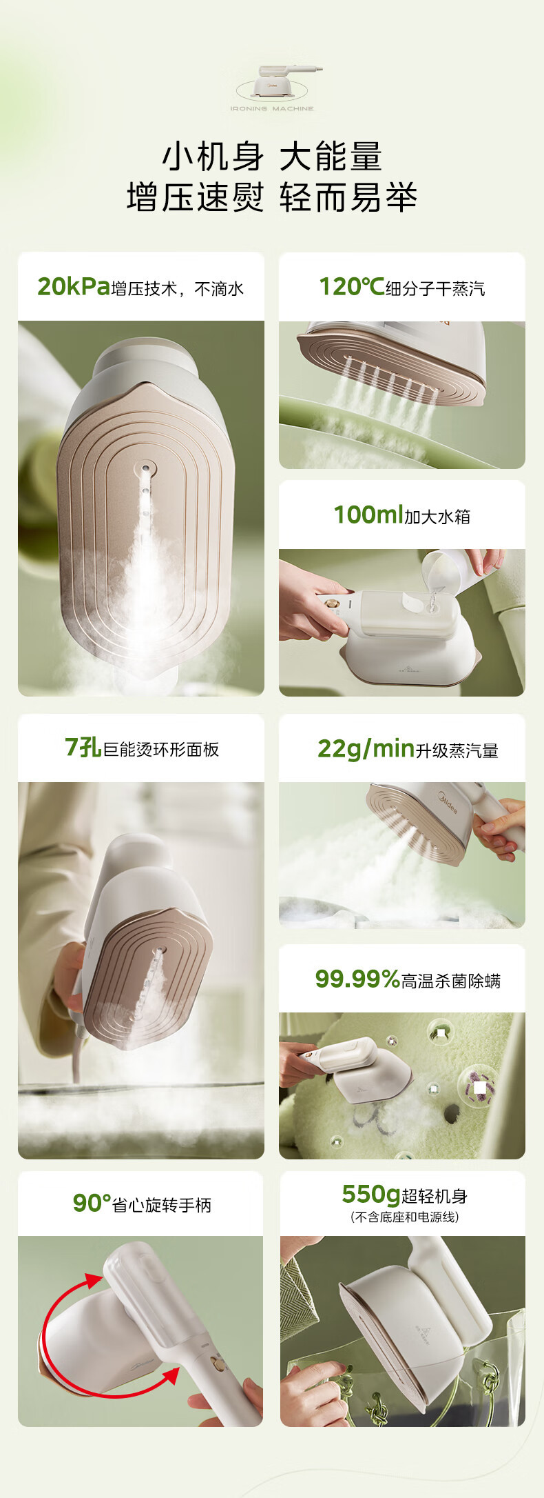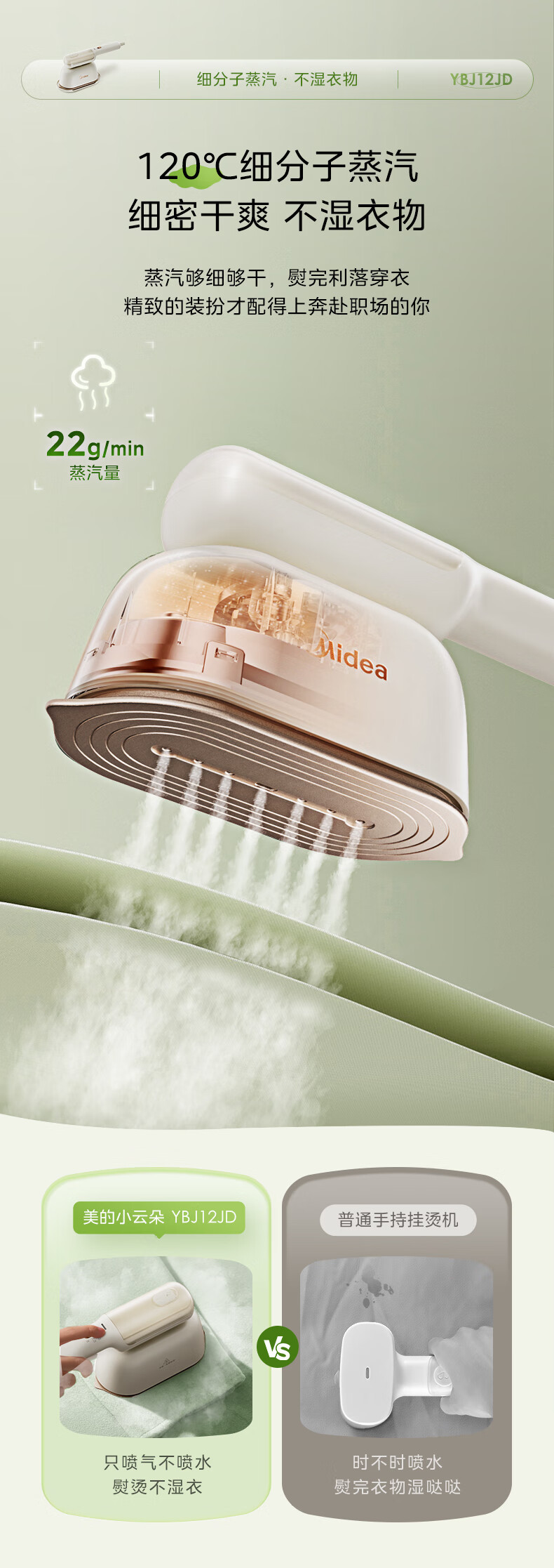 Midea 핸드 헬드 철 가구 휴대용 증기 철 여행 휴대용 작은 철 YBJ12JD