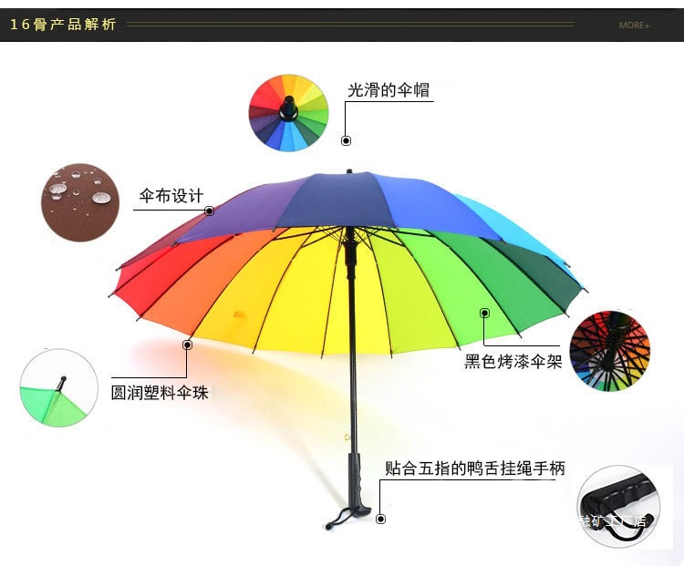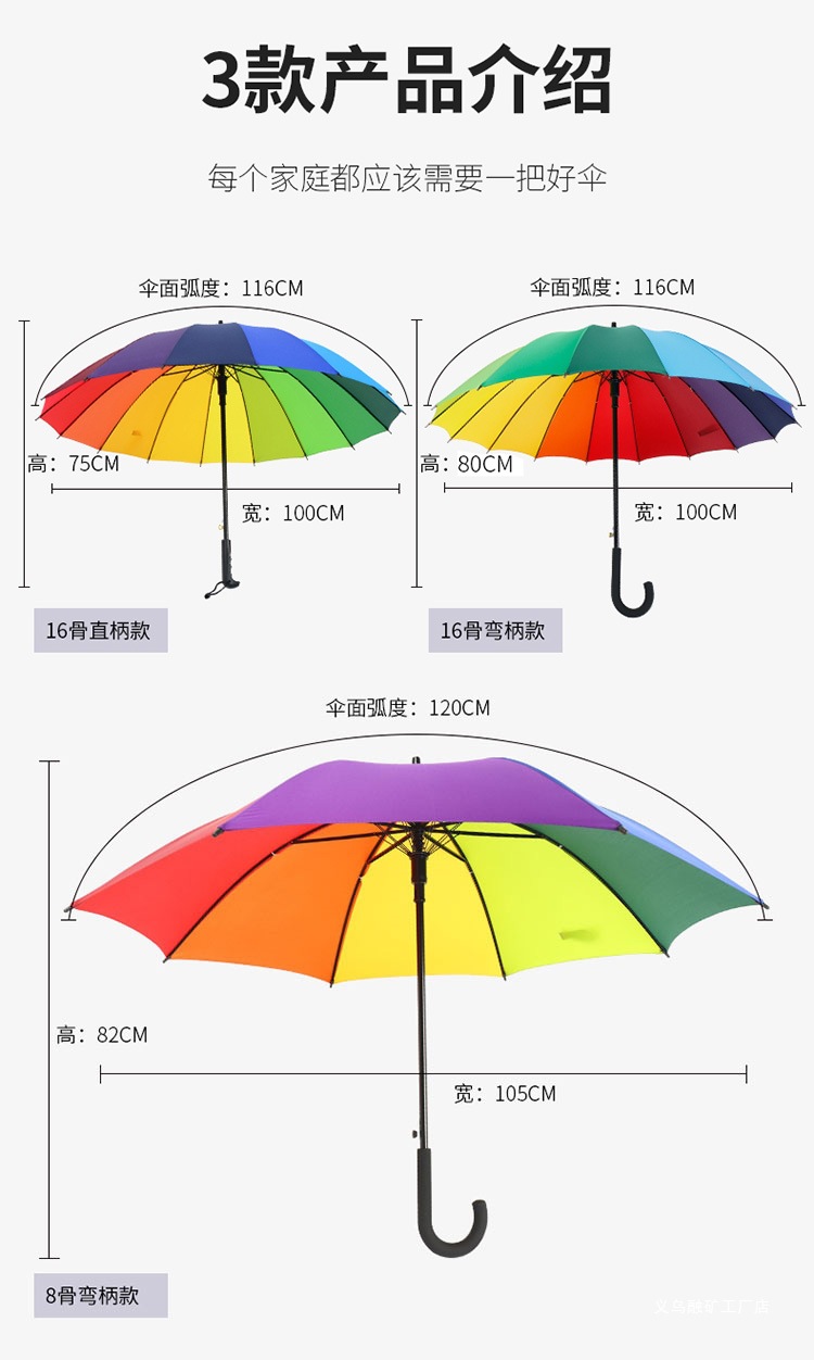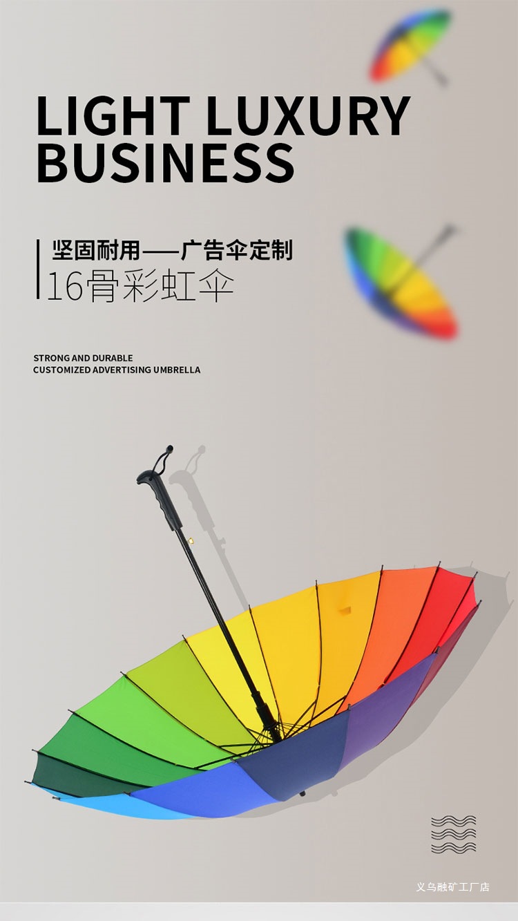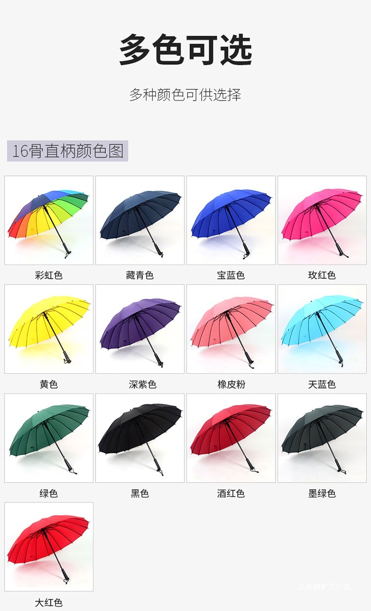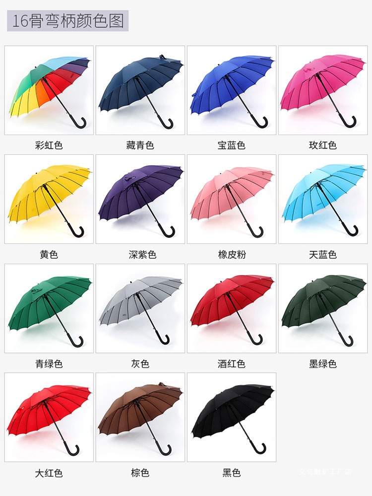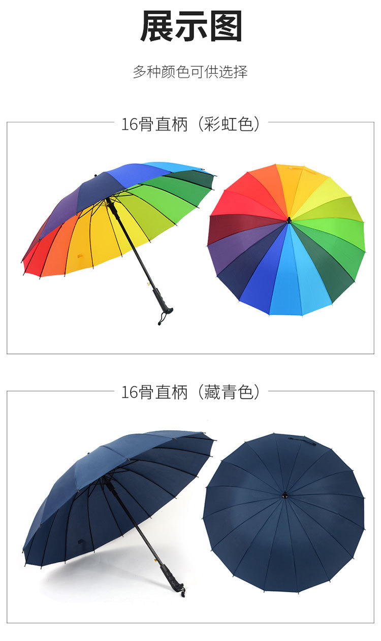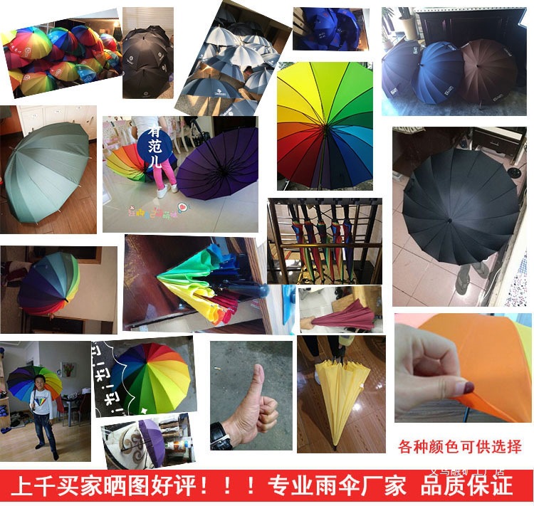 16 뼈 일반 색상 무지개 우산 긴 손잡이 스트레이트 로드 우산 방풍 우산 써니 우산 비즈니스 우산 맞춤형 광고 우산스토어 가기