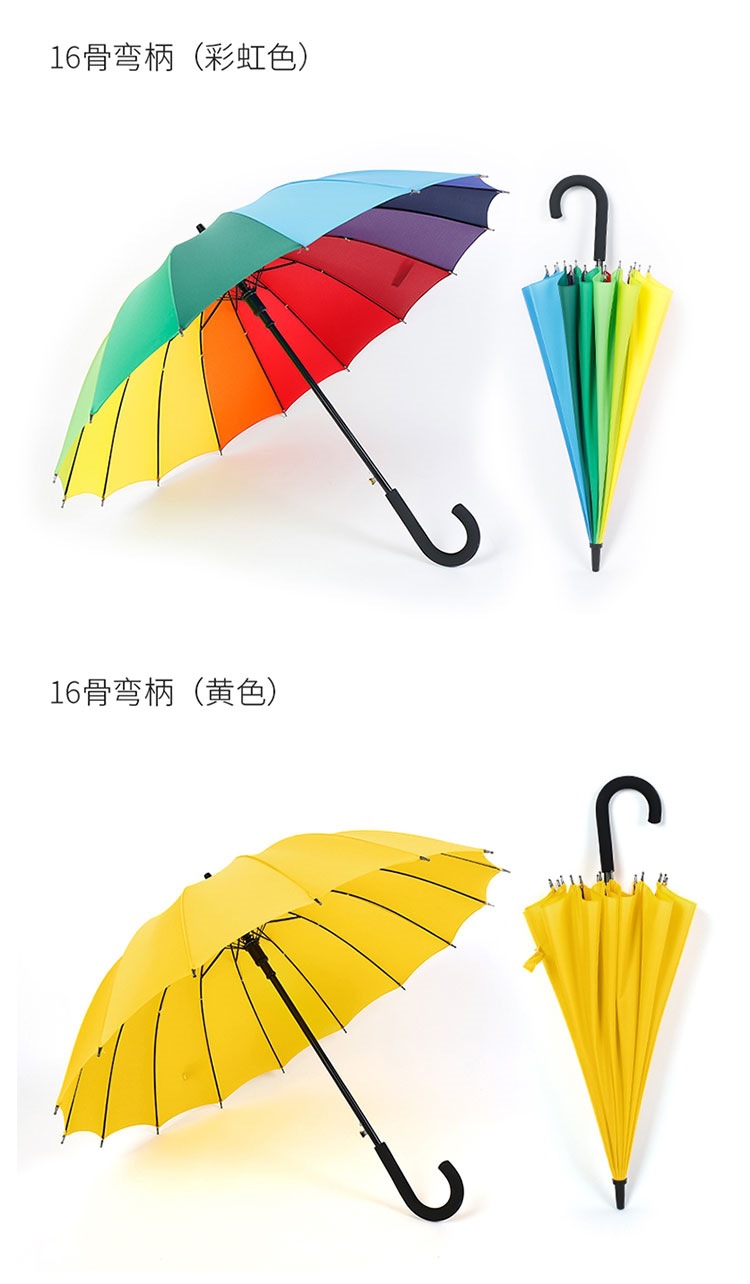 16 뼈 일반 색상 무지개 우산 긴 손잡이 스트레이트 로드 우산 방풍 우산 써니 우산 비즈니스 우산 맞춤형 광고 우산