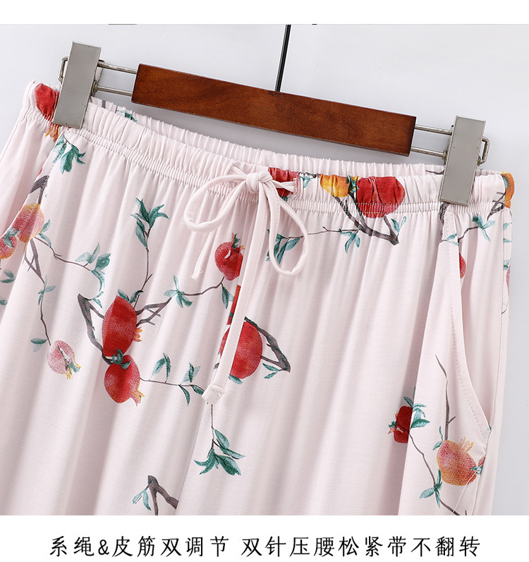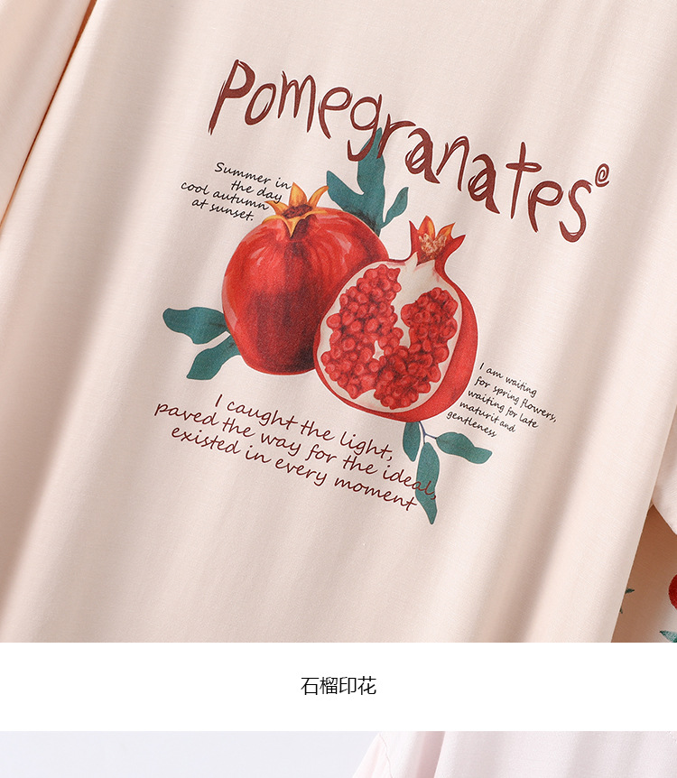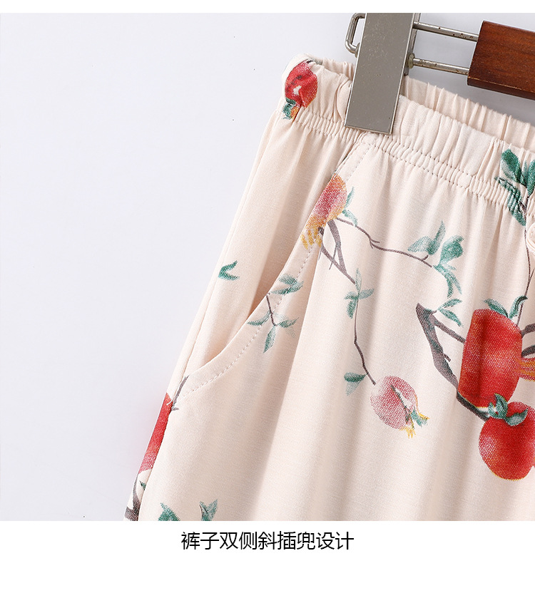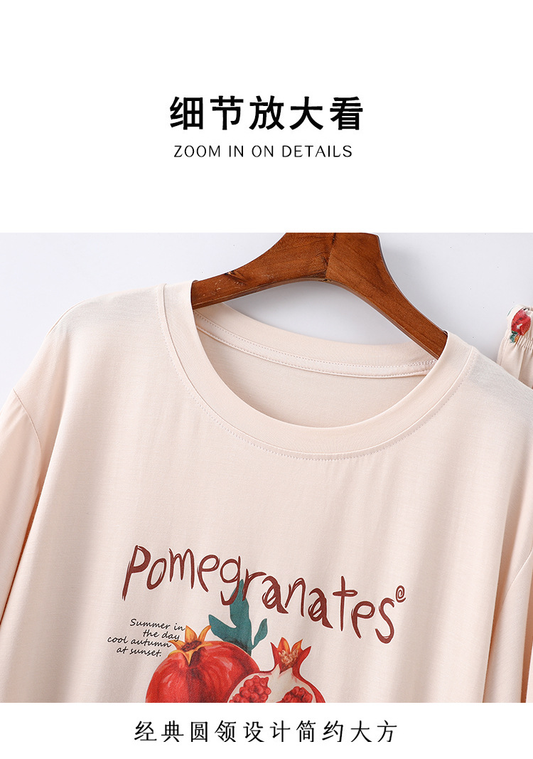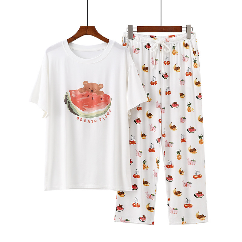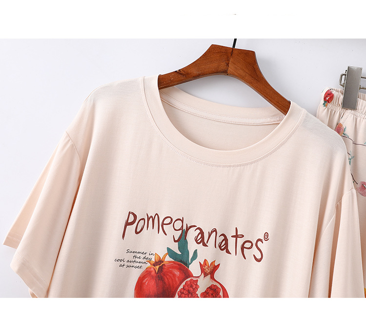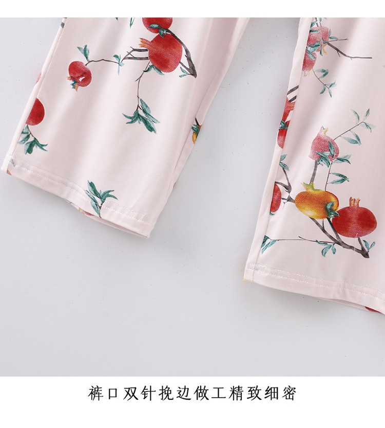 여성용 모달 잠옷 여름 반팔 8 점 바지 만화 석류 프린트 홈웨어 얇은 스트레치 슈트스토어 가기
