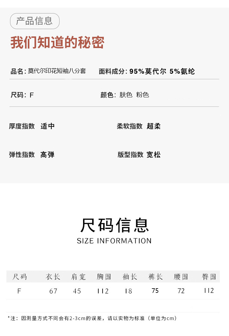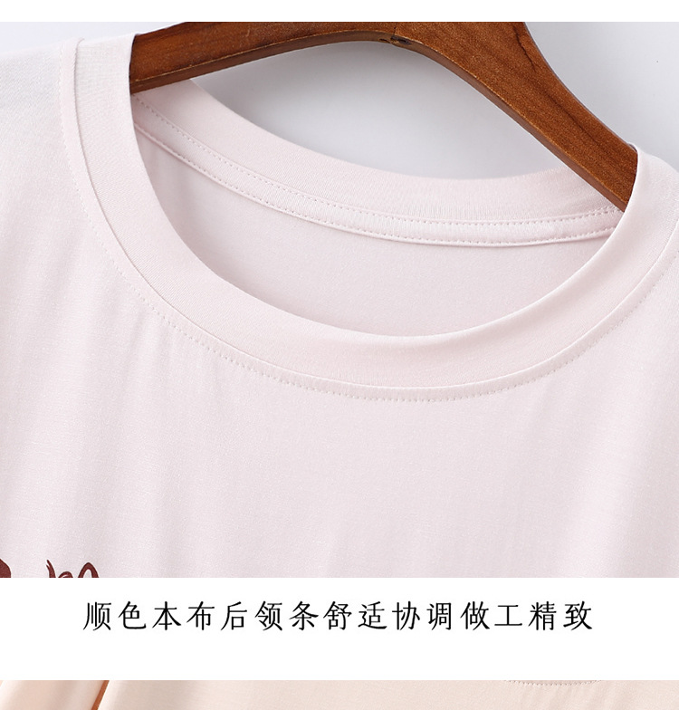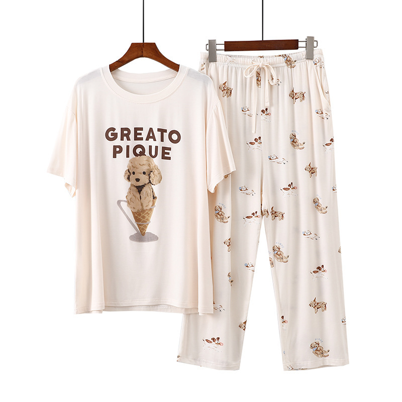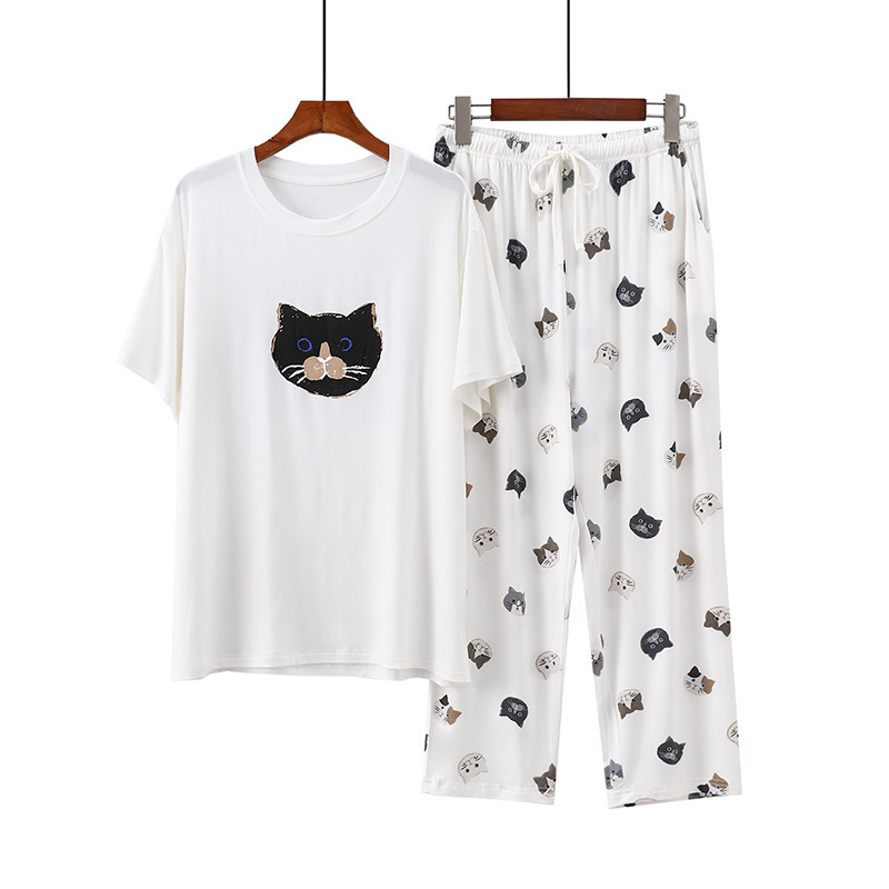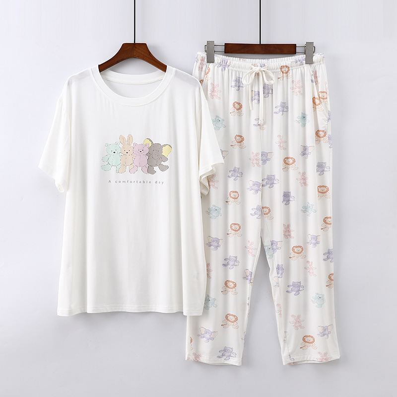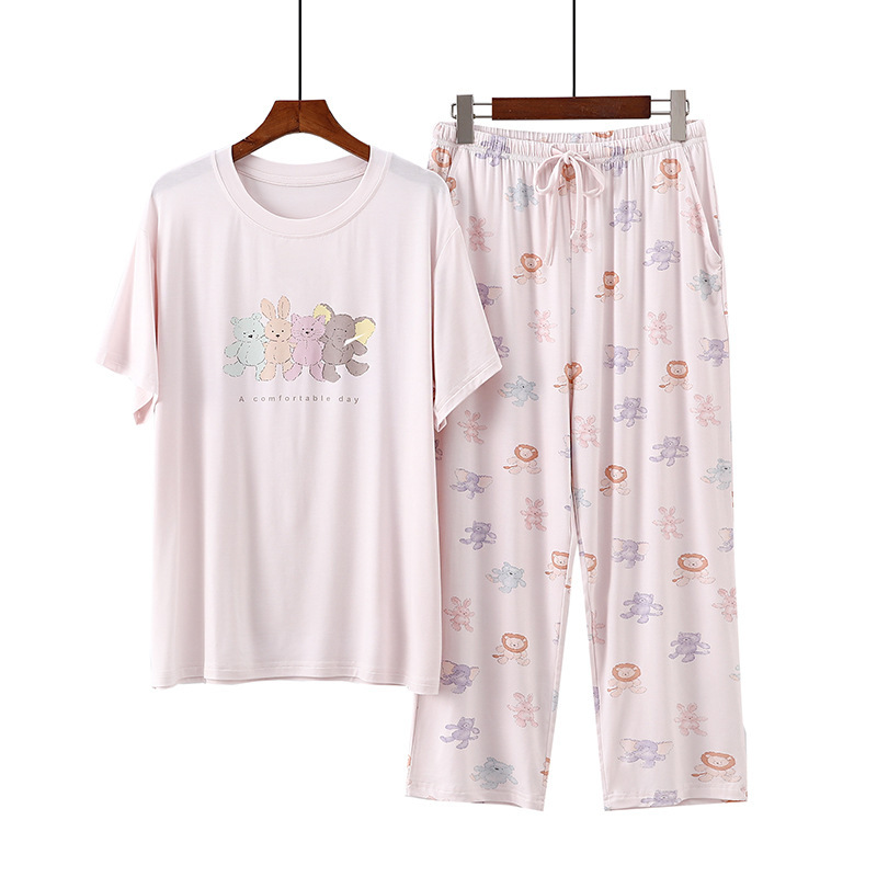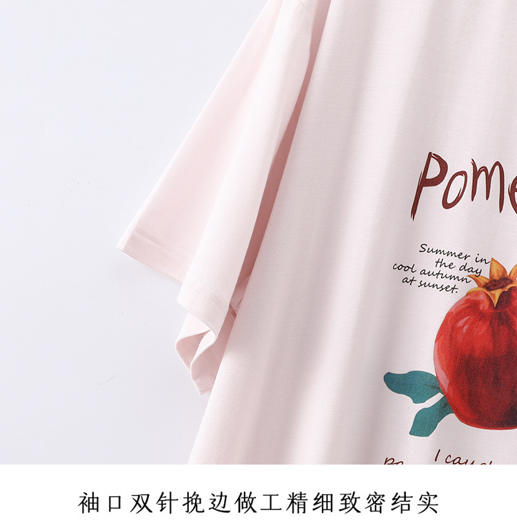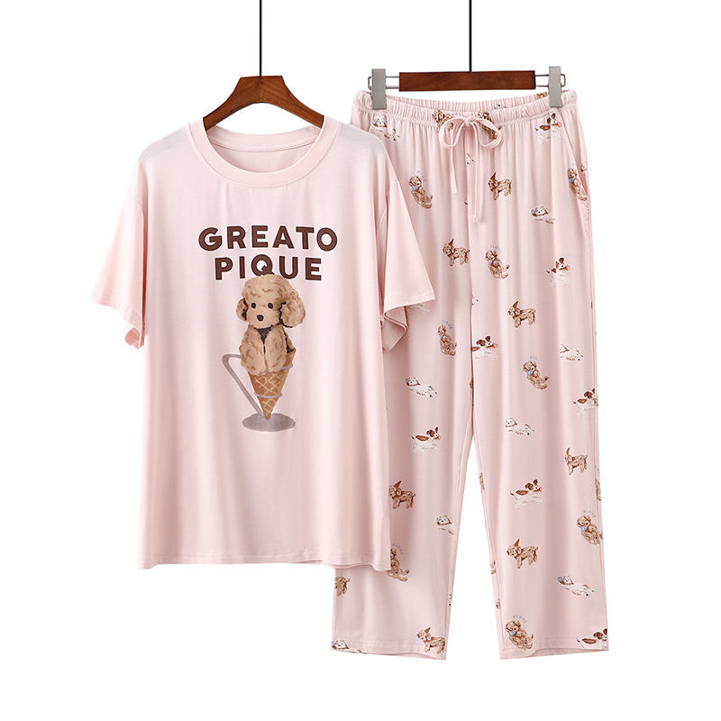 여성용 모달 잠옷 여름 반팔 8 점 바지 만화 석류 프린트 홈웨어 얇은 스트레치 슈트스토어 가기