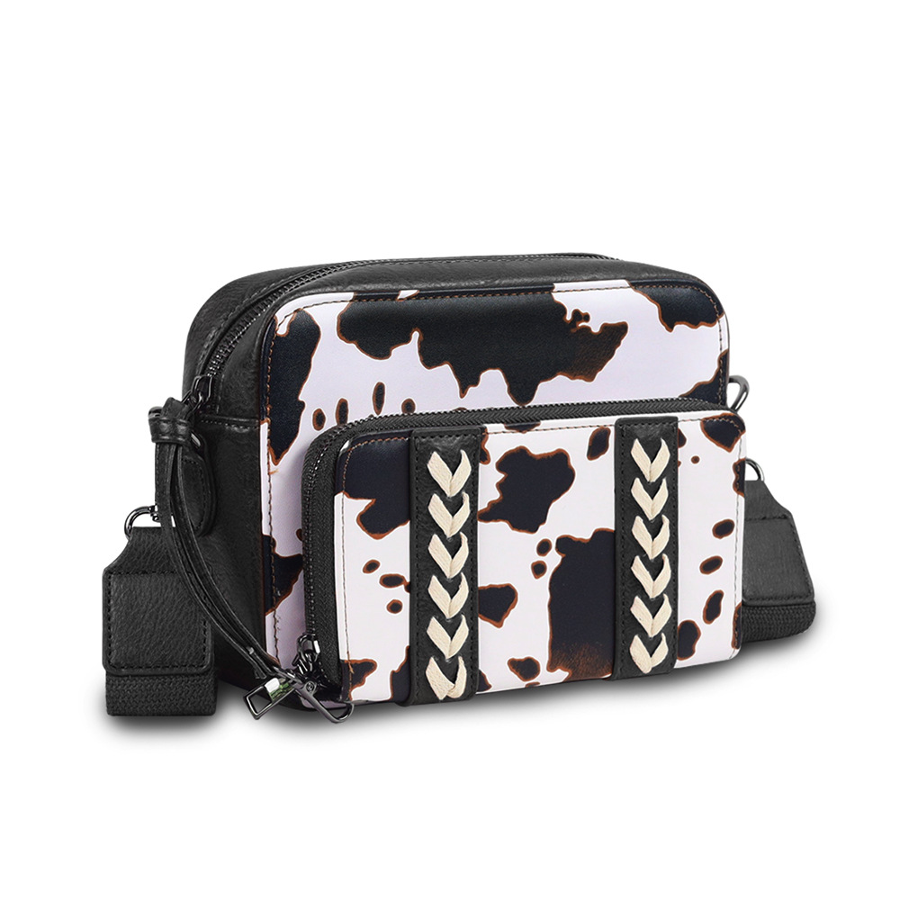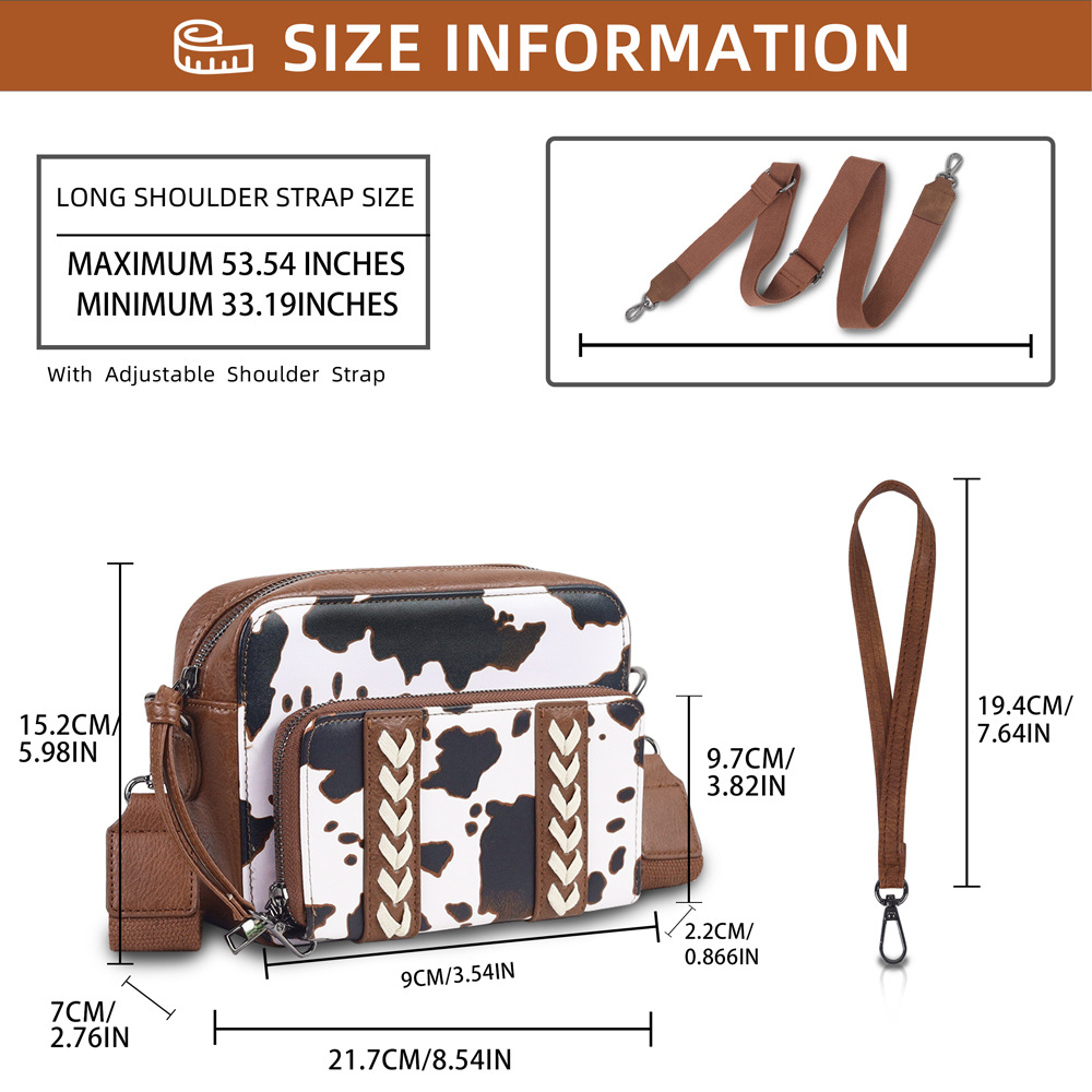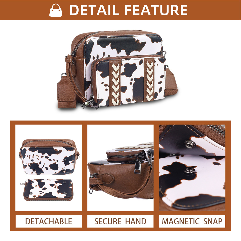재고 있음, 해외 직구 여성용 크로스백, 소가죽 무늬 이중 가방, 숄더백, 탈부착 가능, 자석 방지, 도난 방지, 카드 지갑