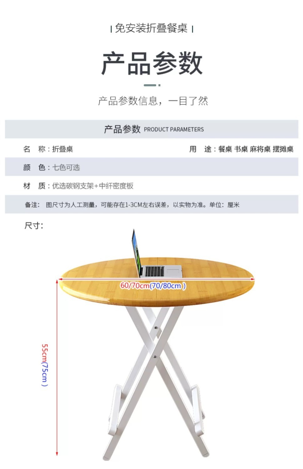 접이식 테이블 라운드 테이블 식탁 가정용 야외 접이식 테이블과 의자 휴대용 작은 테이블 간단한 식탁 대여 룸스토어 가기