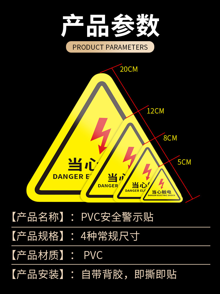 감전주의 경고 스티커 PVC 삼각형 안전 표시 기계 장비 전기 위험 안전 경고 스티커스토어 가기