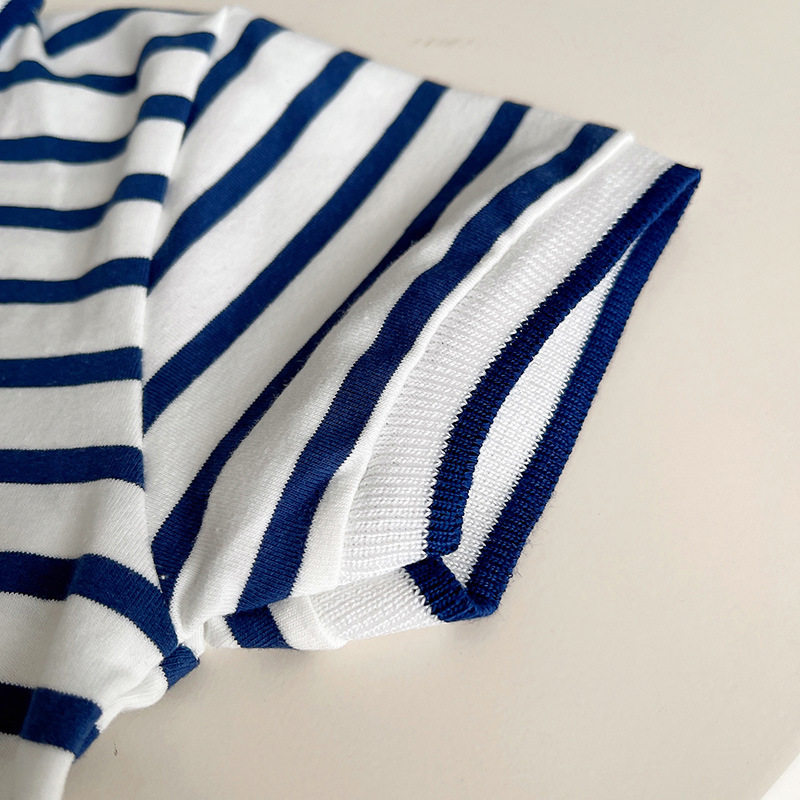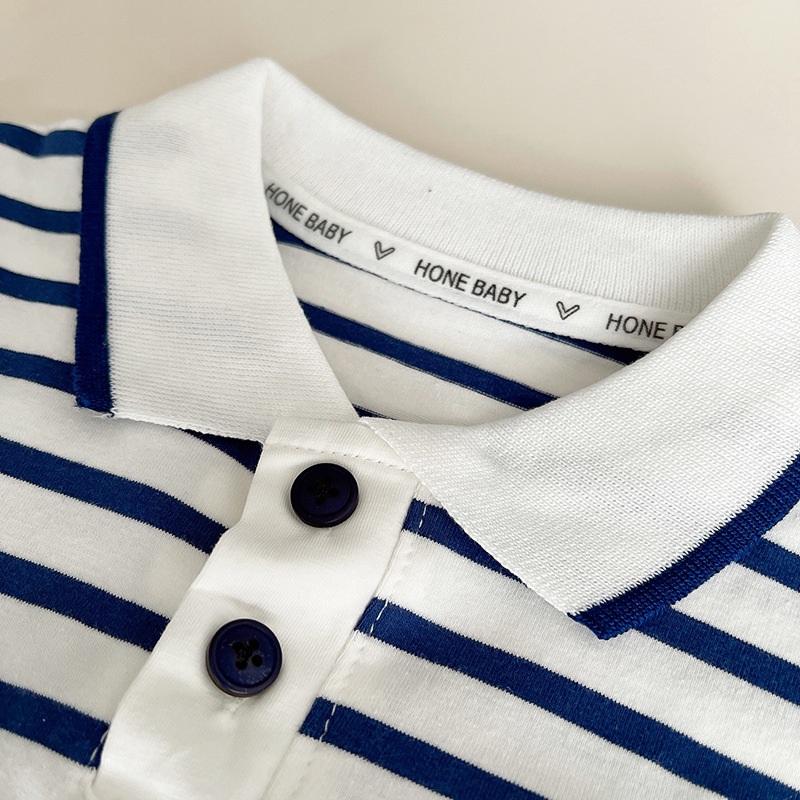 소년 여름 새 세트 옷깃 줄무늬 반팔 어린이 폴로 셔츠 탑 캐주얼 올 매치 반바지 투피스 세트스토어 가기