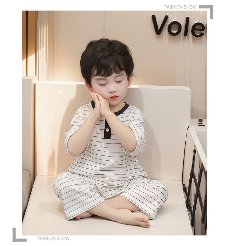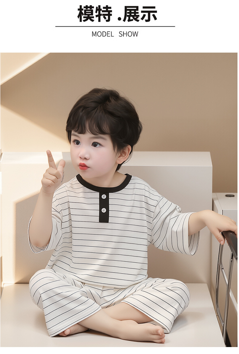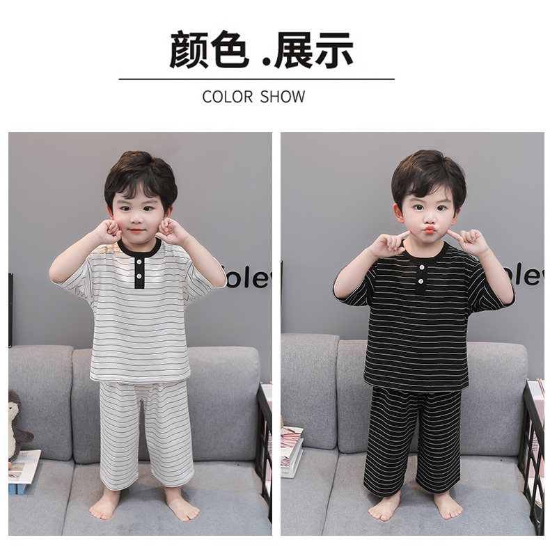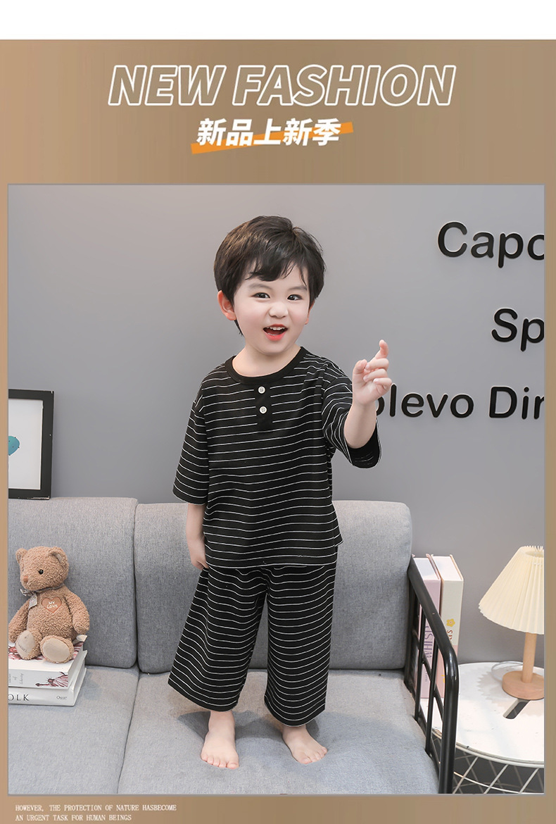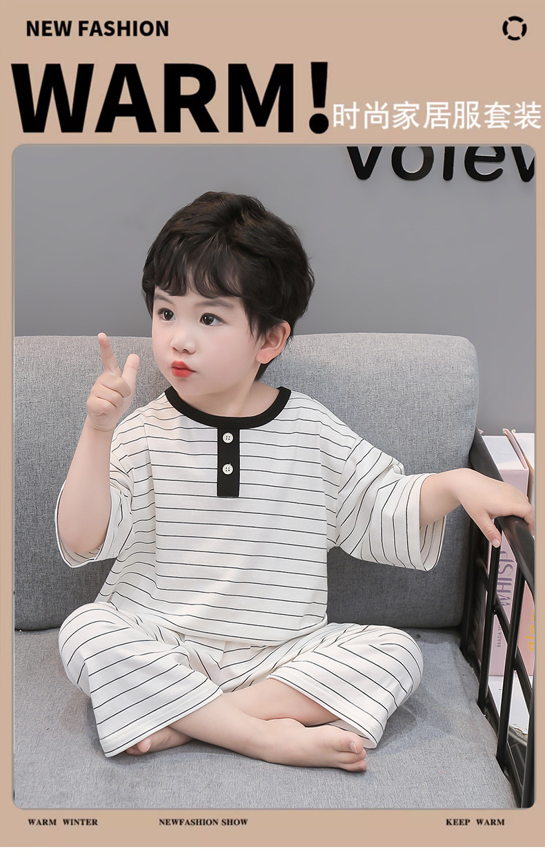 아동 잠옷 여름 얇은 순면 소년 에어컨 옷 아기 소년 7부 소매 줄무늬 양복 소년 가정복스토어 가기