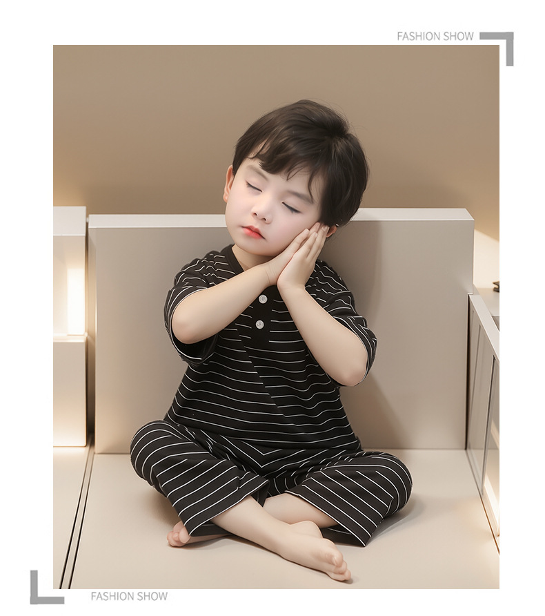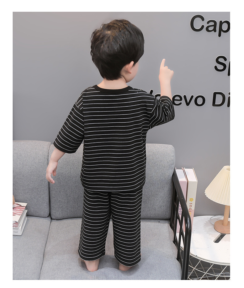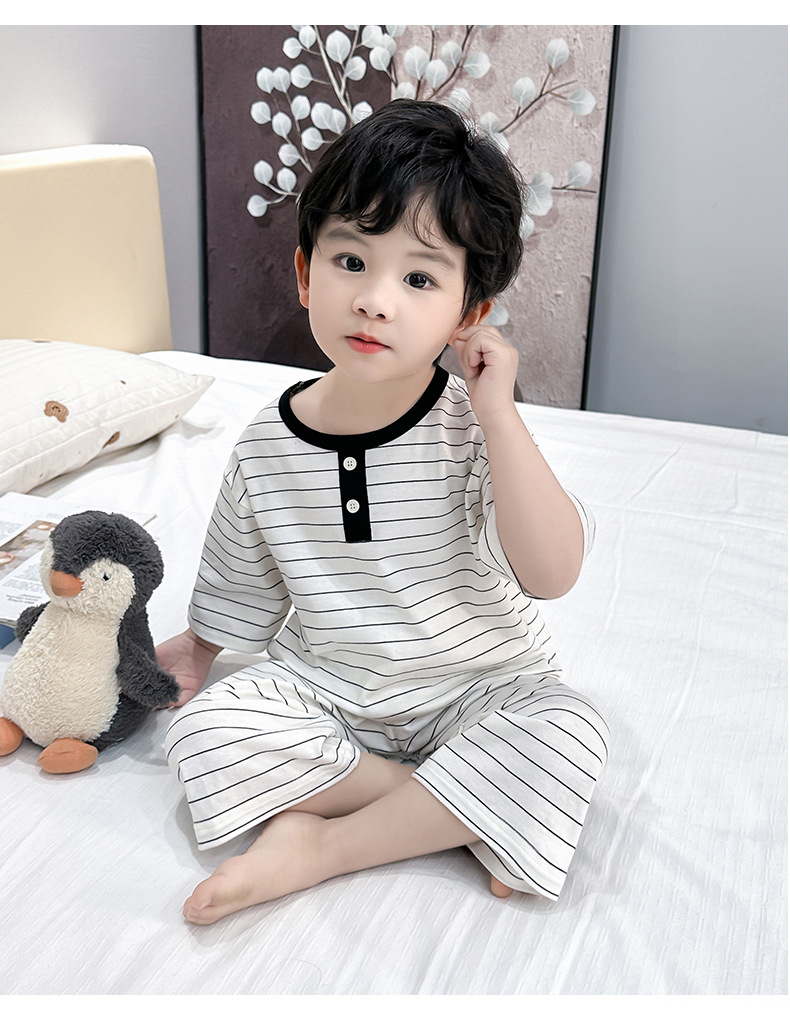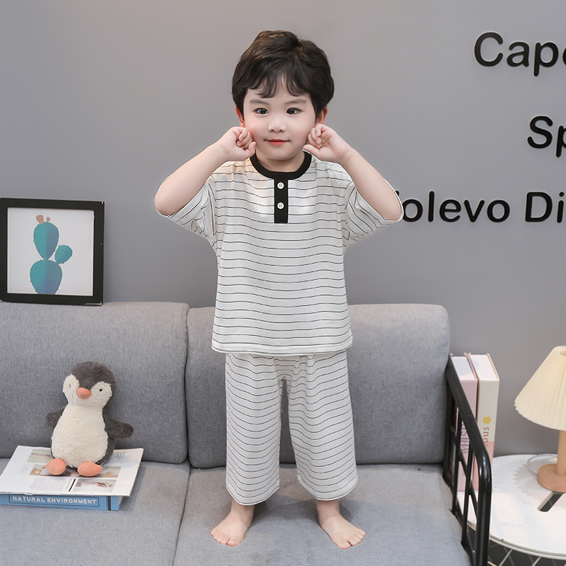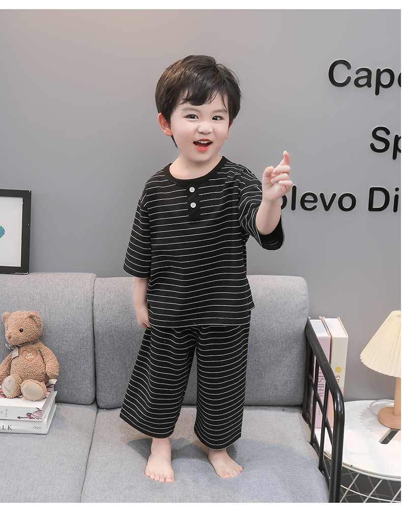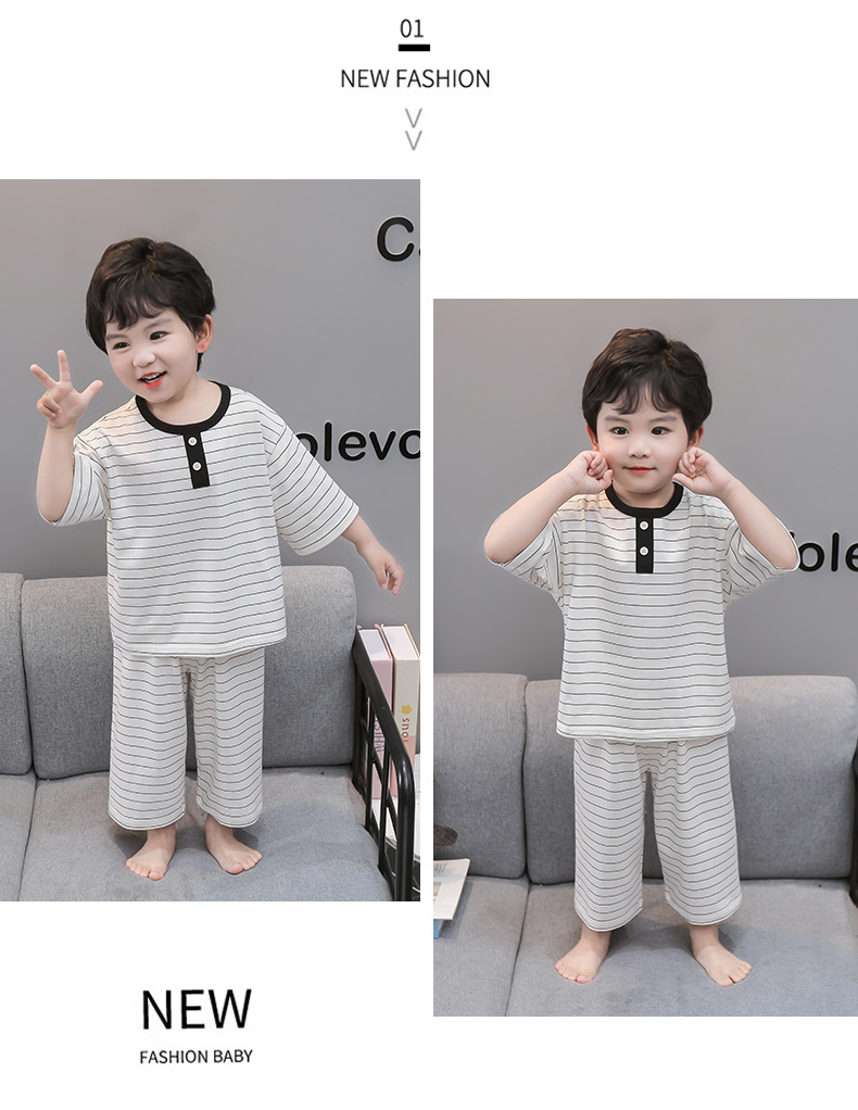 아동 잠옷 여름 얇은 순면 소년 에어컨 옷 아기 소년 7부 소매 줄무늬 양복 소년 가정복스토어 가기