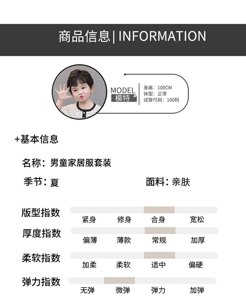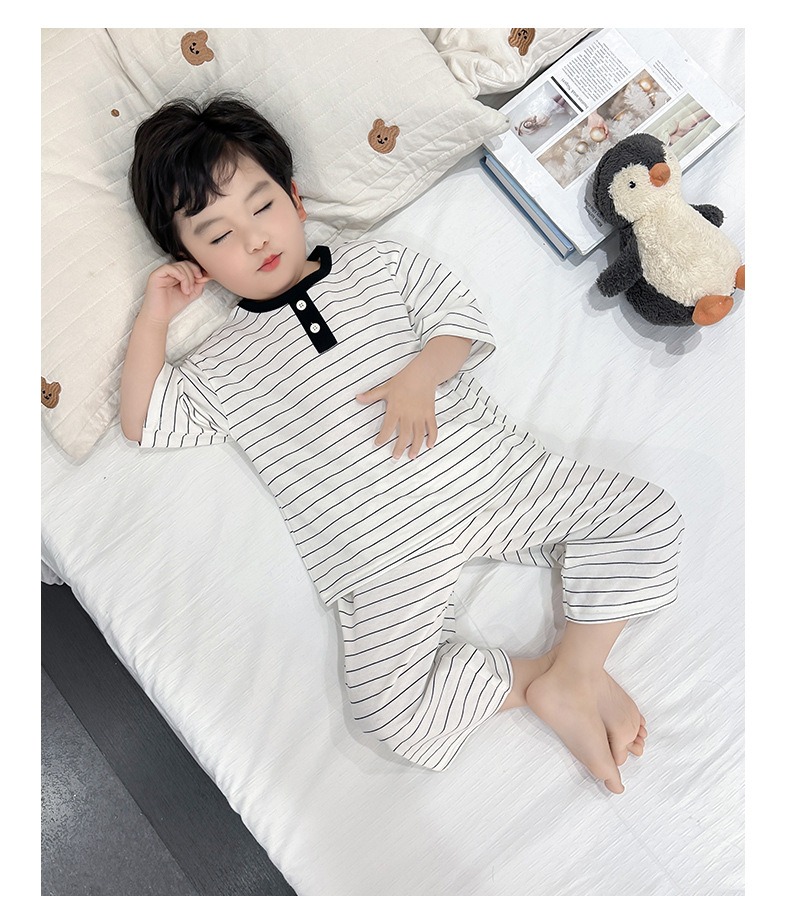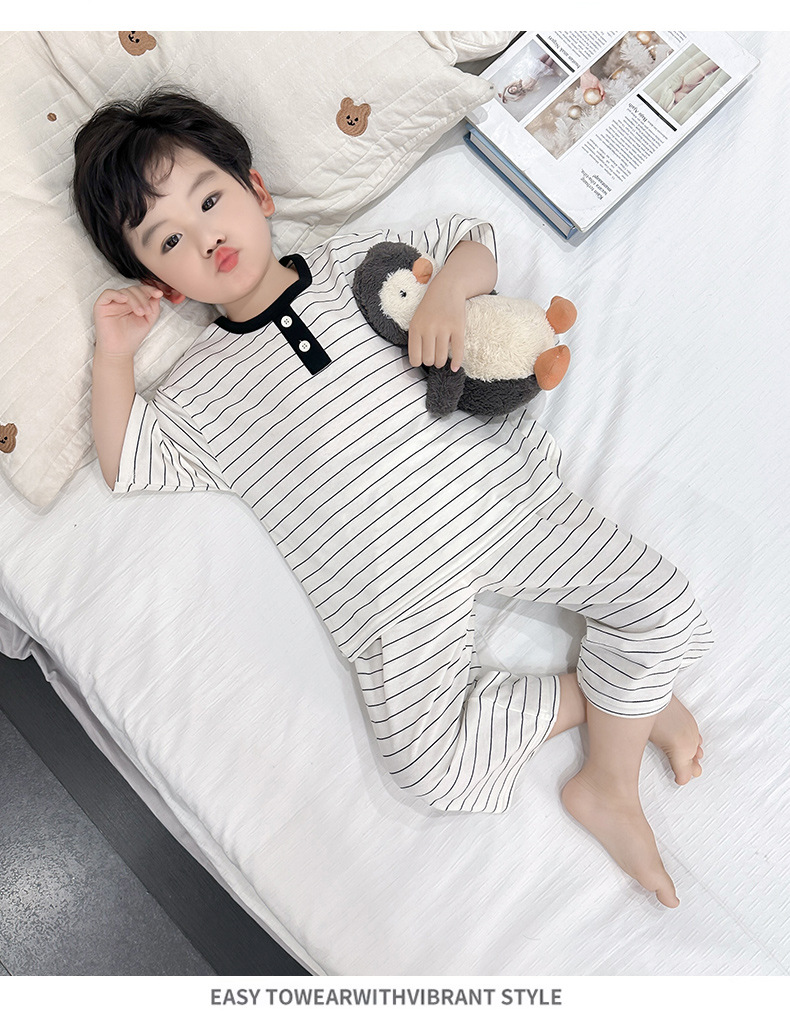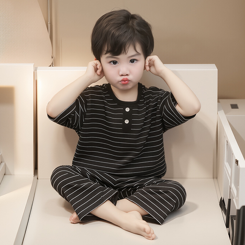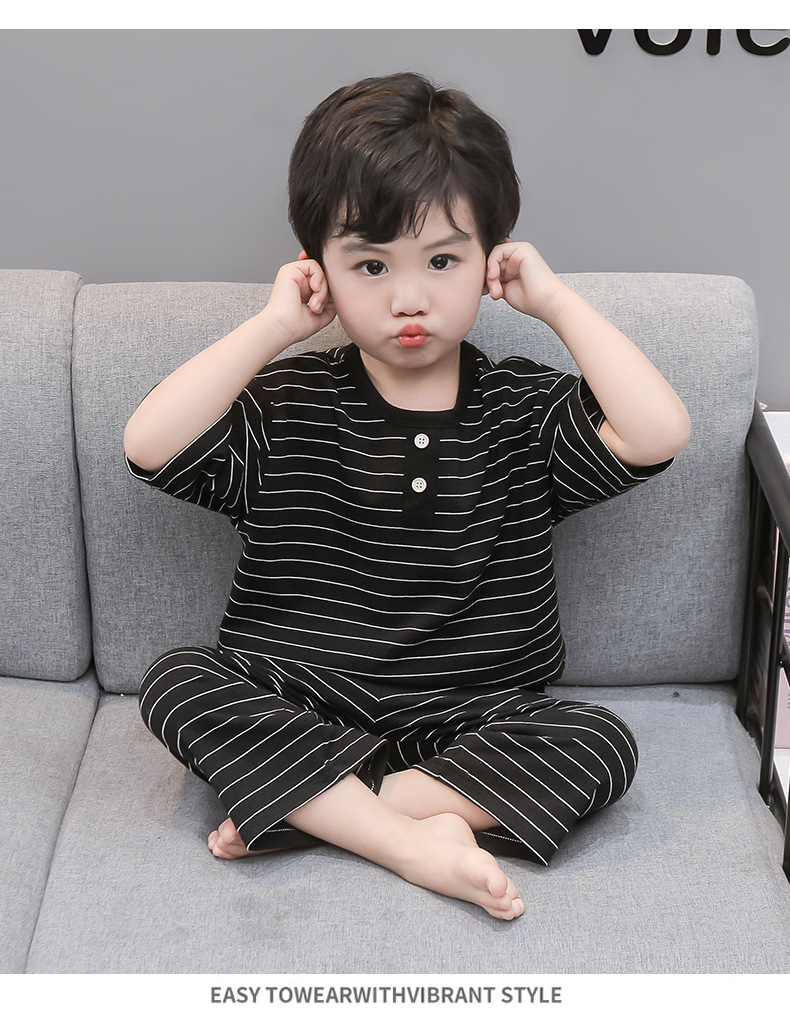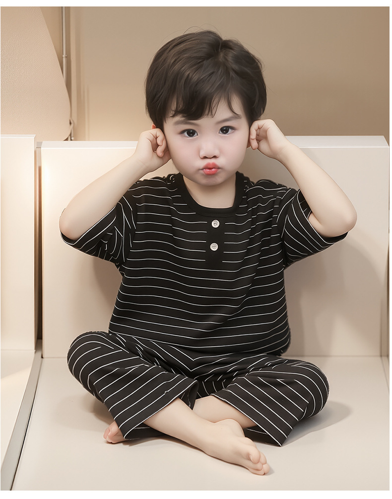 아동 잠옷 여름 얇은 순면 소년 에어컨 옷 아기 소년 7부 소매 줄무늬 양복 소년 가정복스토어 가기