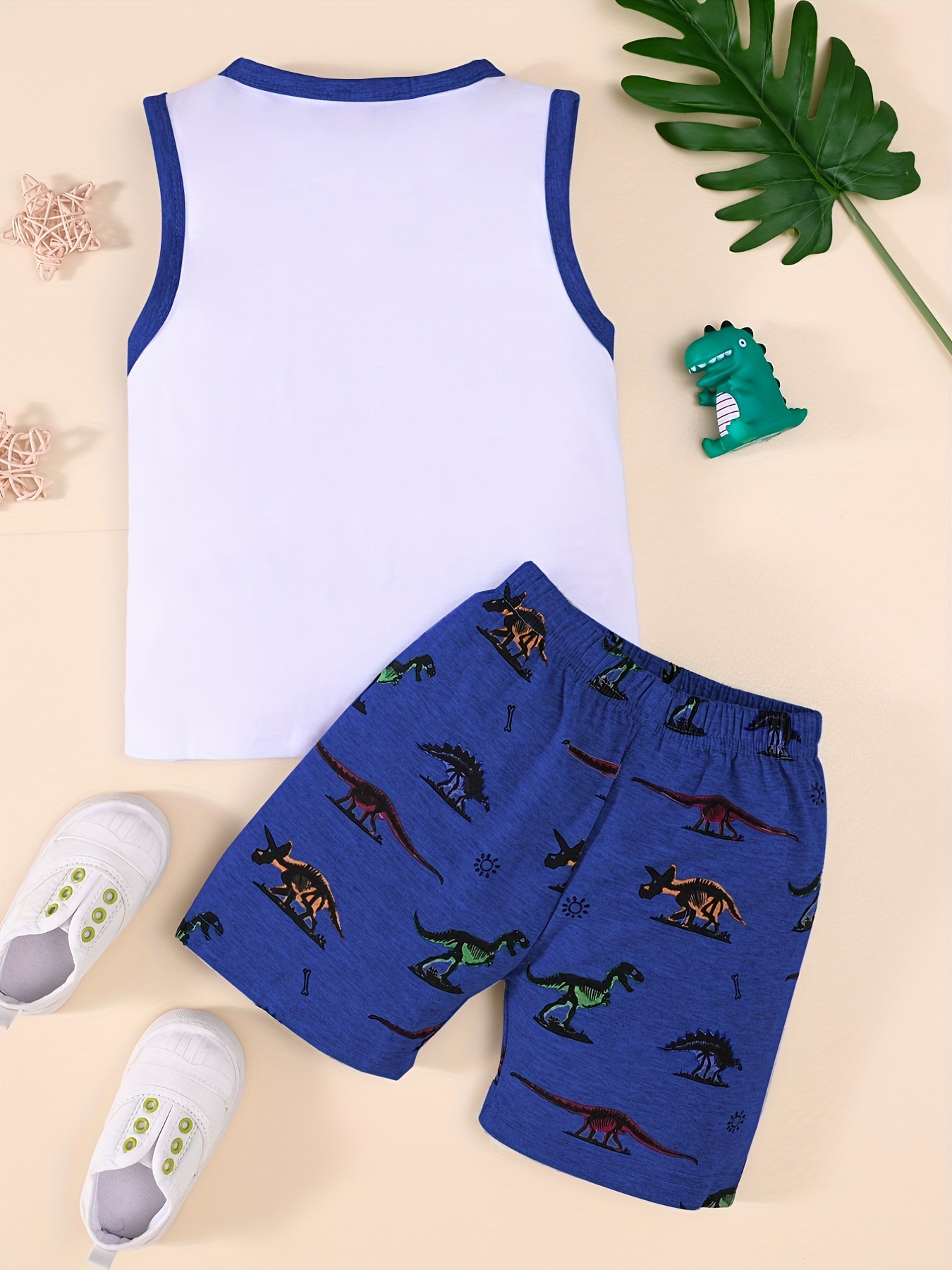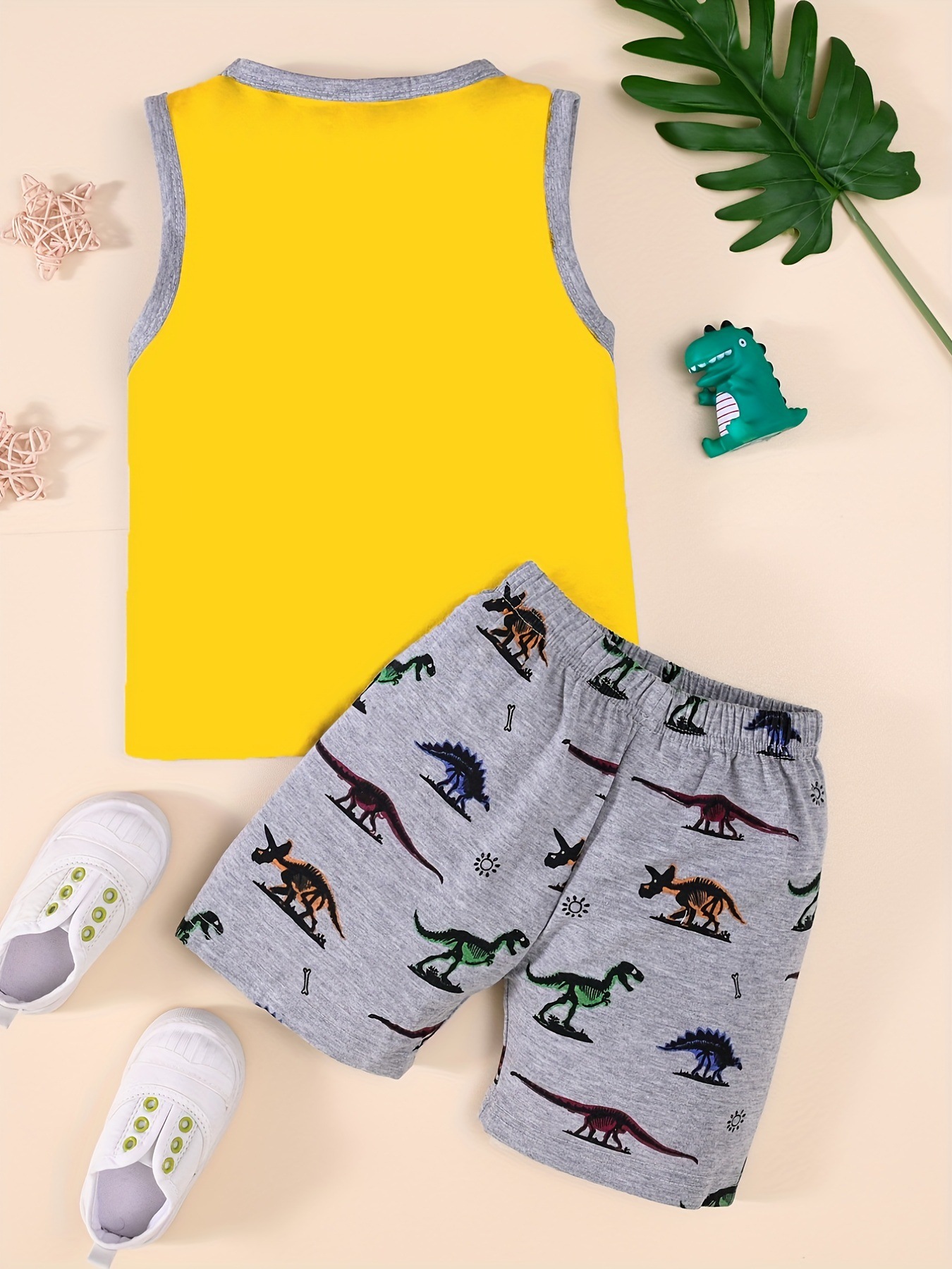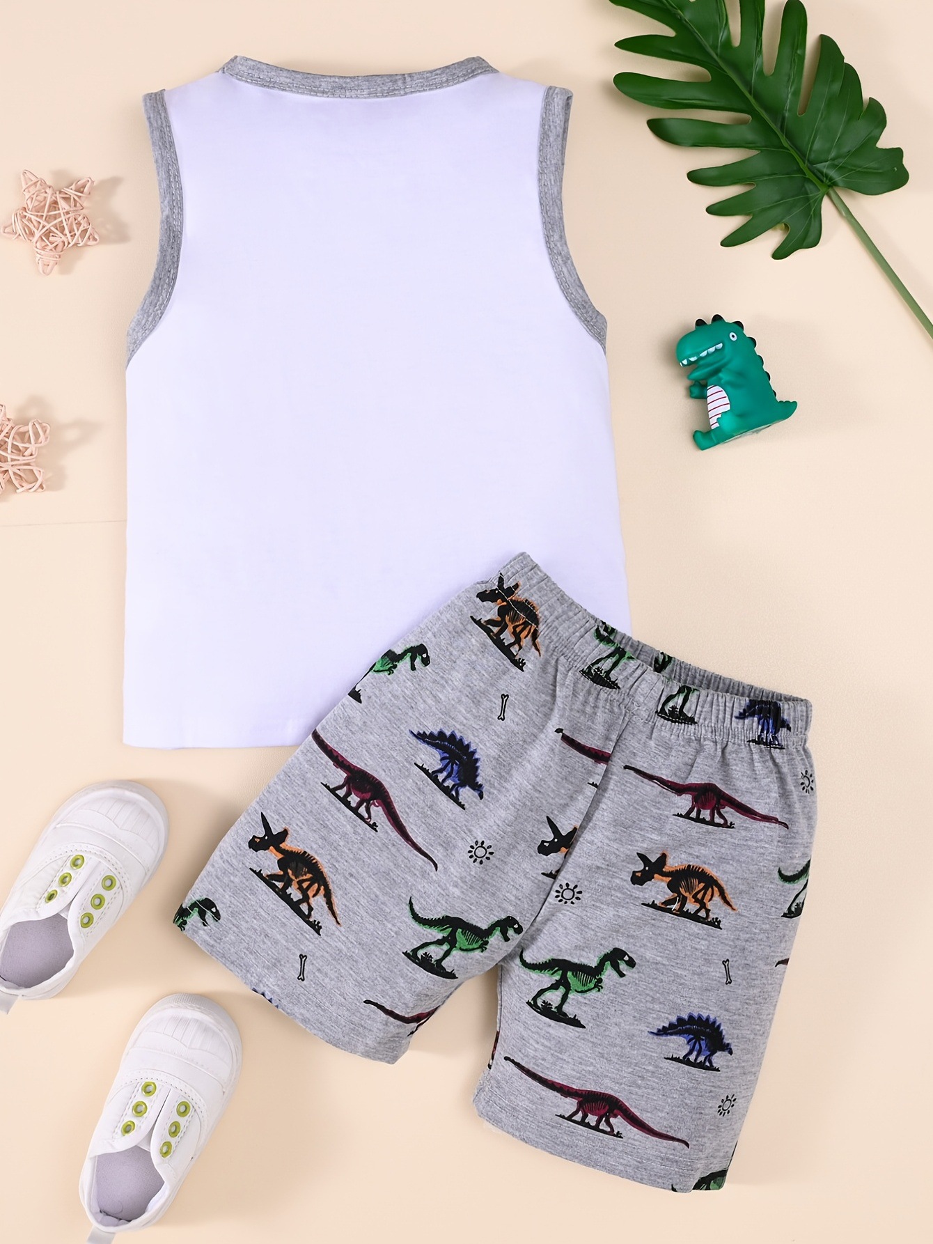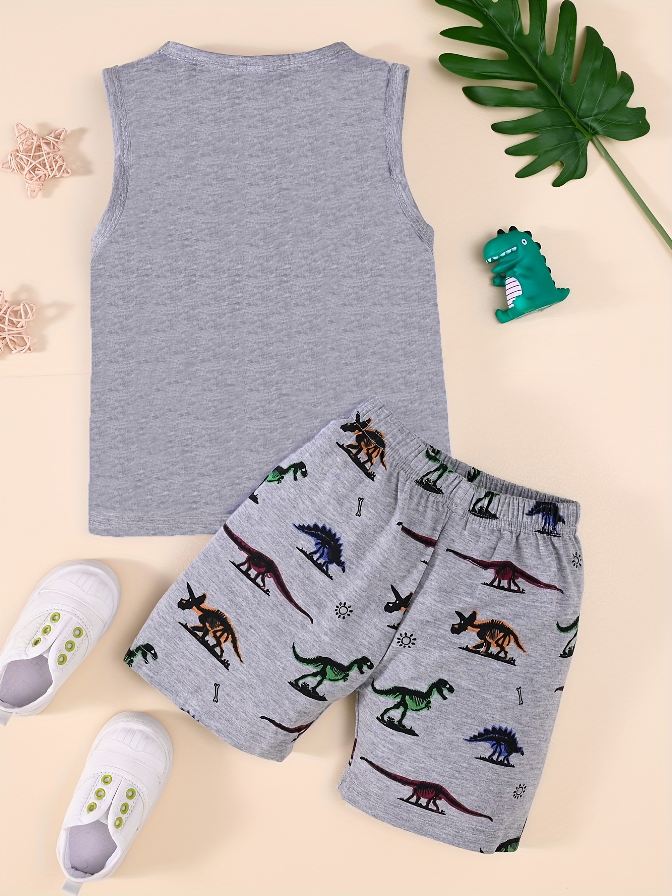2025 봄 여름 트렌드 패션 소년 민소매 조끼 동물 다채로운 공룡 프린트 반바지 투피스 세트스토어 가기