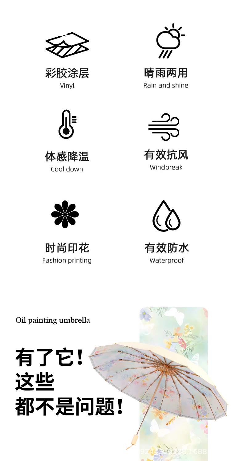 • Qianxia Weiyang [16본 대형 우산 표면 컬러 글루 자외선 차단제]