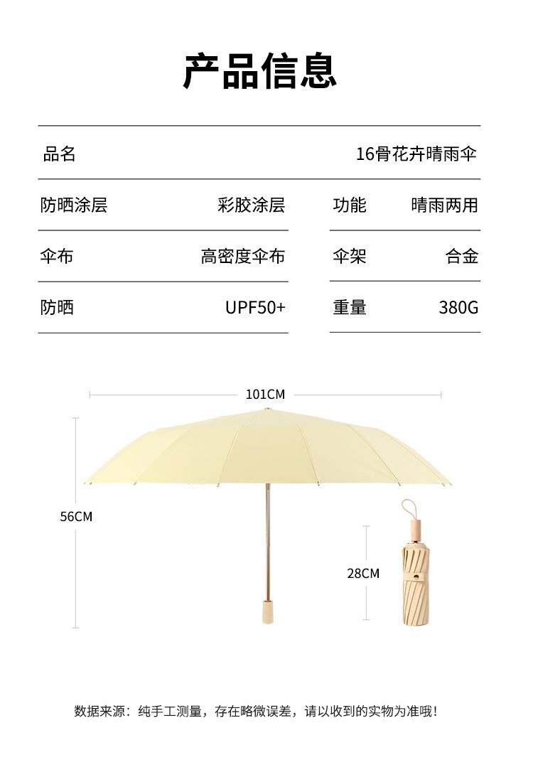 알루미늄 합금 3단 32본 컬러 고무 코팅 우산, 자외선 차단, 접이식, 햇빛 가리개, 비가 오나 눈이 오나 사용 가능한 여성용 양산스토어 가기