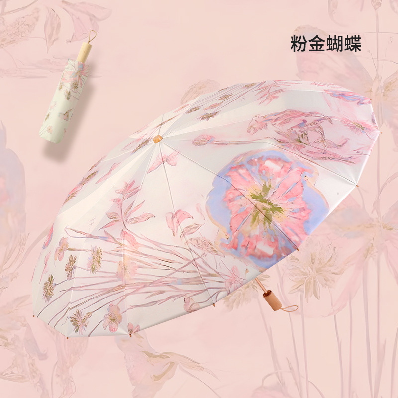 • 핑크 골드 나비 [16본 대형 우산 표면 컬러 글루 자외선 차단제]