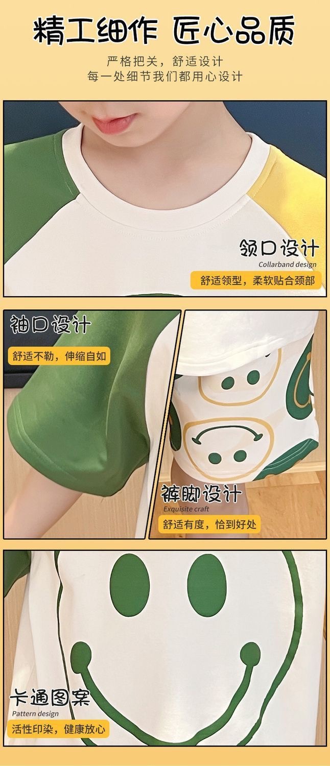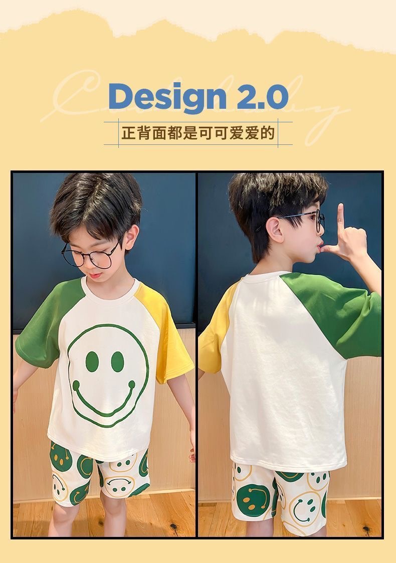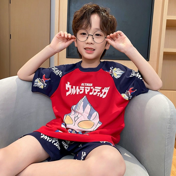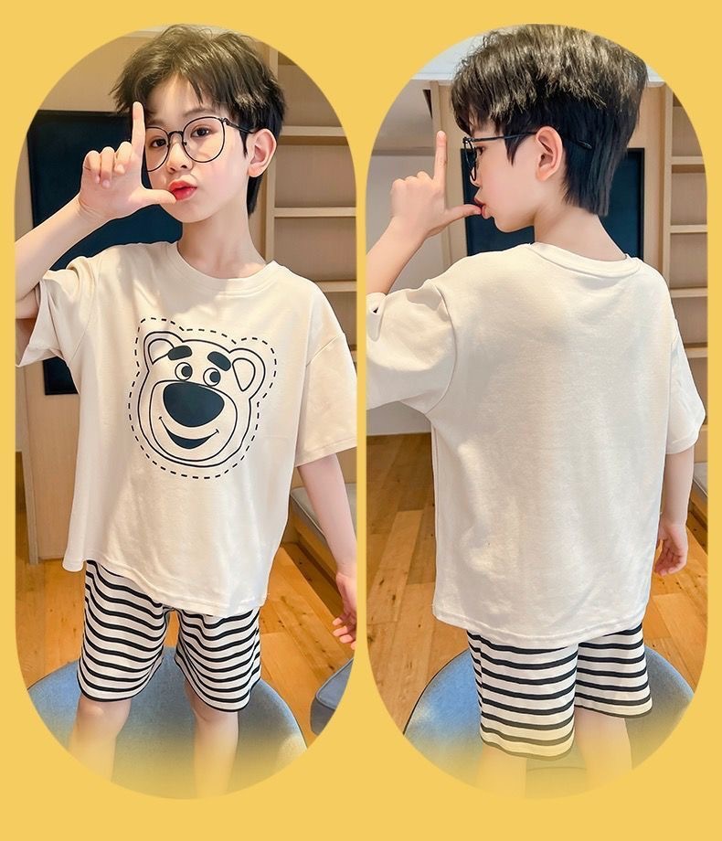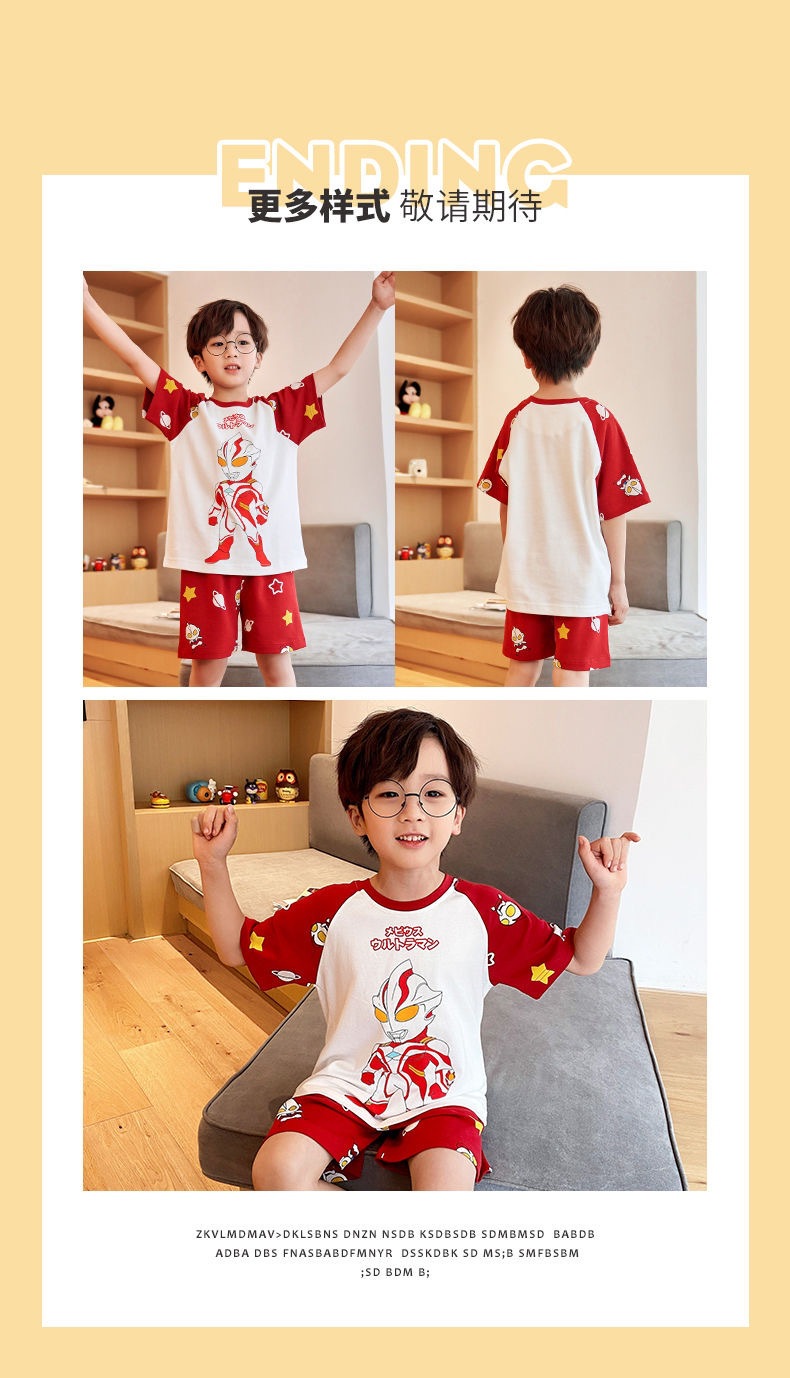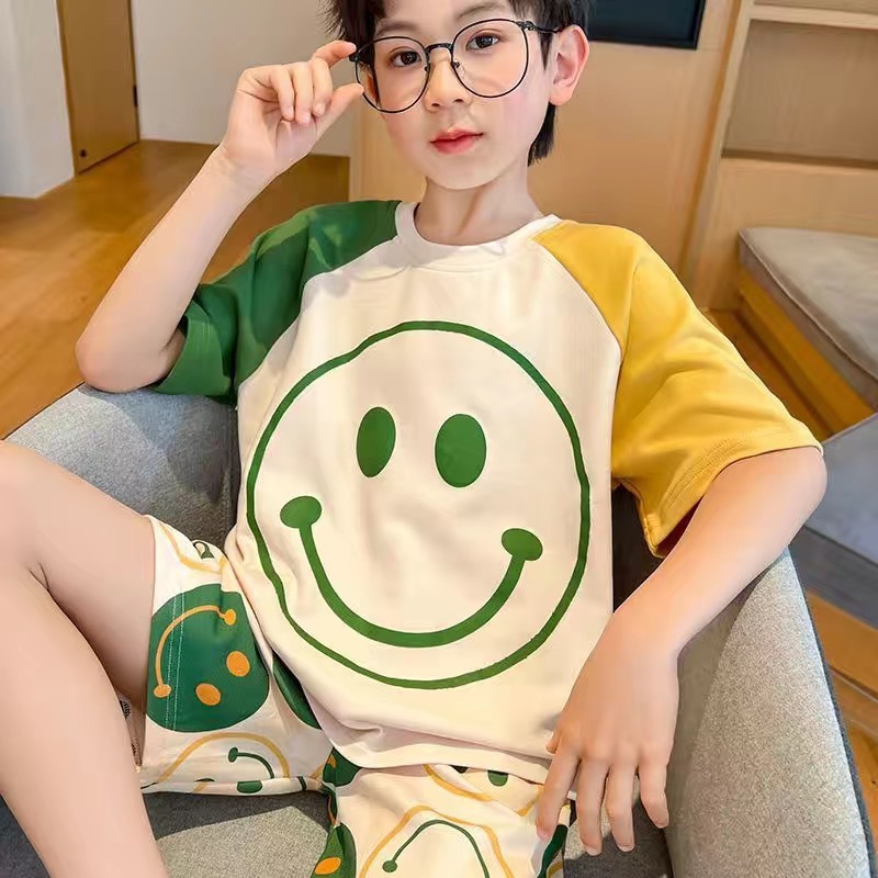2025 새로운 어린이 잠옷 여름 모조 면화 반팔 얇은 양복 소년 소년 큰 어린이 청소년 가정 의류스토어 가기