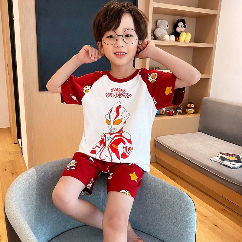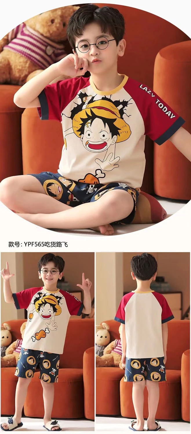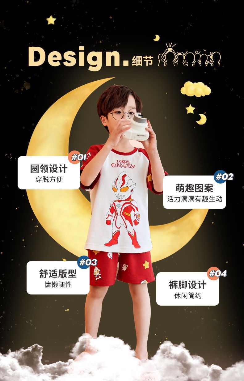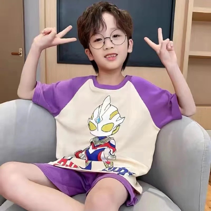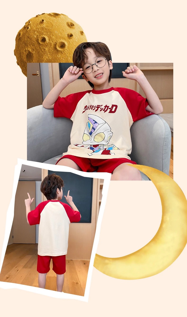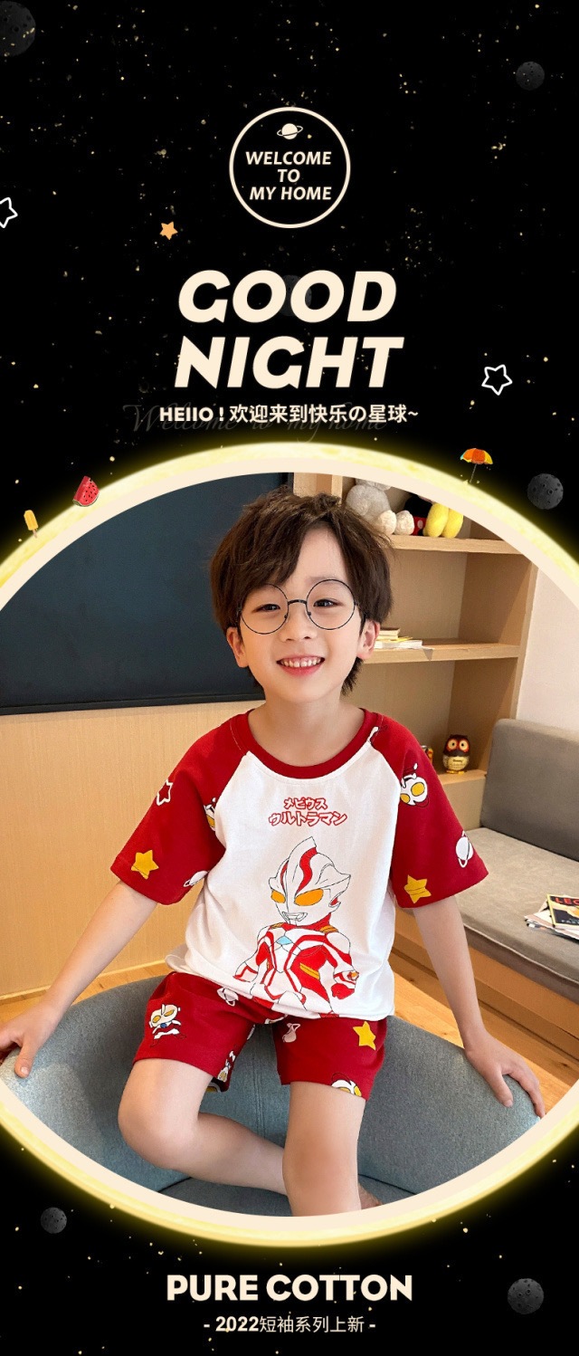 2025 새로운 어린이 잠옷 여름 모조 면화 반팔 얇은 양복 소년 소년 큰 어린이 청소년 가정 의류스토어 가기