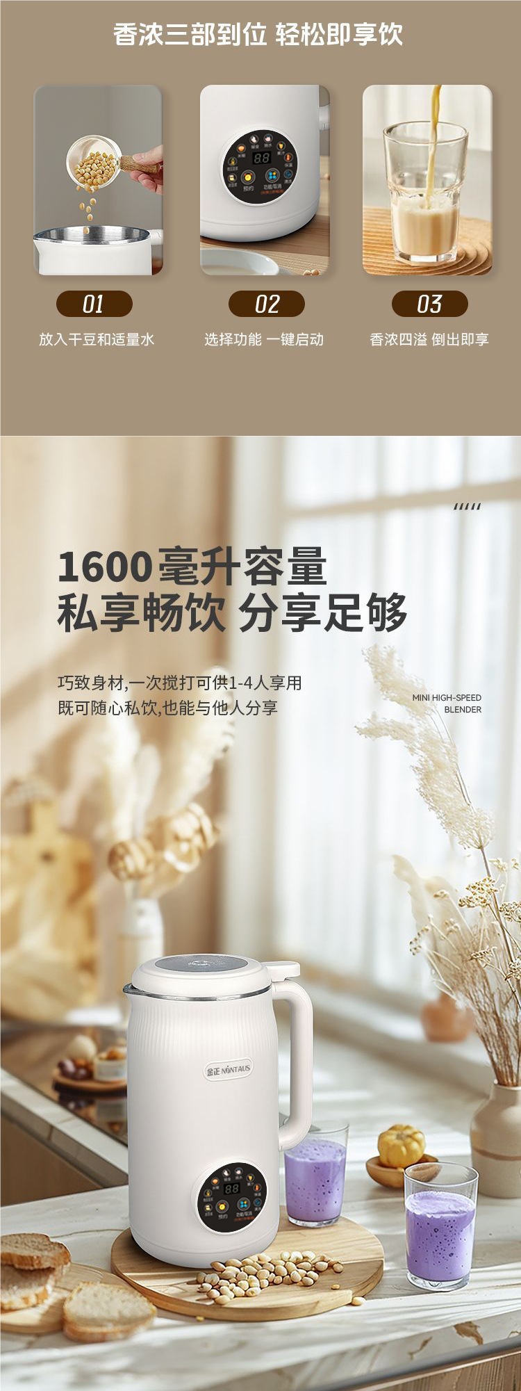 • 1600ML-48 리프나이프 [식품등급 304 내부탱크] 필터링 없이 건조콩을 직접 분쇄