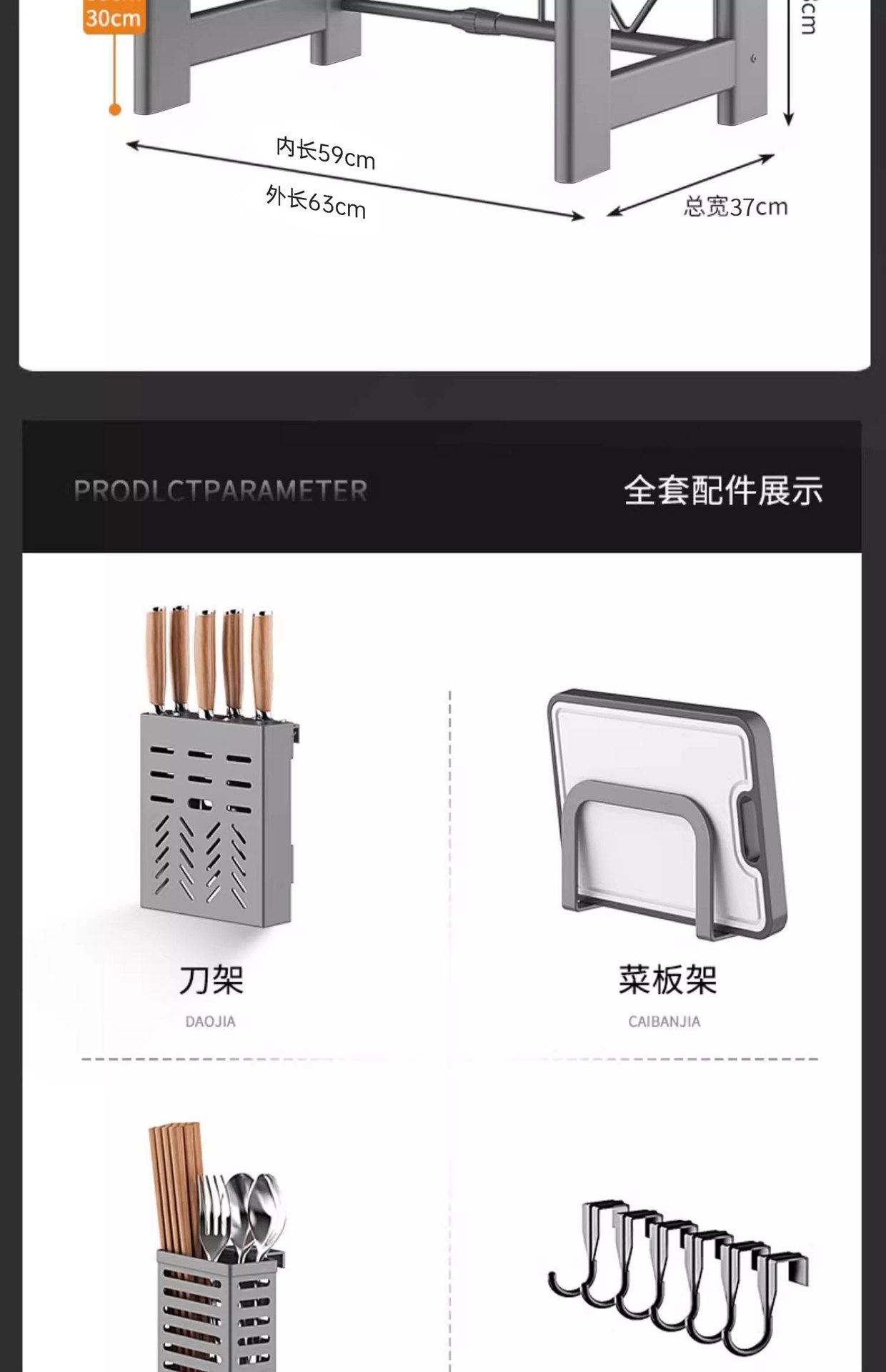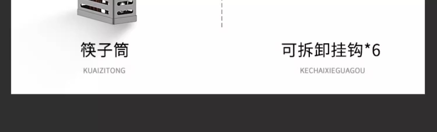 挂件:挂钩、刀架、筷子笼为塑料PP材质