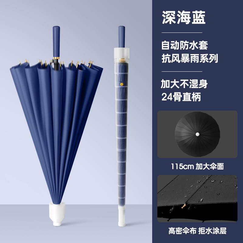 스트레이트 로드 24 뼈 우산 여성의 높은 감각 자동 대형 긴 핸들 대형 우산 햇살과 비오는 이중 사용 도매 남성 비즈니스 로고
