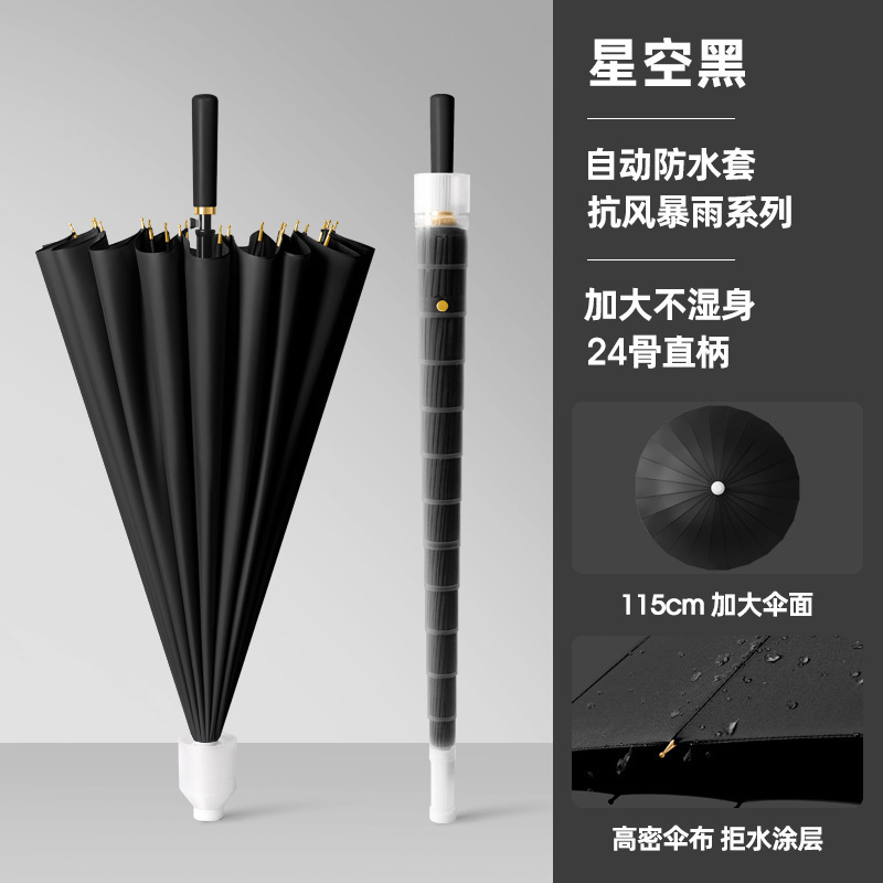 스트레이트 로드 24 뼈 우산 여성의 높은 감각 자동 대형 긴 핸들 대형 우산 햇살과 비오는 이중 사용 도매 남성 비즈니스 로고스토어 가기