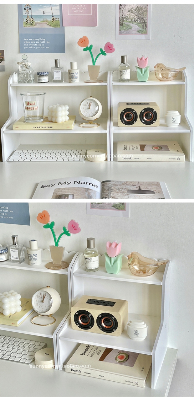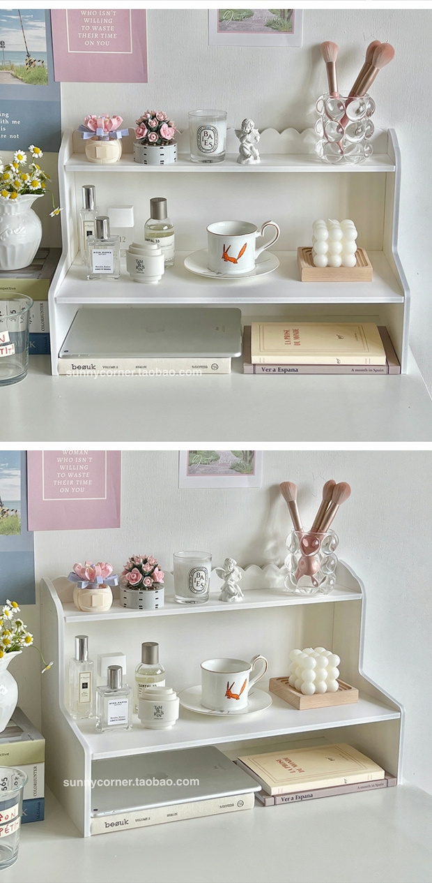 데스크탑 더블 레이어 목재 스토리지 랙 기숙사 침실 책상 컵 화장품 정리 및 스토리지 랙