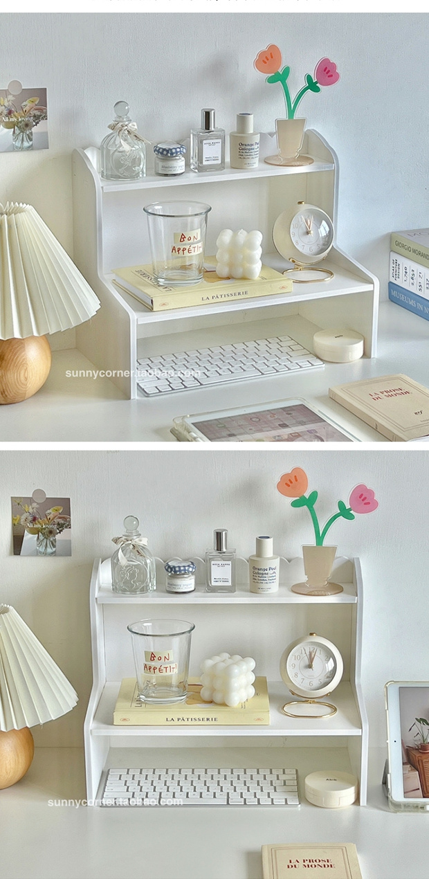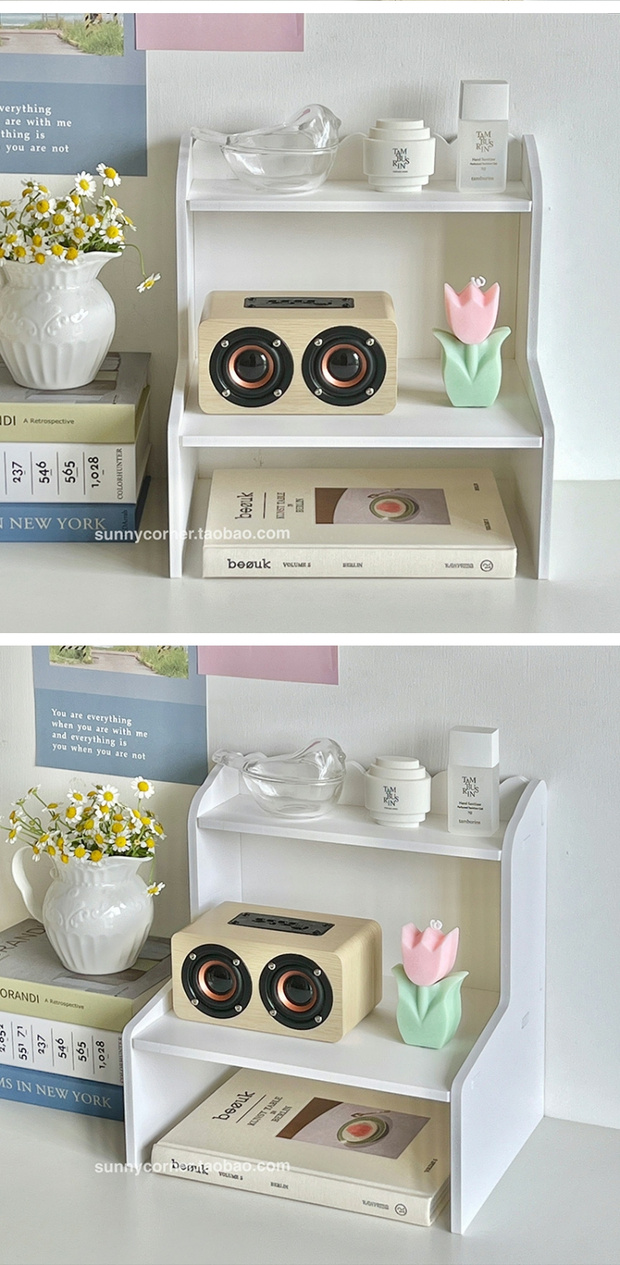 데스크탑 더블 레이어 목재 스토리지 랙 기숙사 침실 책상 컵 화장품 정리 및 스토리지 랙스토어 가기