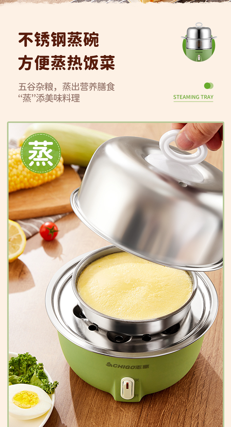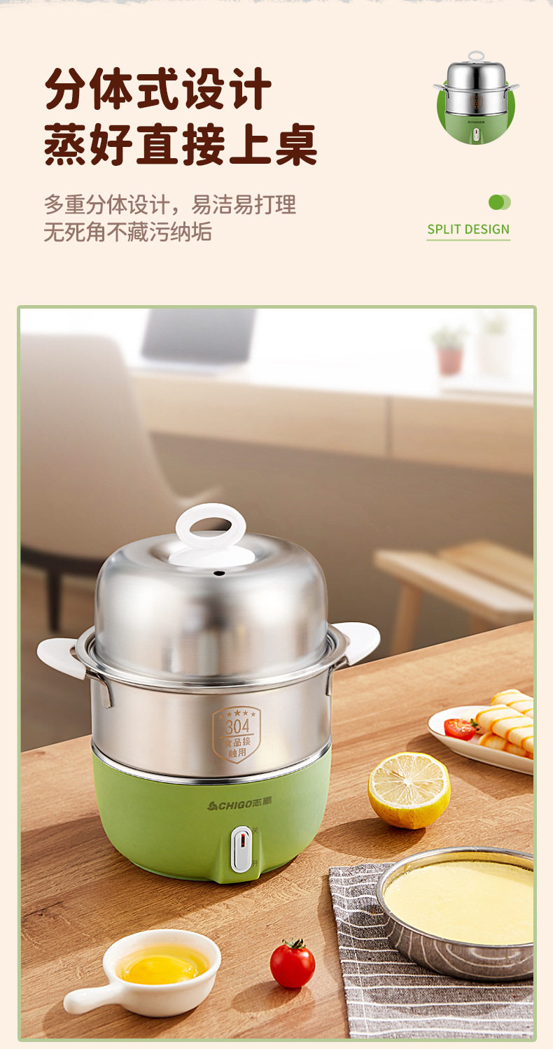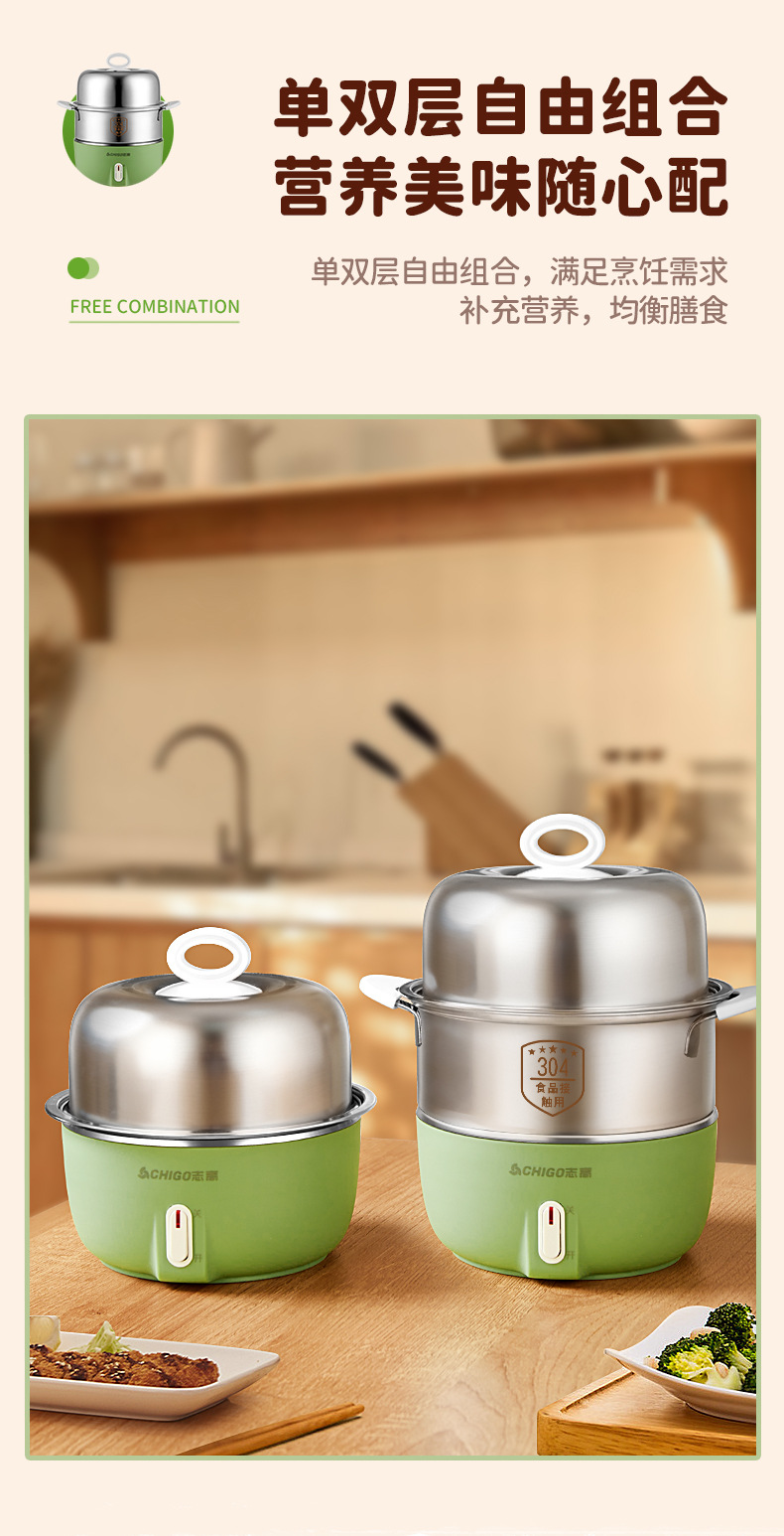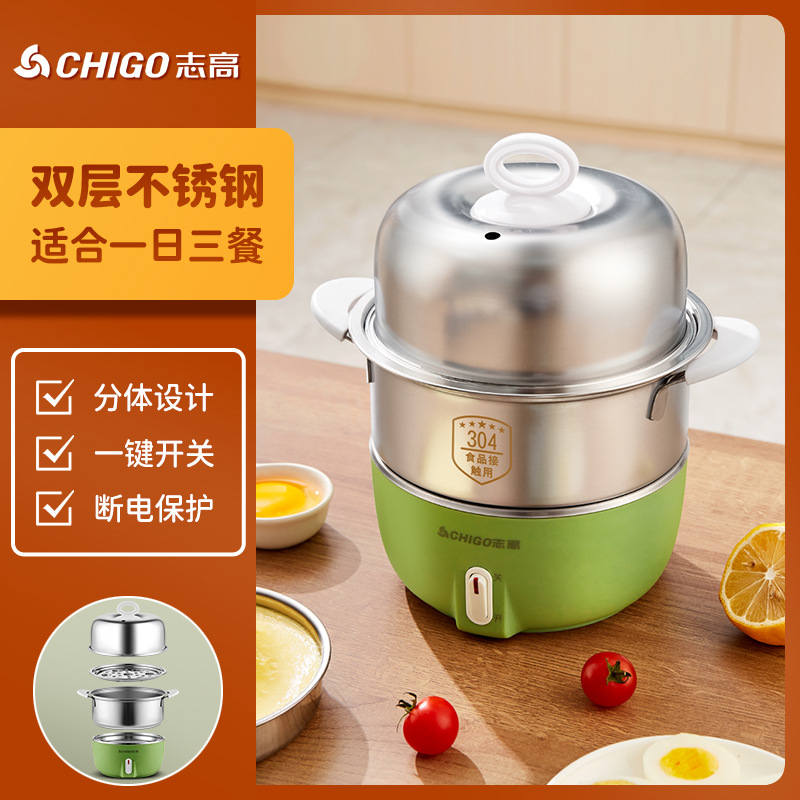 Chigo 계란 밥솥 스테인레스 스틸 가정용 계란 밥솥 소형 다기능 자동 전원 끄기 기숙사 아침 식사 도구 도매