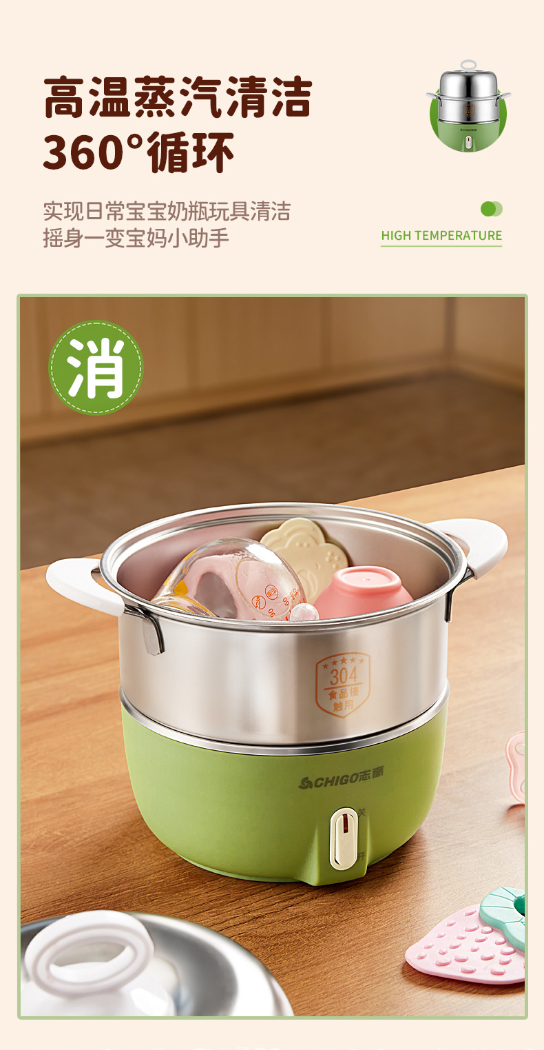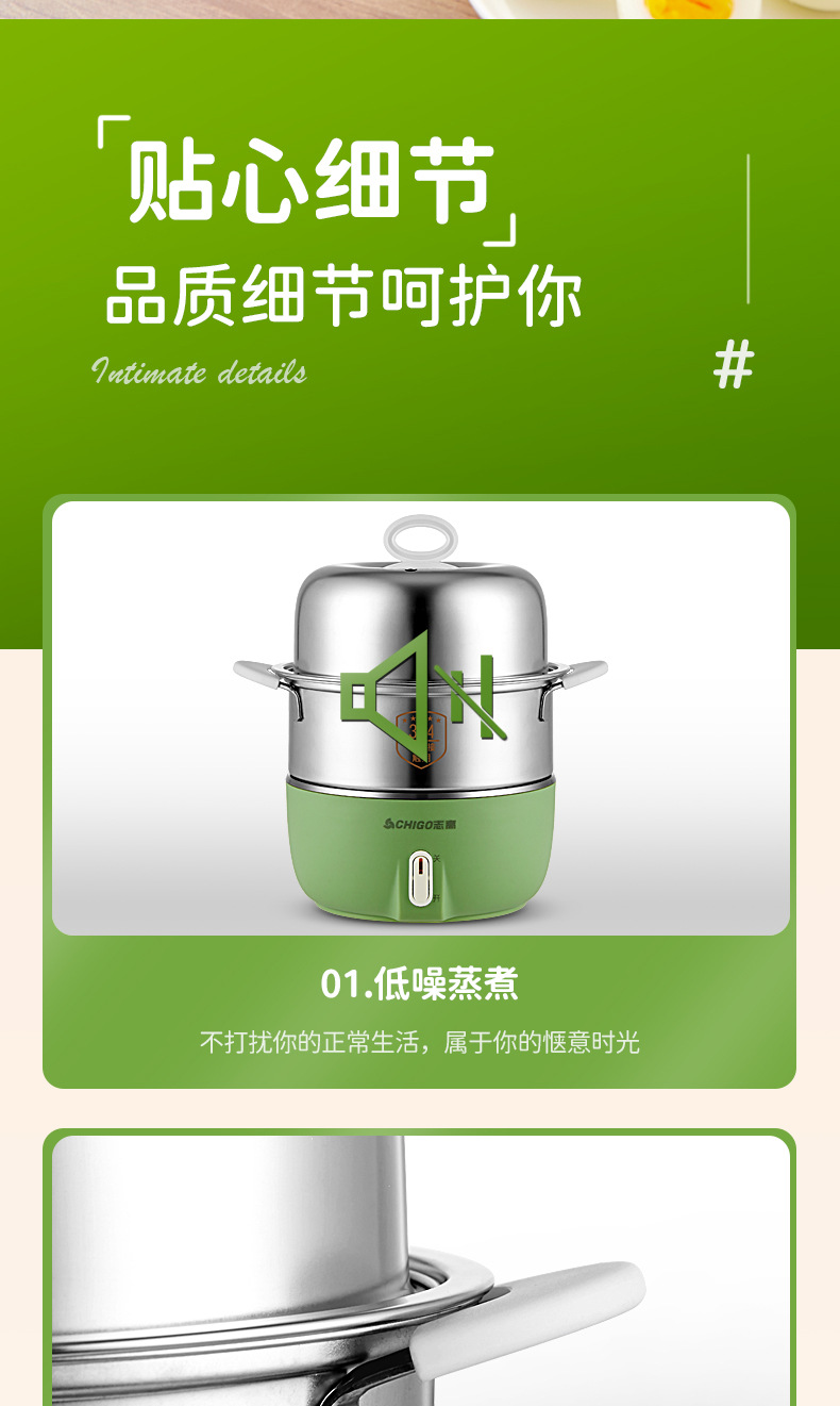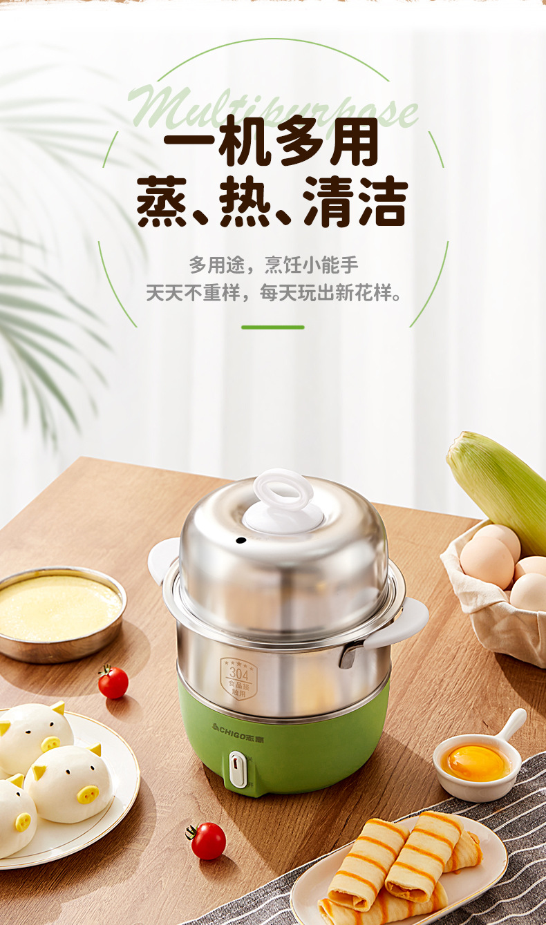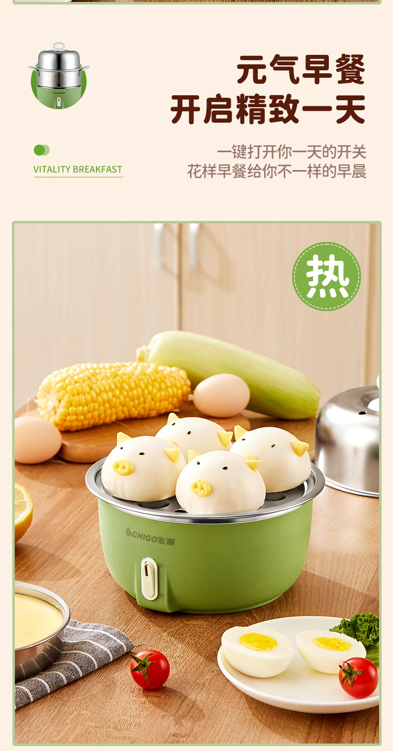 Chigo 계란 밥솥 스테인레스 스틸 가정용 계란 밥솥 소형 다기능 자동 전원 끄기 기숙사 아침 식사 도구 도매