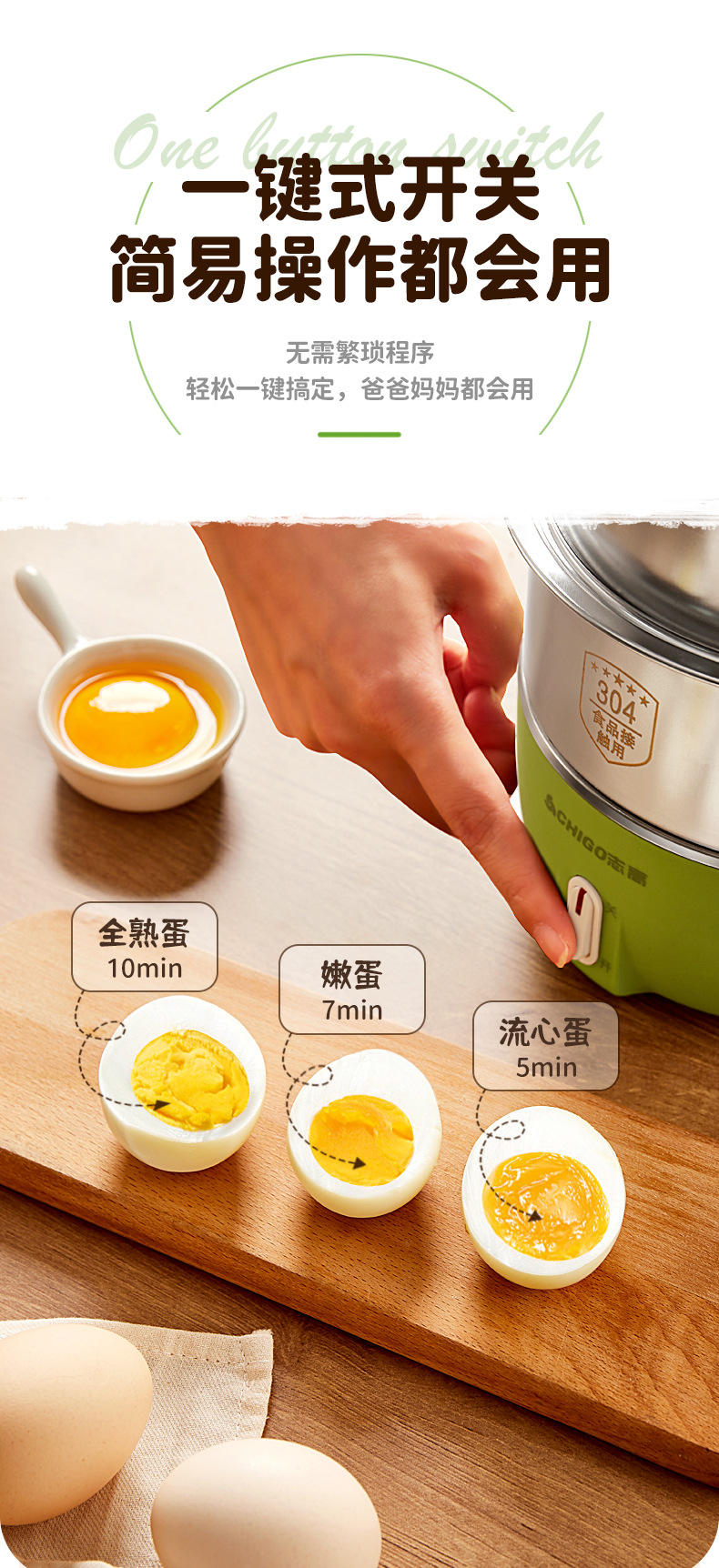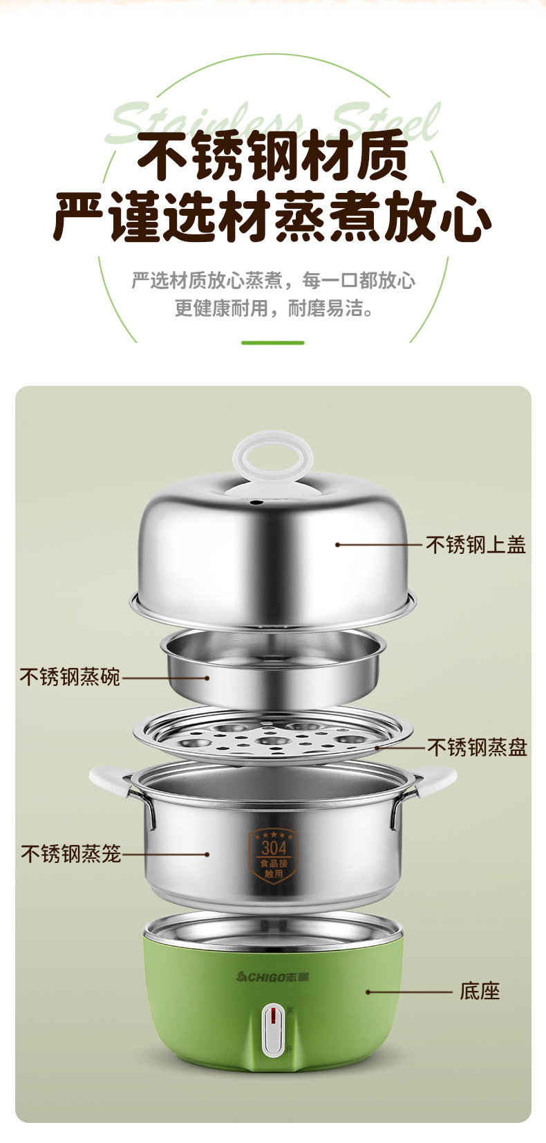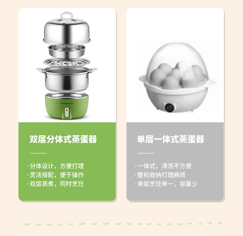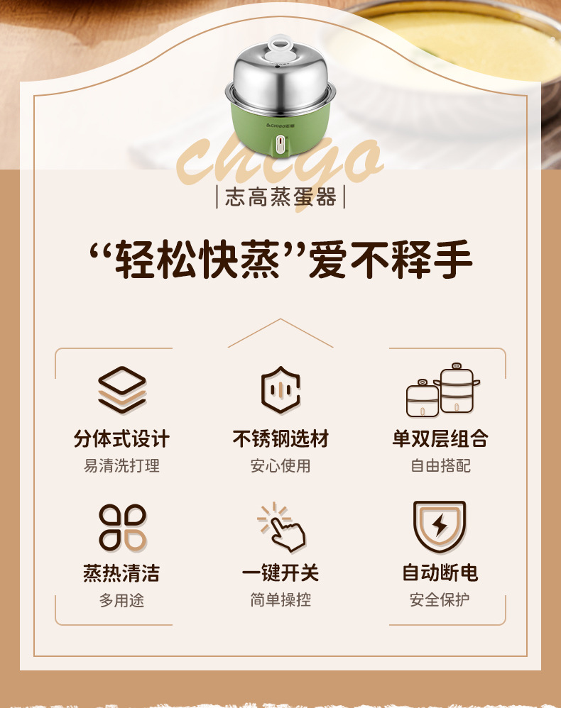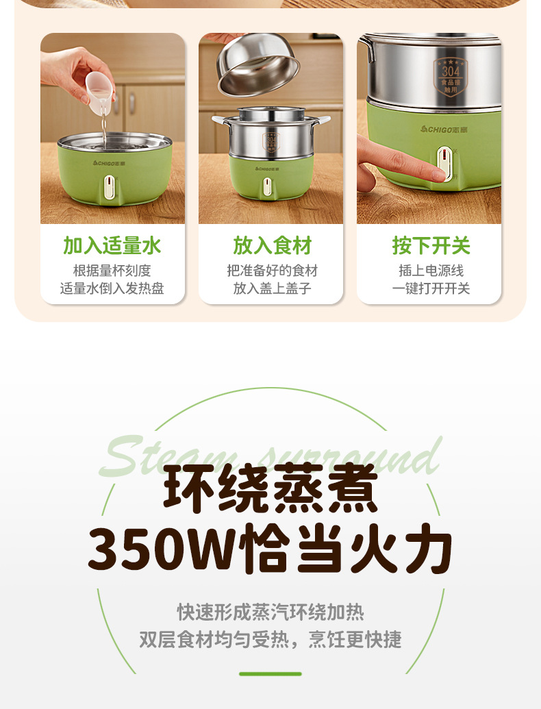 Chigo 계란 밥솥 스테인레스 스틸 가정용 계란 밥솥 소형 다기능 자동 전원 끄기 기숙사 아침 식사 도구 도매