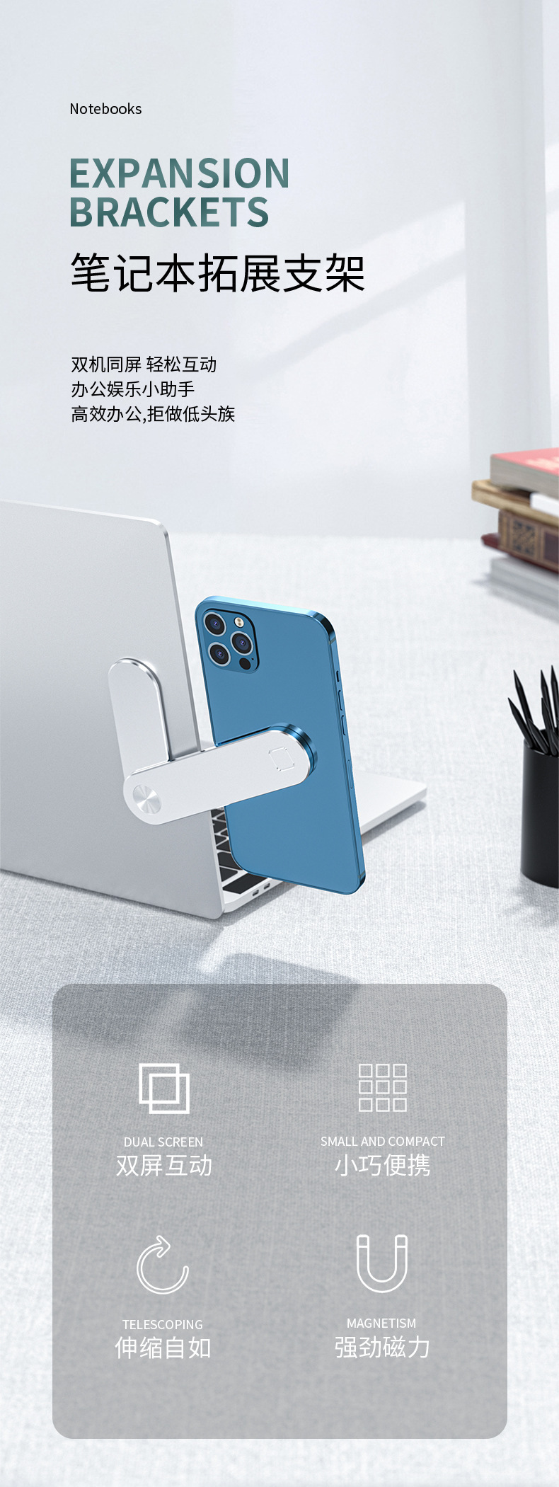 알루미늄 합금 휴대 전화 컴퓨터 듀얼 스크린 확장 브래킷 노트북 측면 스크린 자기 휴대용 금속 확장 휴대 전화 브래킷스토어 가기